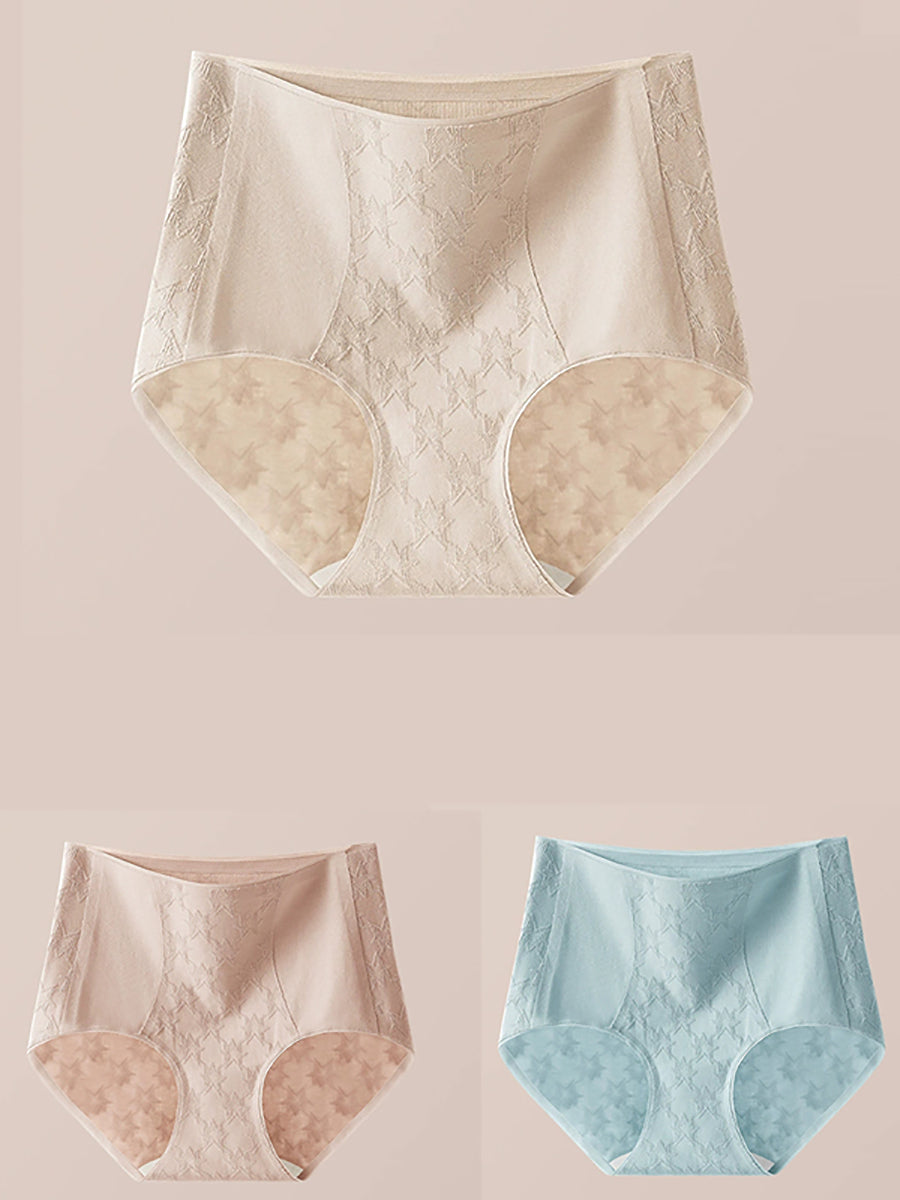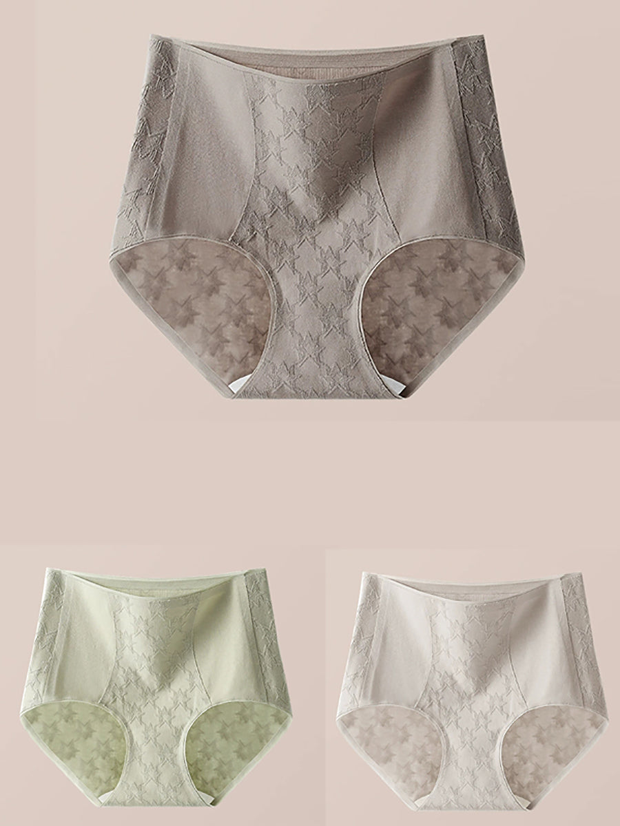 3 piezas de ropa interior de cintura alta de jacquard artístico para mujer