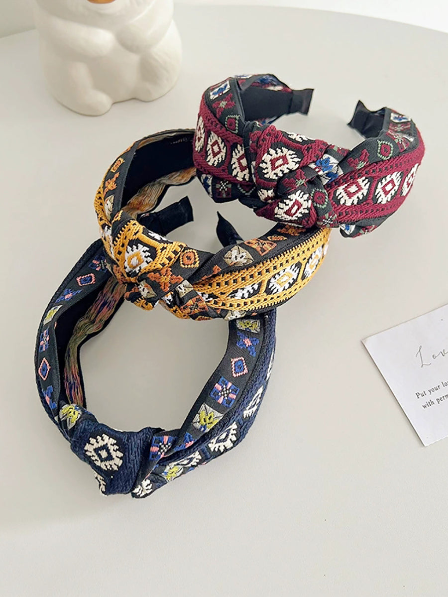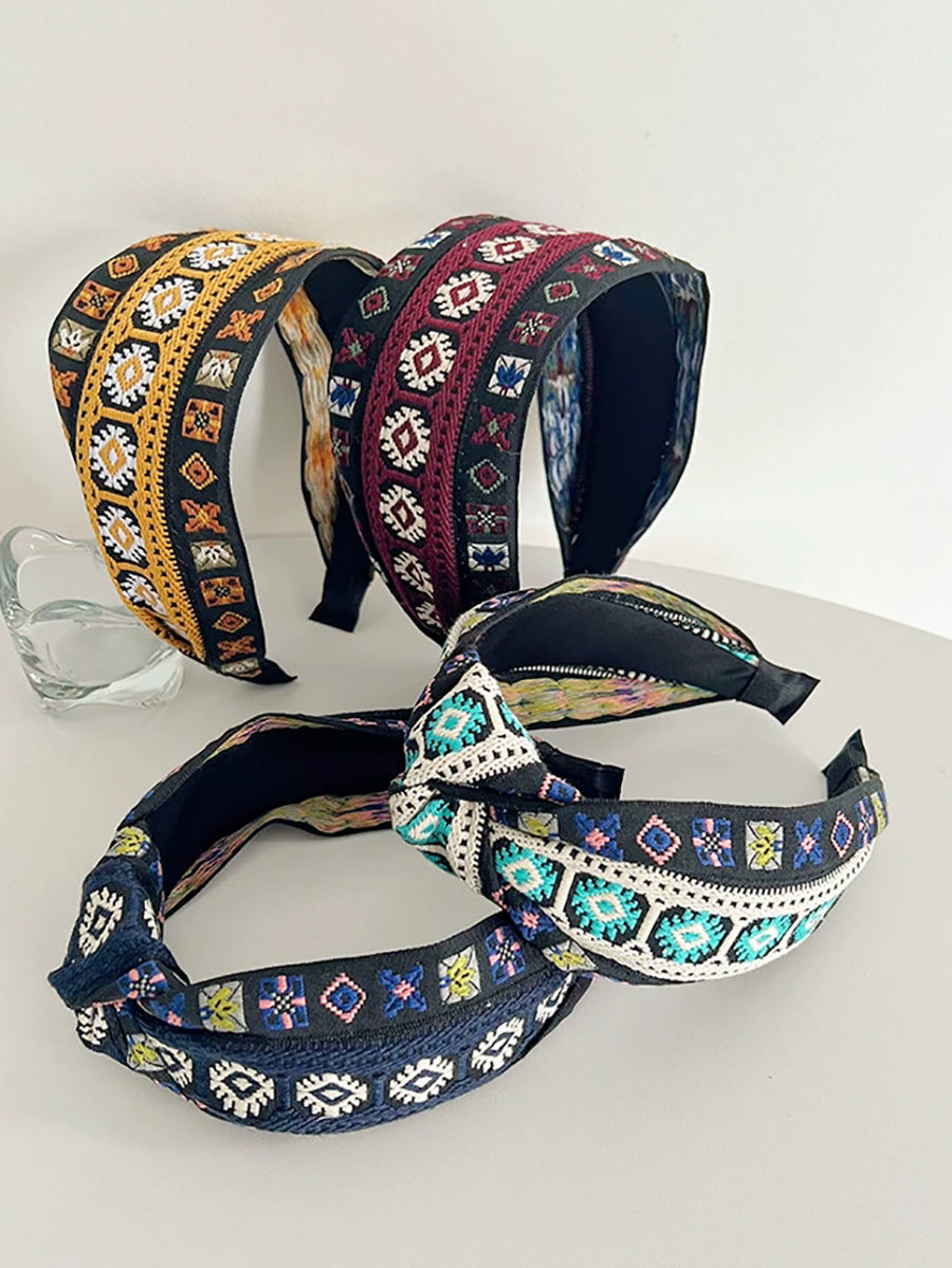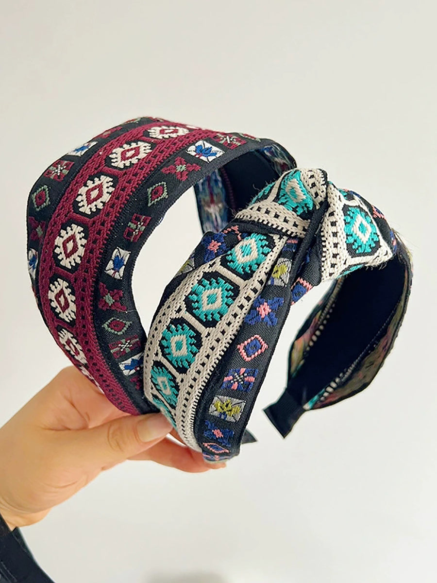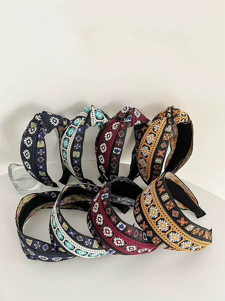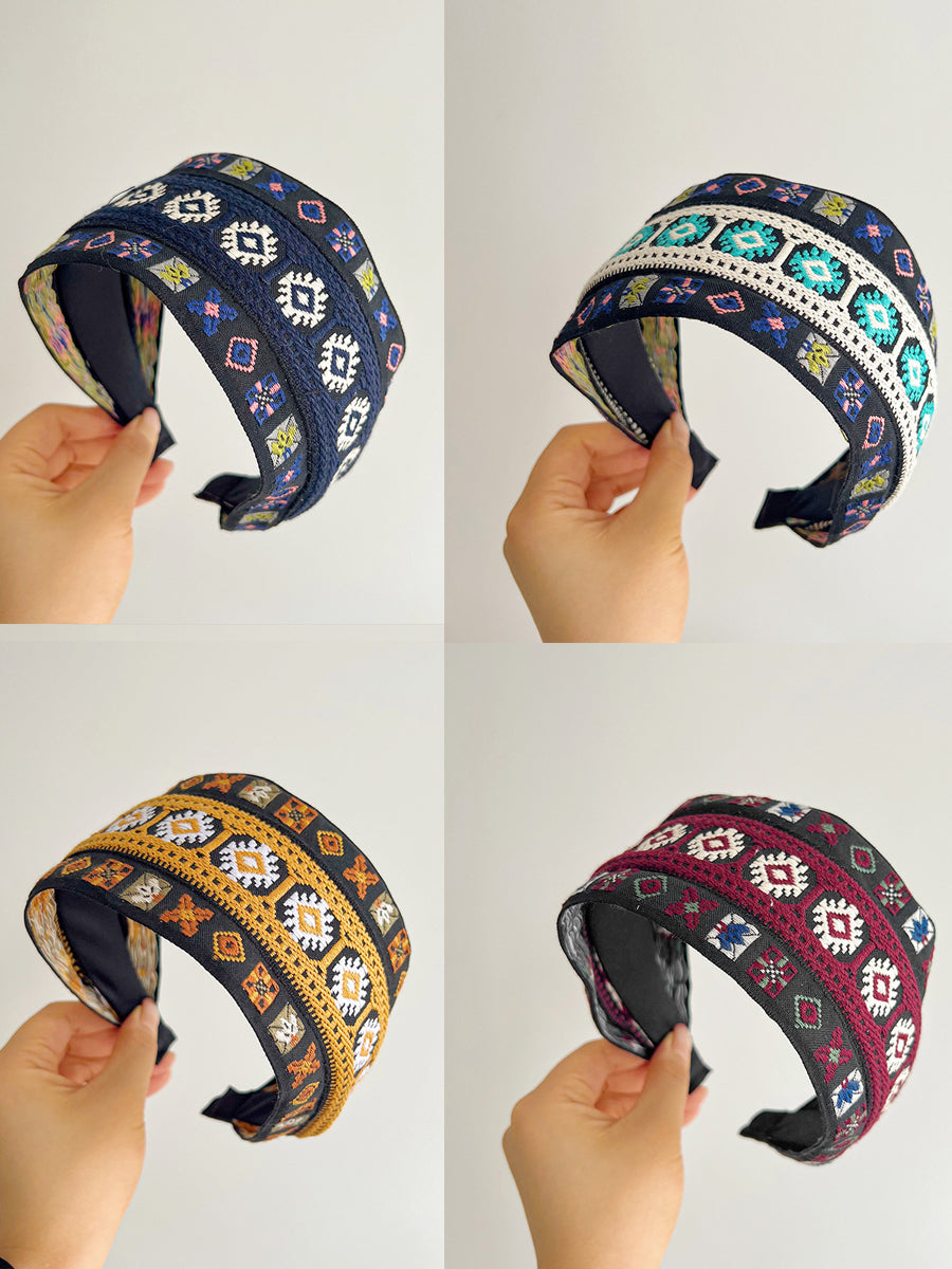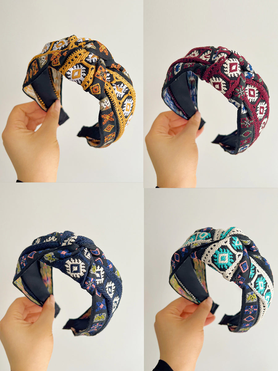 4 piezas de diadema ancha tejida con flores artísticas de invierno