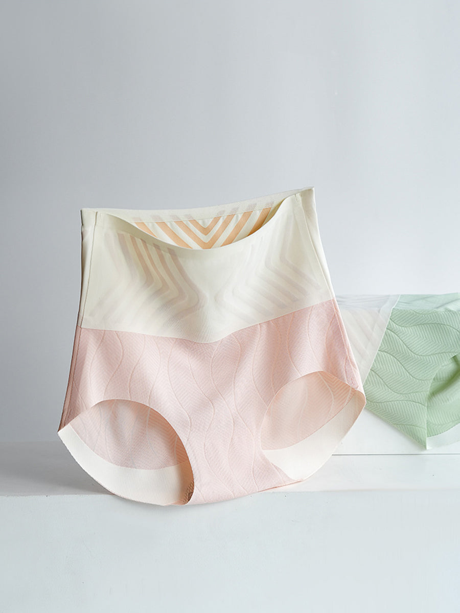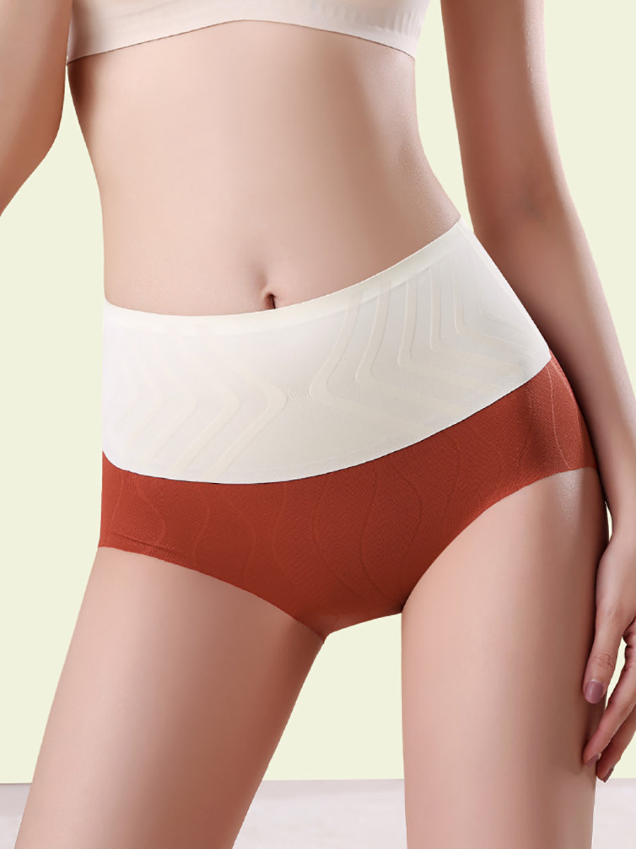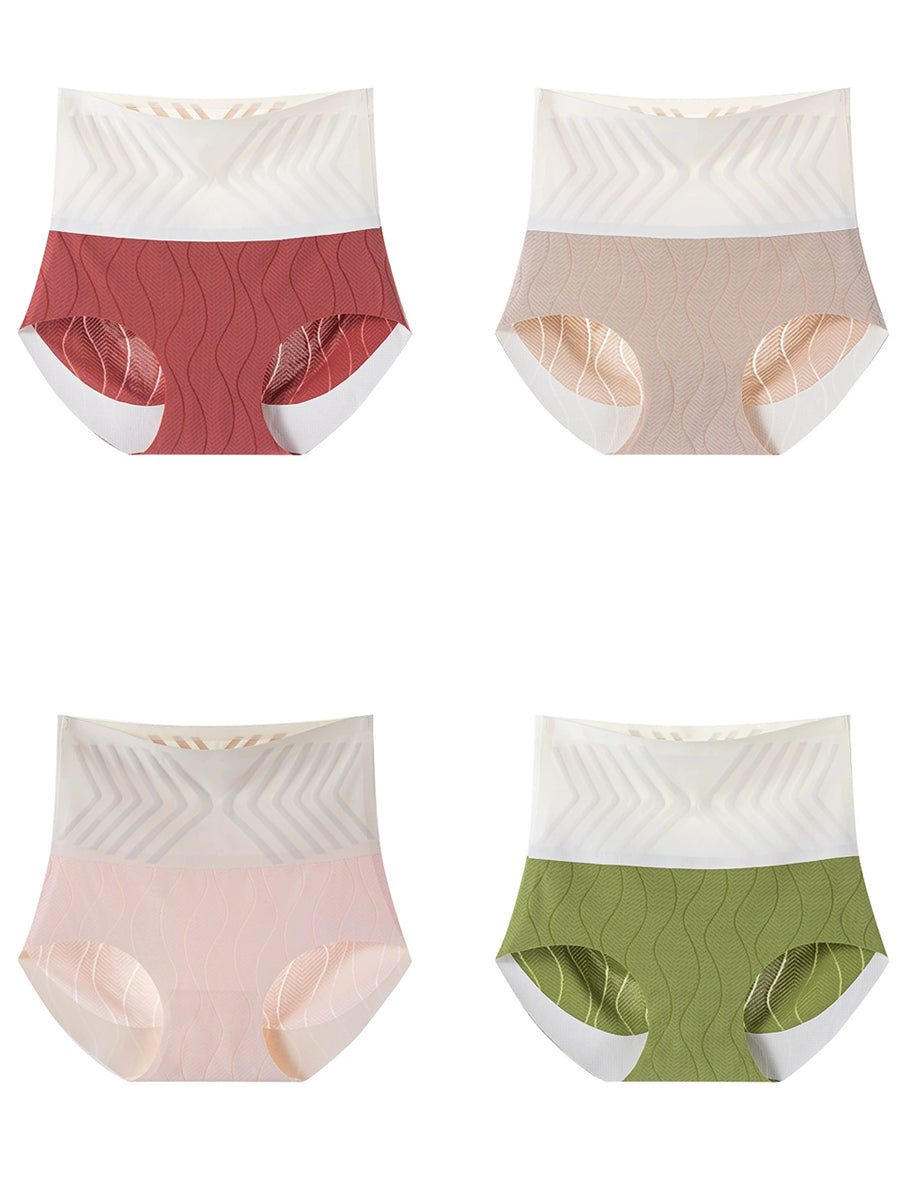 4 piezas de ropa interior de cintura alta con bloques de color artísticos para mujer