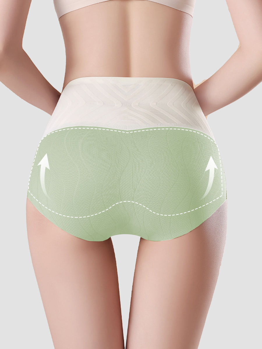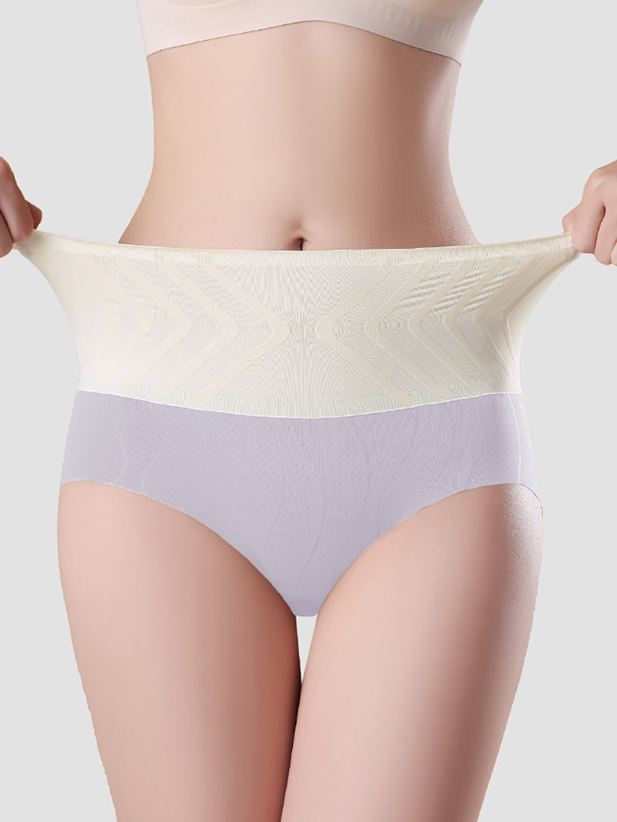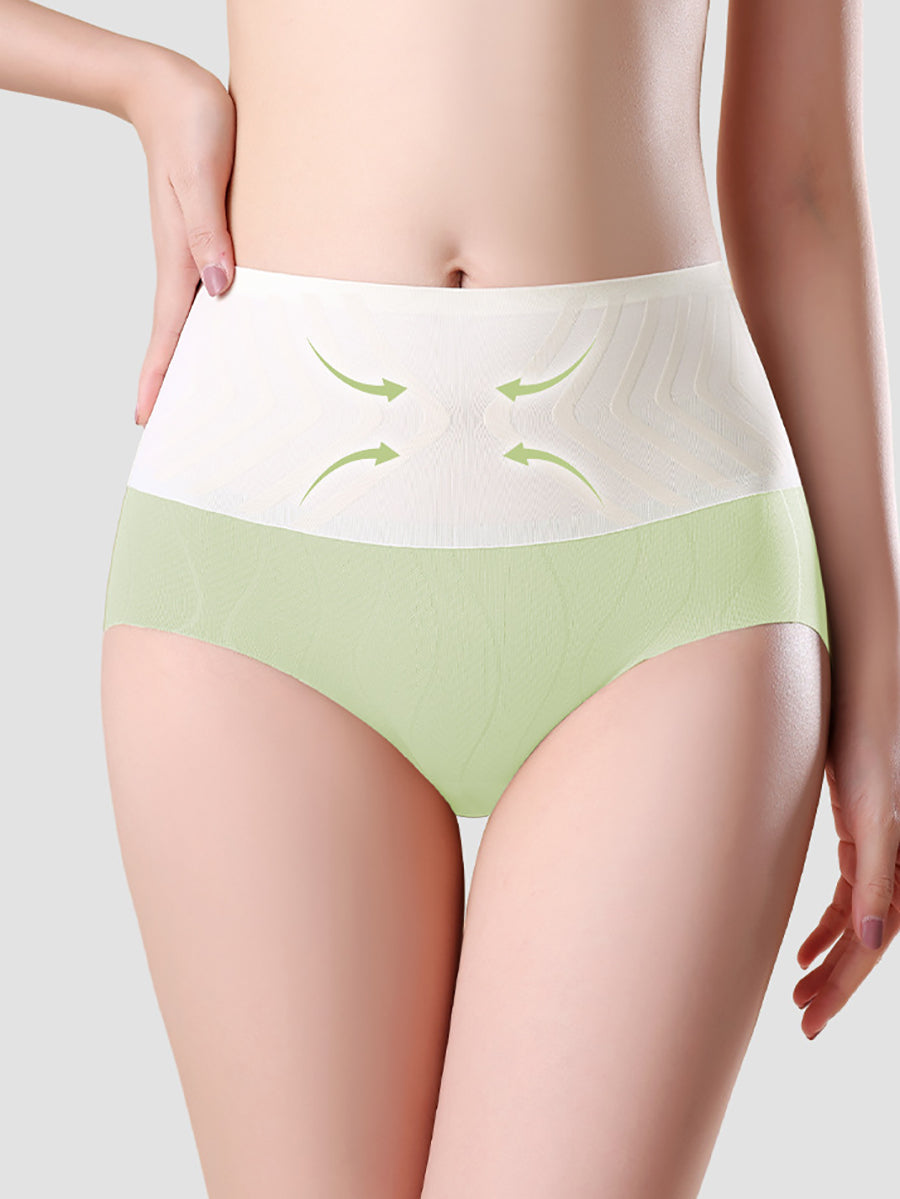 4 piezas de ropa interior de cintura alta con bloques de color artísticos para mujer