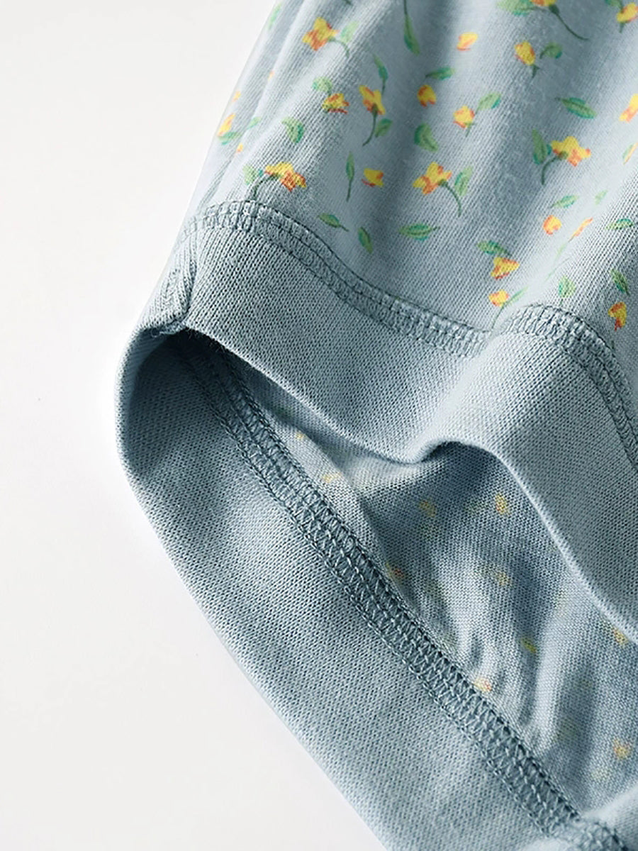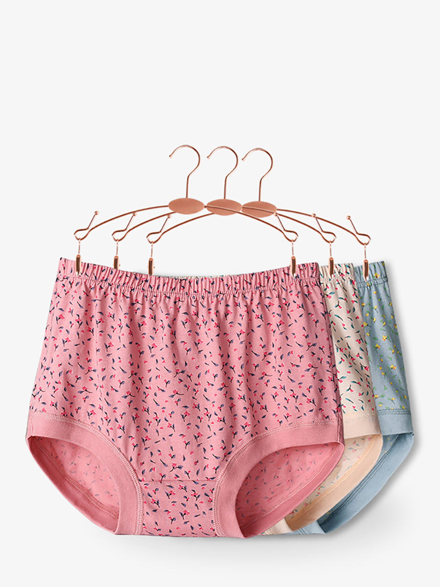 4 piezas de ropa interior de cintura alta con estampado floral artístico para mujer