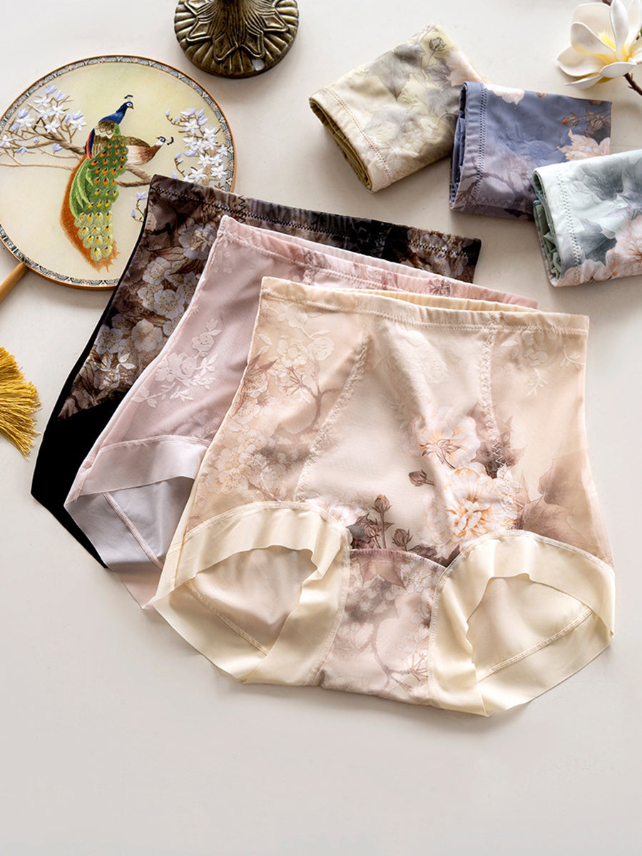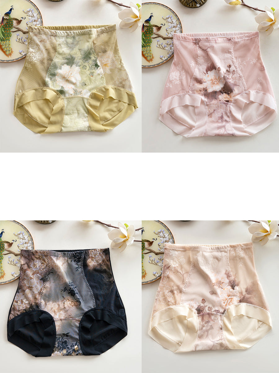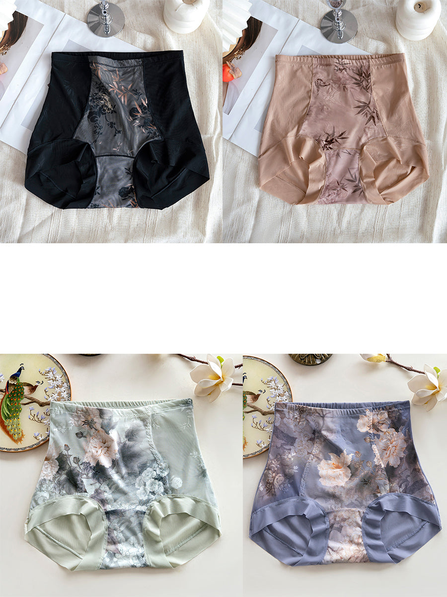 Conjunto de 4 piezas de ropa interior femenina con estampado floral y cintura alta.