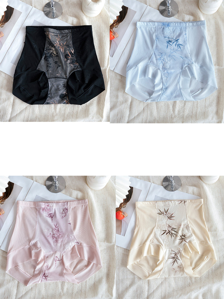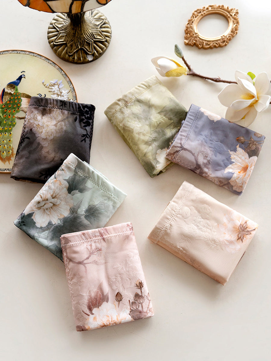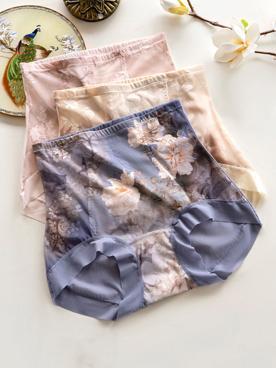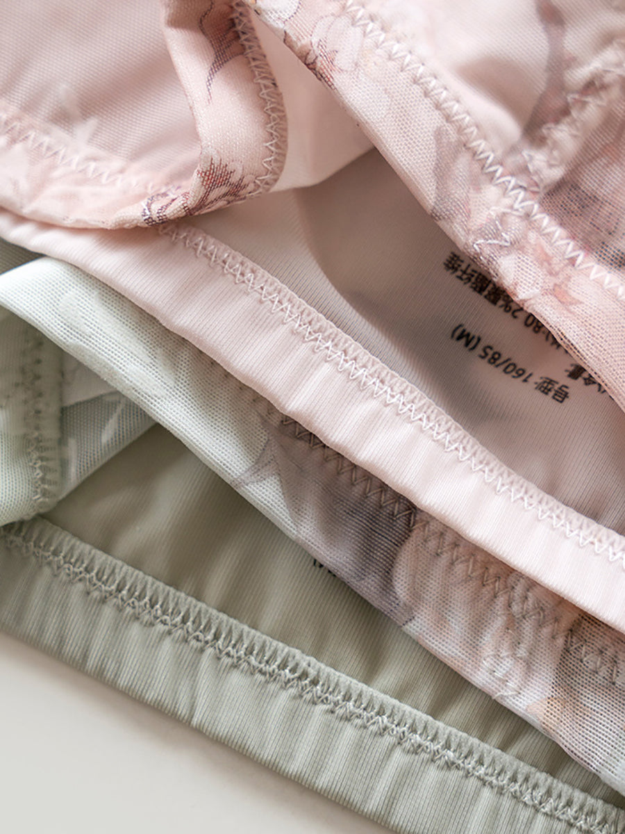 Conjunto de 4 piezas de ropa interior femenina con estampado floral y cintura alta.