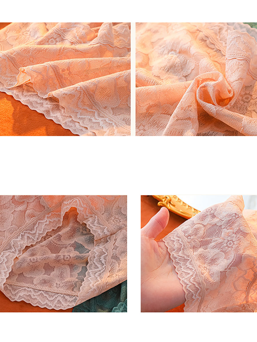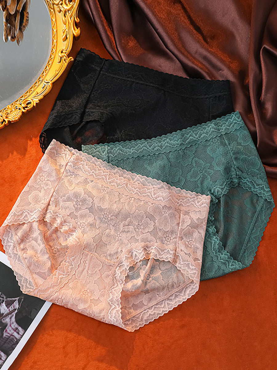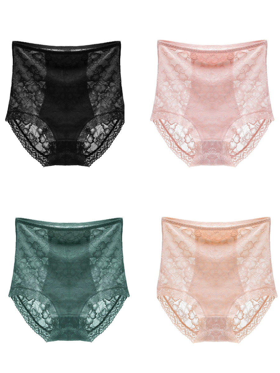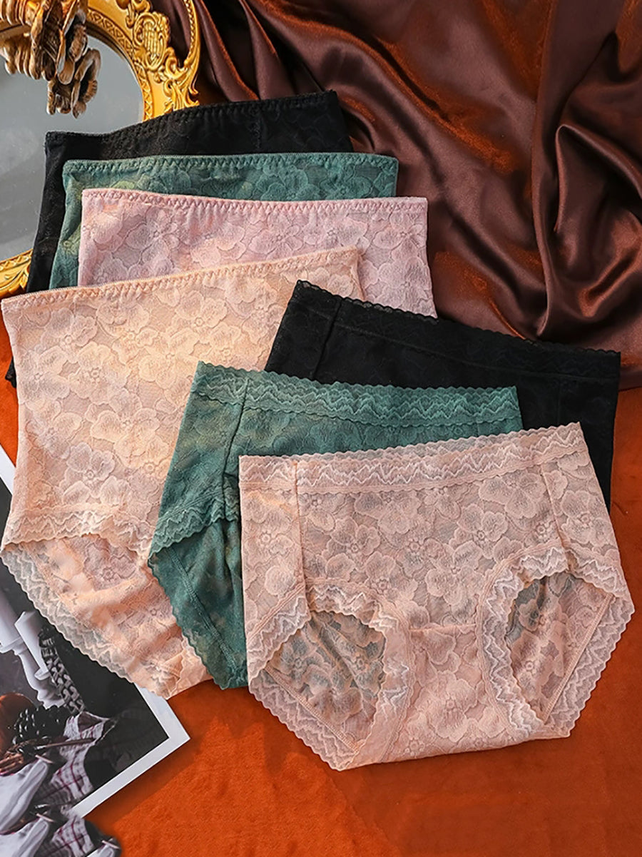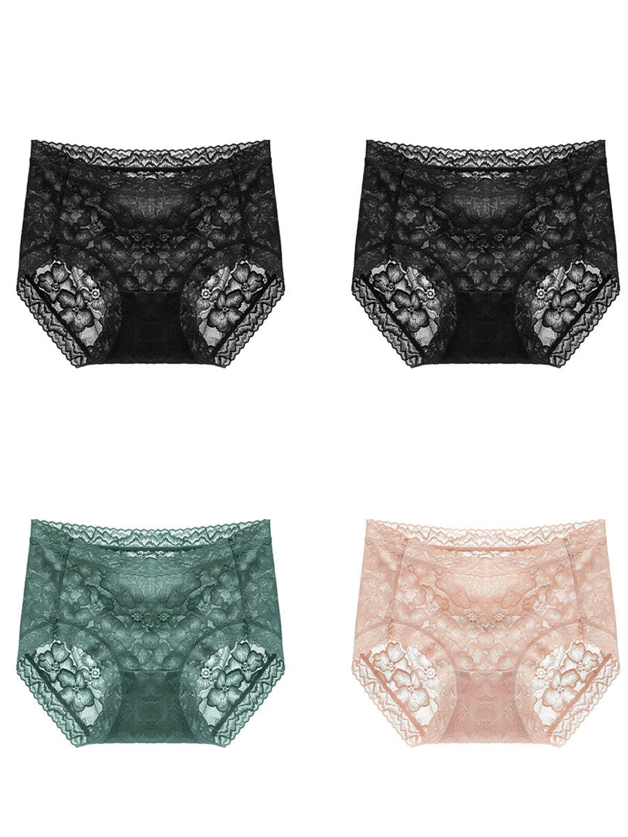 4 piezas de ropa interior de cintura alta con encaje floral artístico para mujer