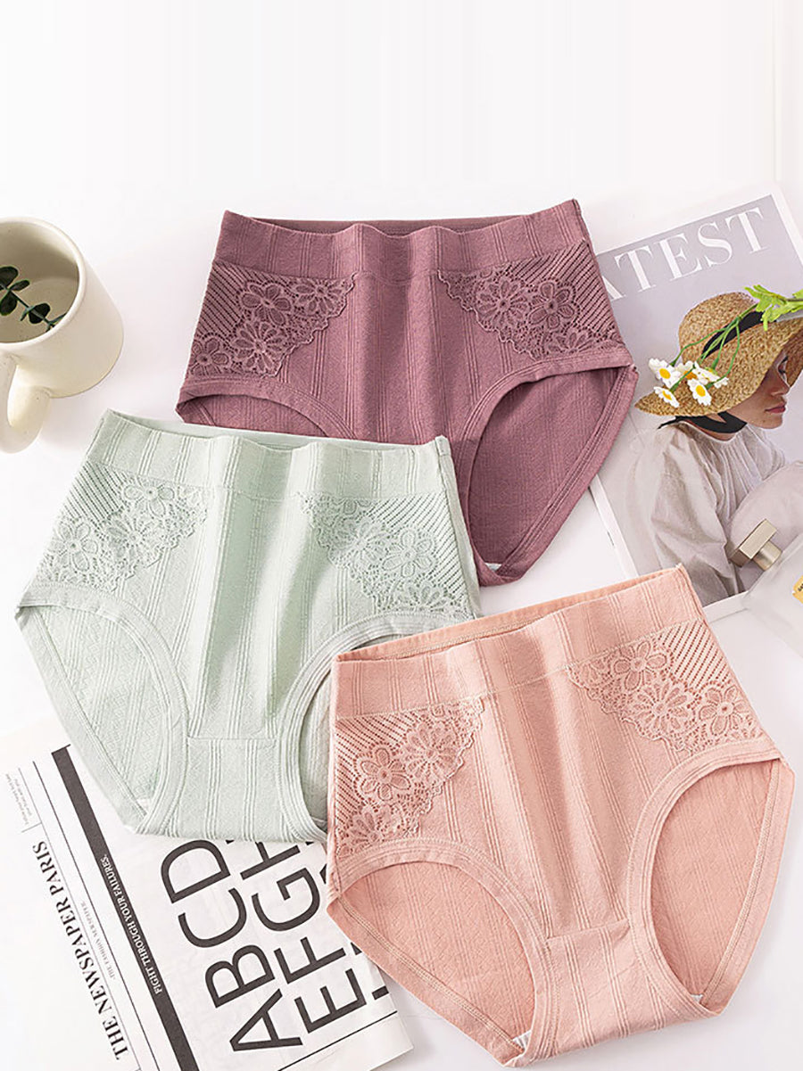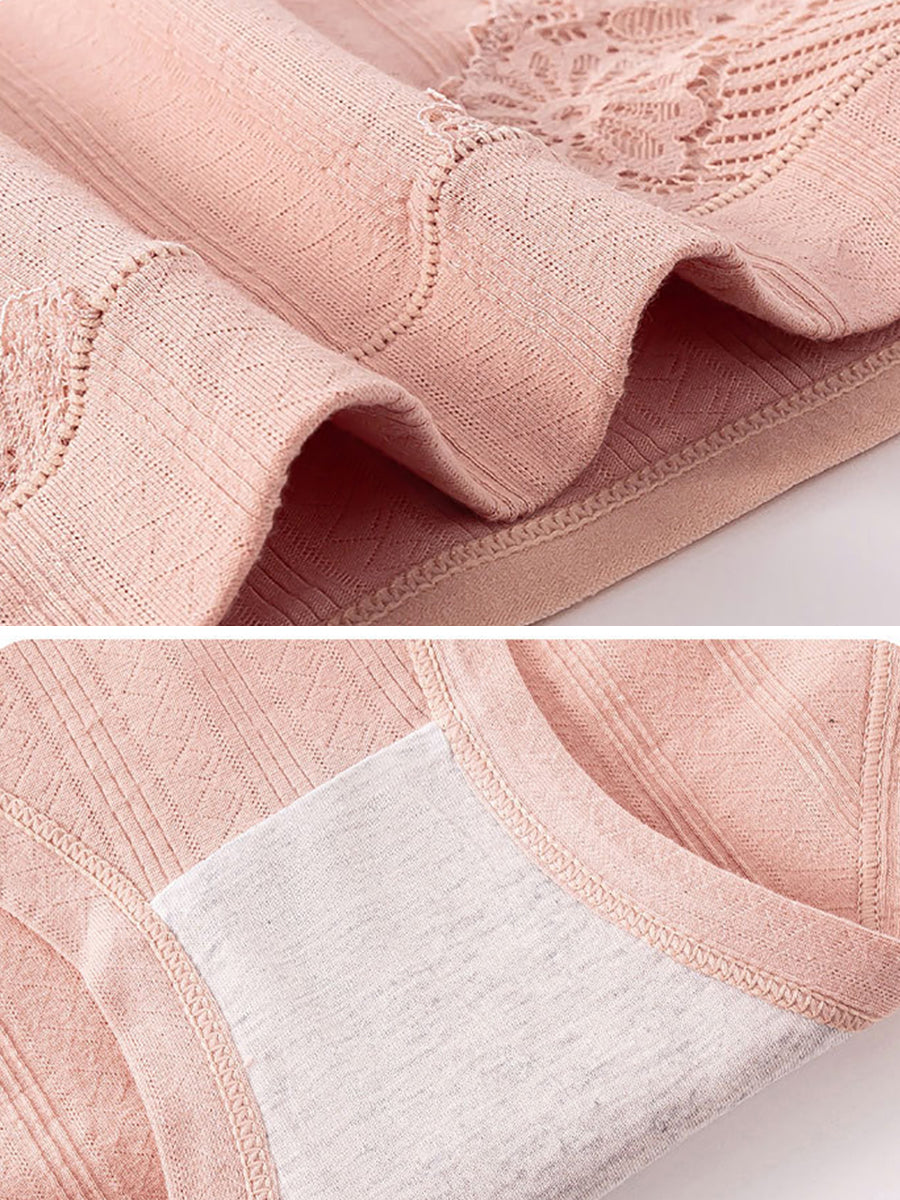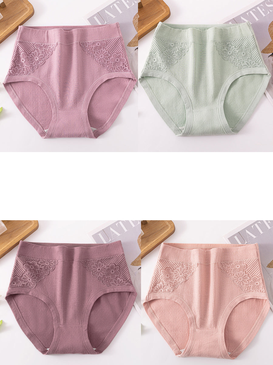 Conjunto de 4 piezas de lencería femenina con encaje floral y cintura alta.