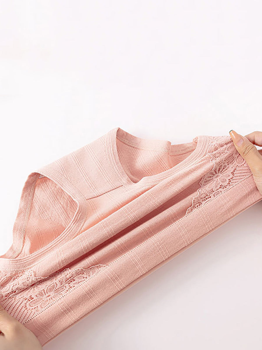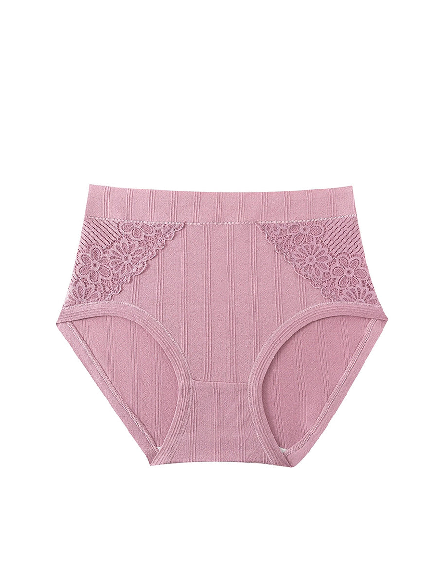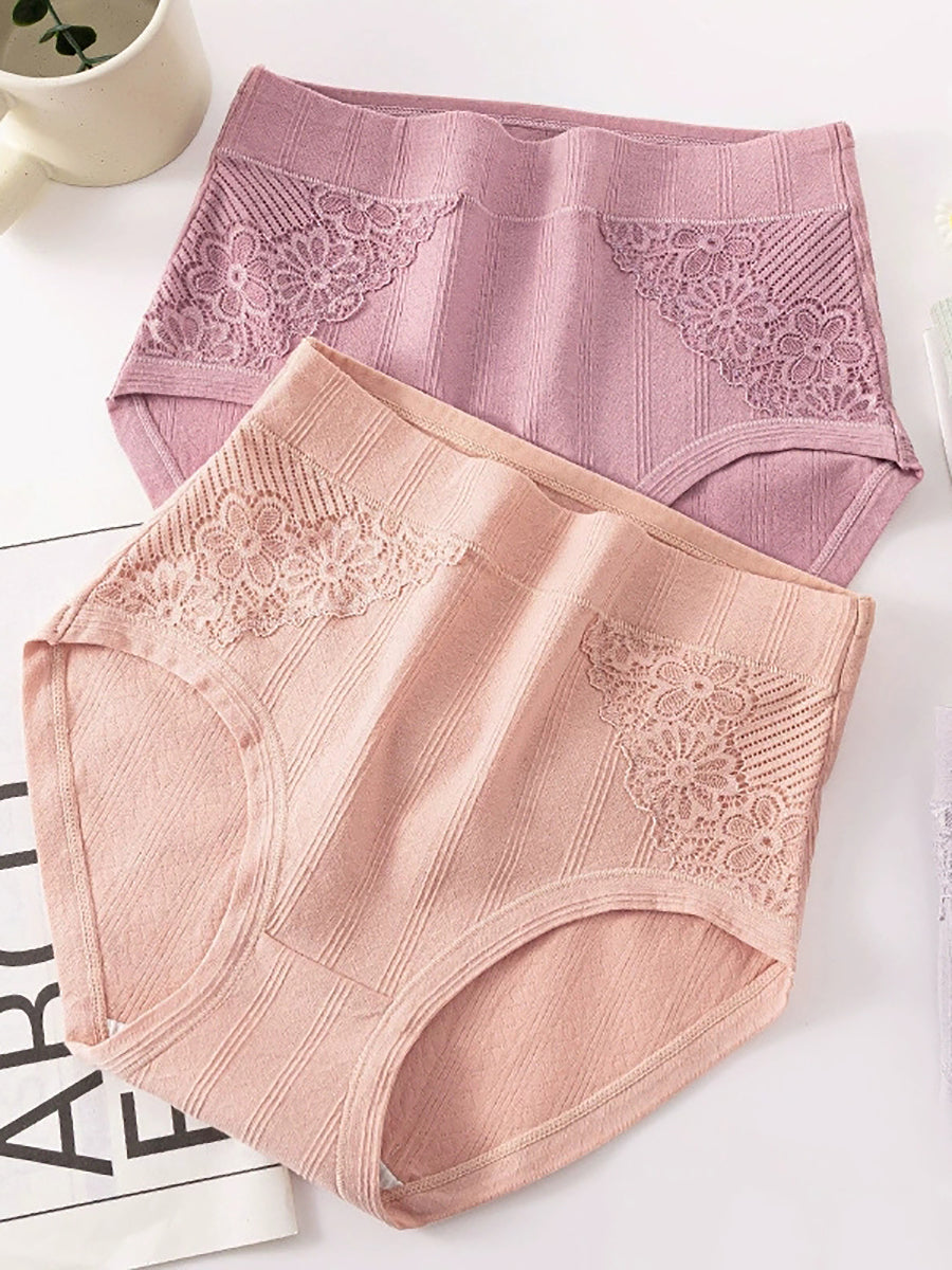 Conjunto de 4 piezas de lencería femenina con encaje floral y cintura alta.