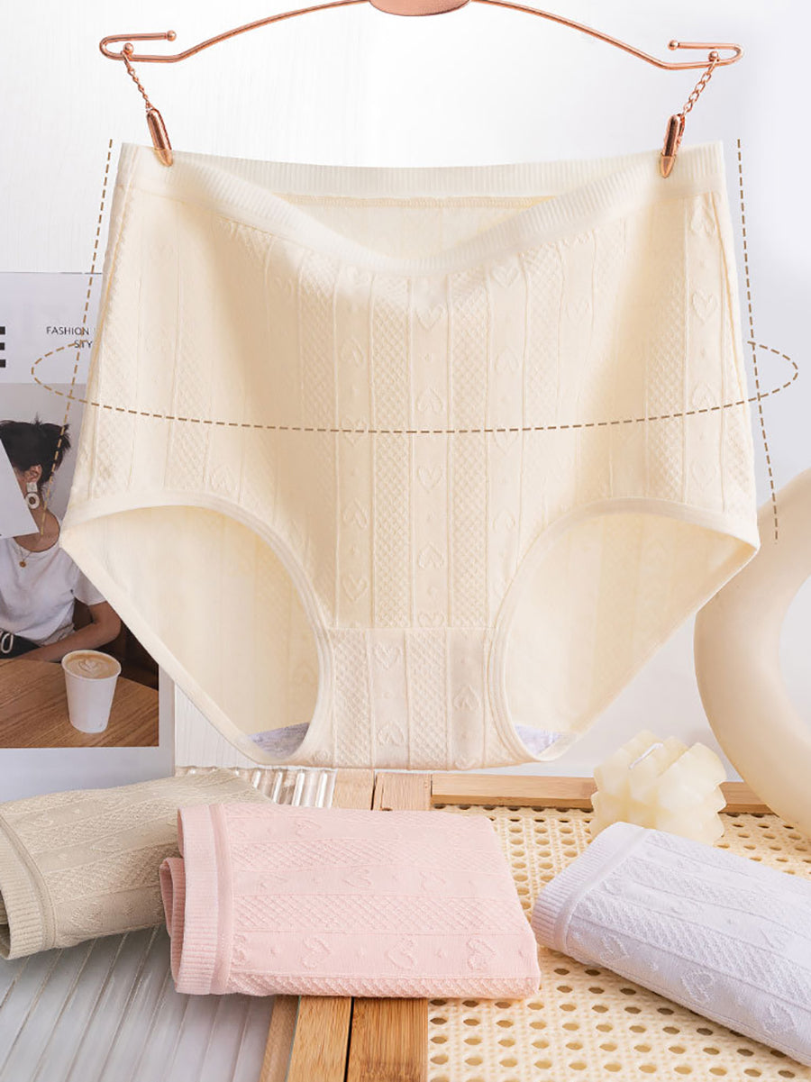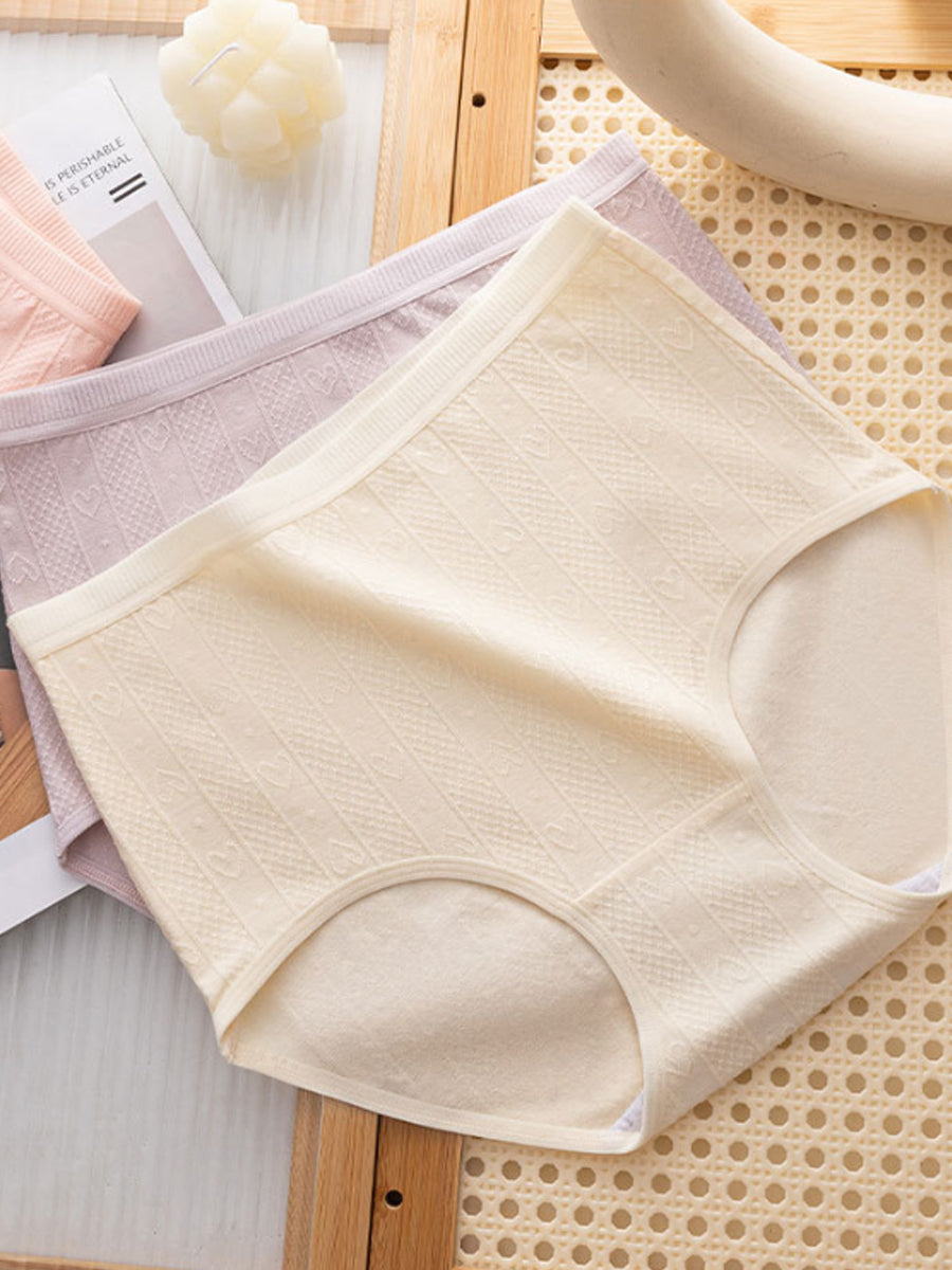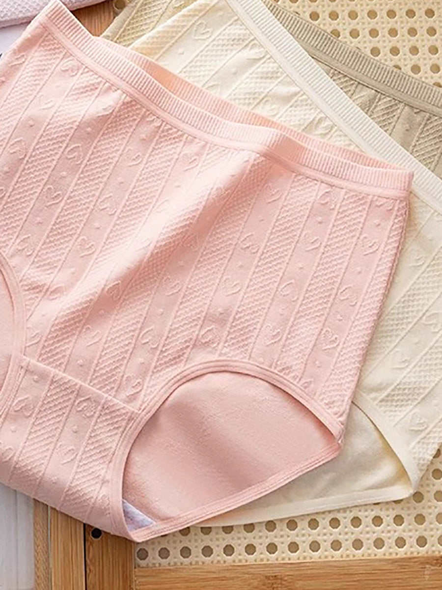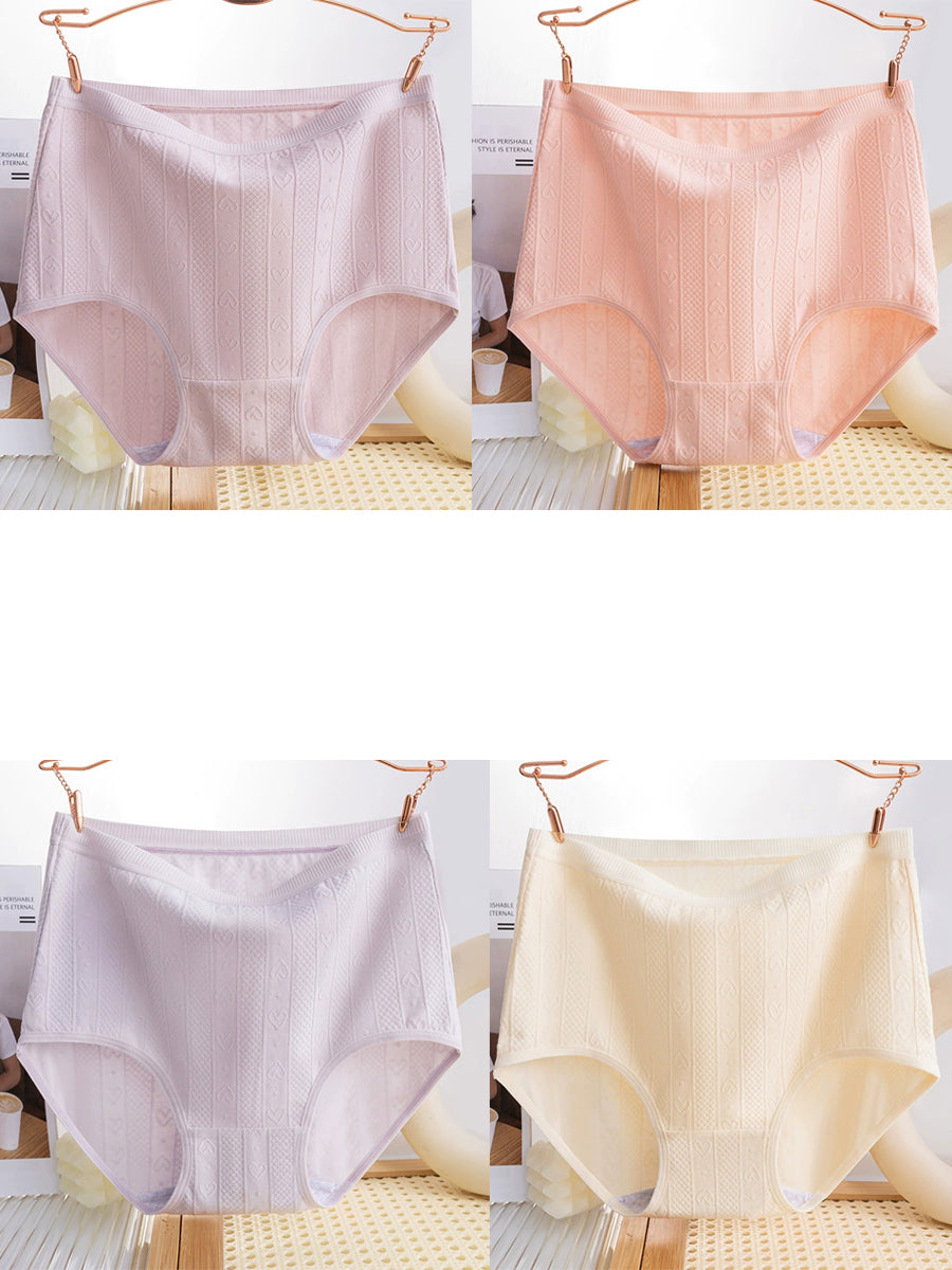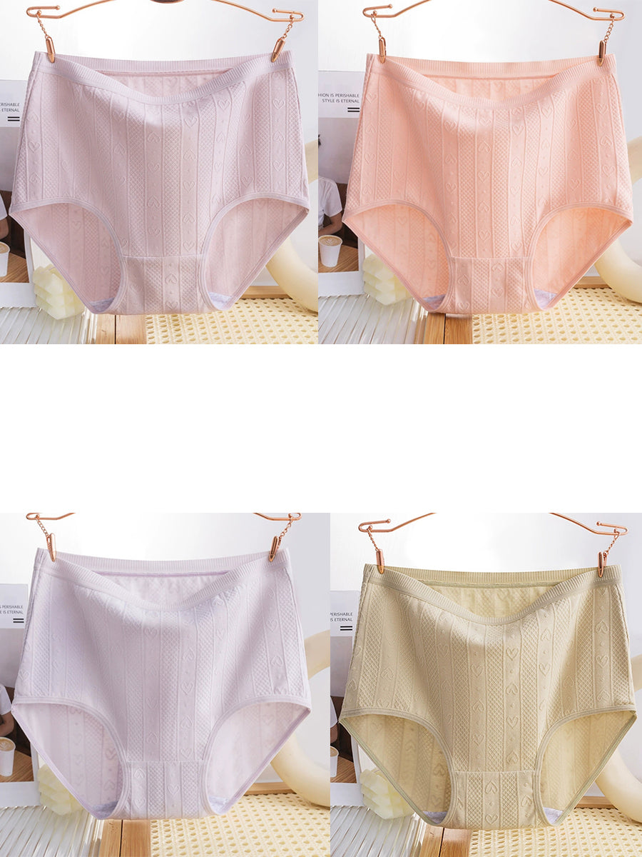 4 piezas de ropa interior de cintura alta con diseño de corazón artístico de jacquard para mujer