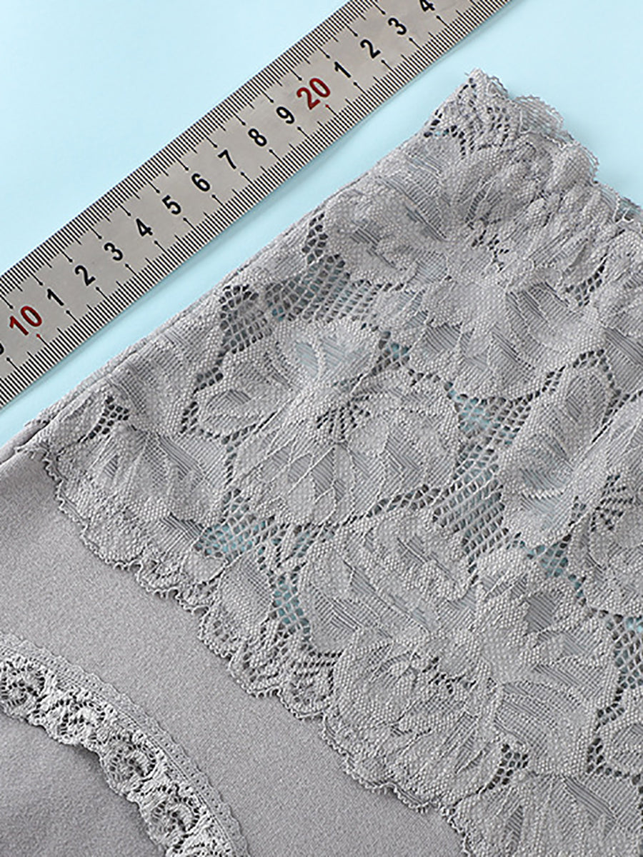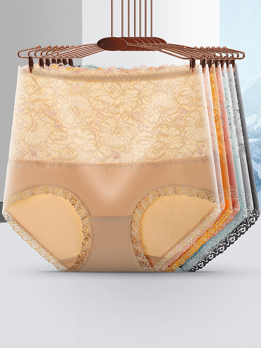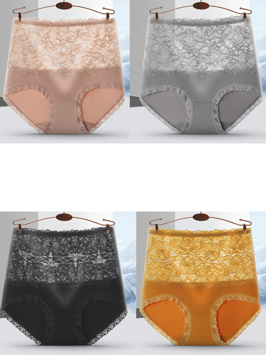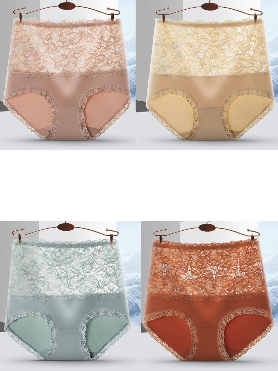 4 piezas de ropa interior de cintura alta con encaje artístico para mujer