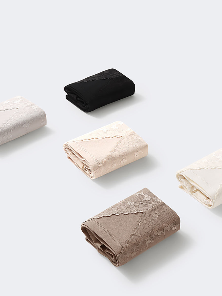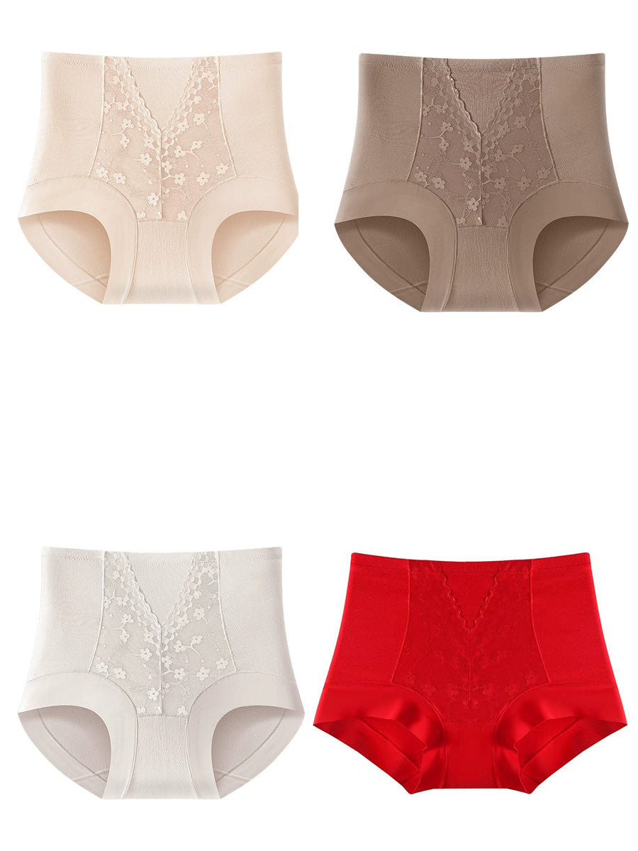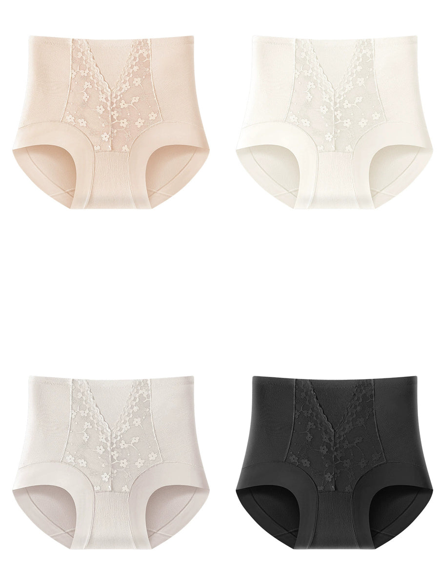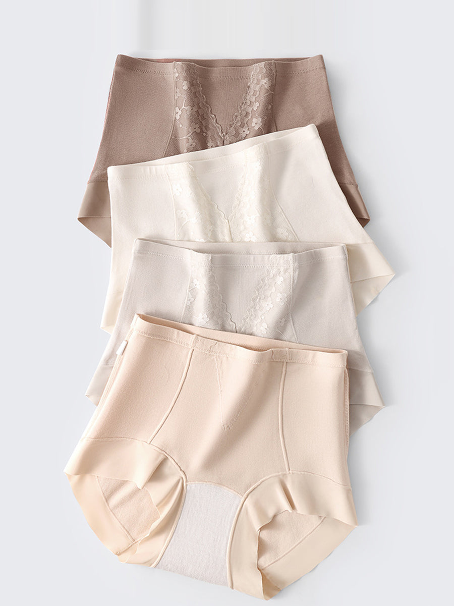 4 piezas de ropa interior de cintura alta con encaje artístico para mujer