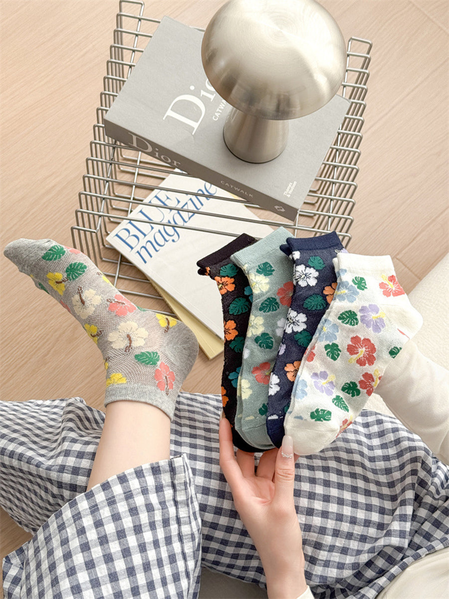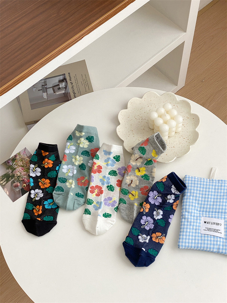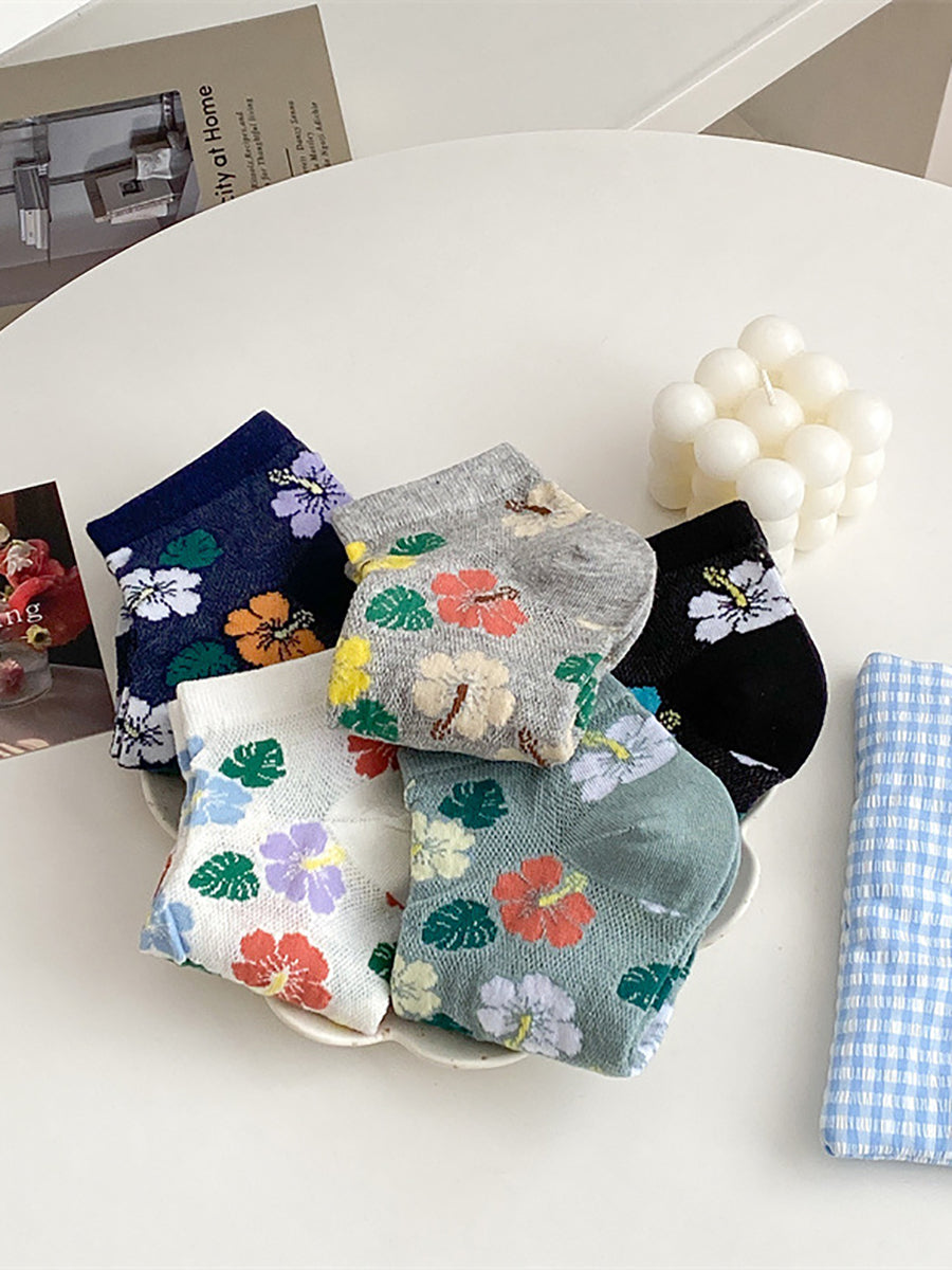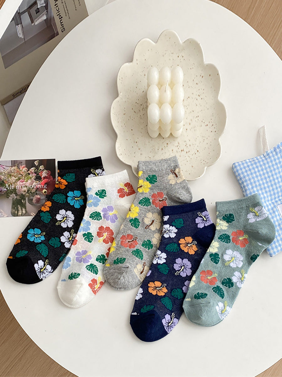 5 pares de calcetines de algodón con flores artísticas para mujer