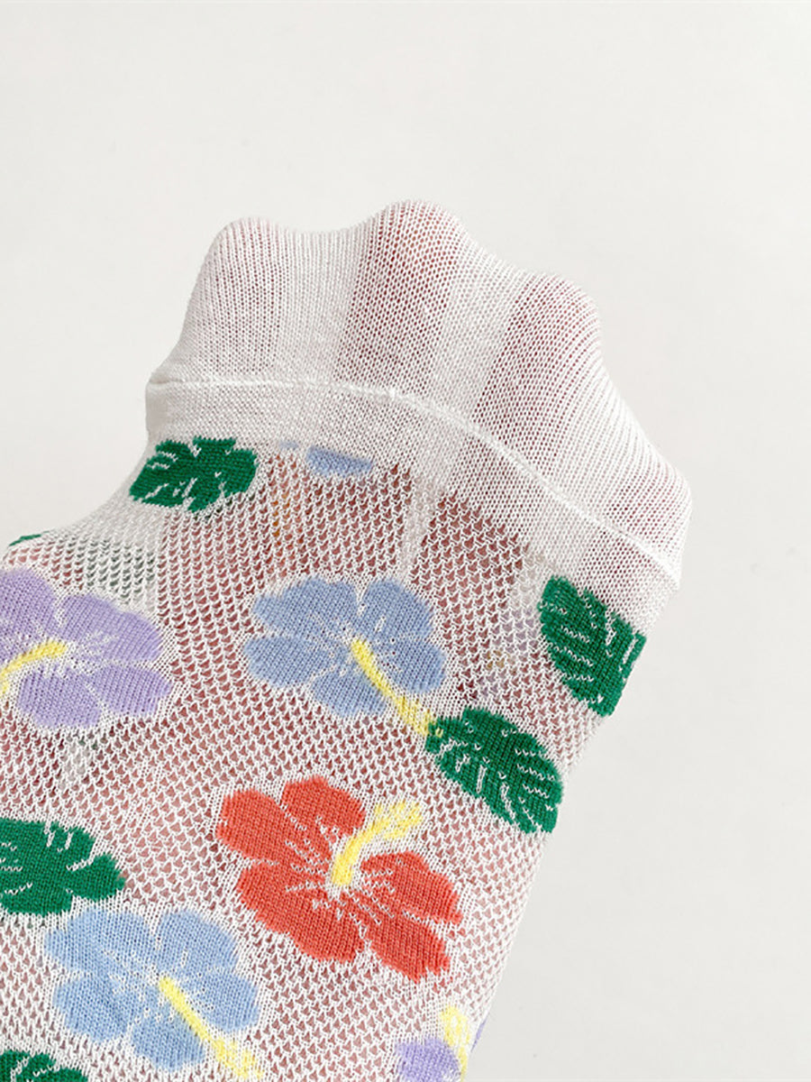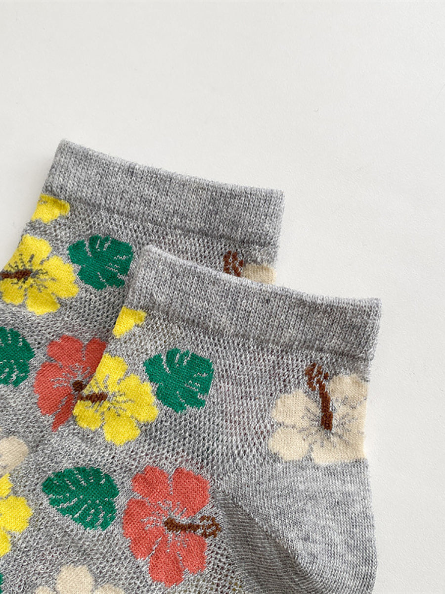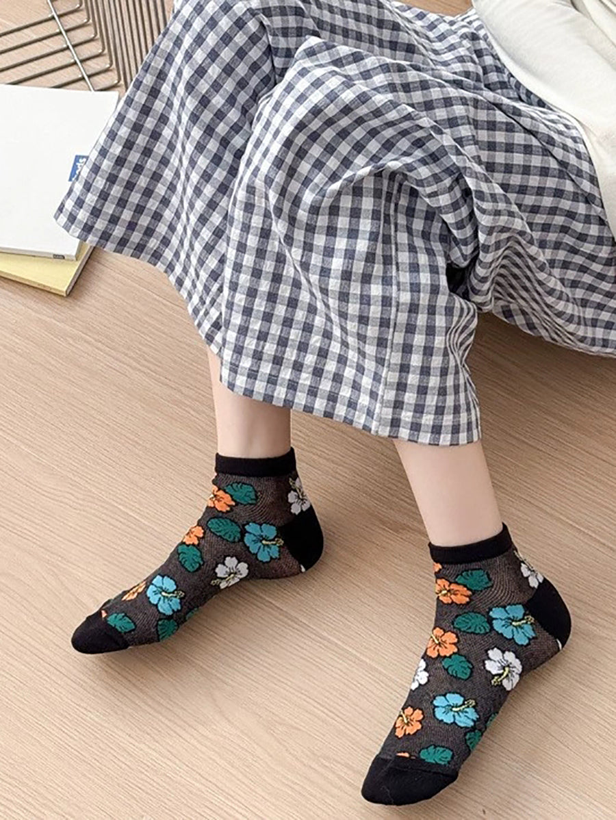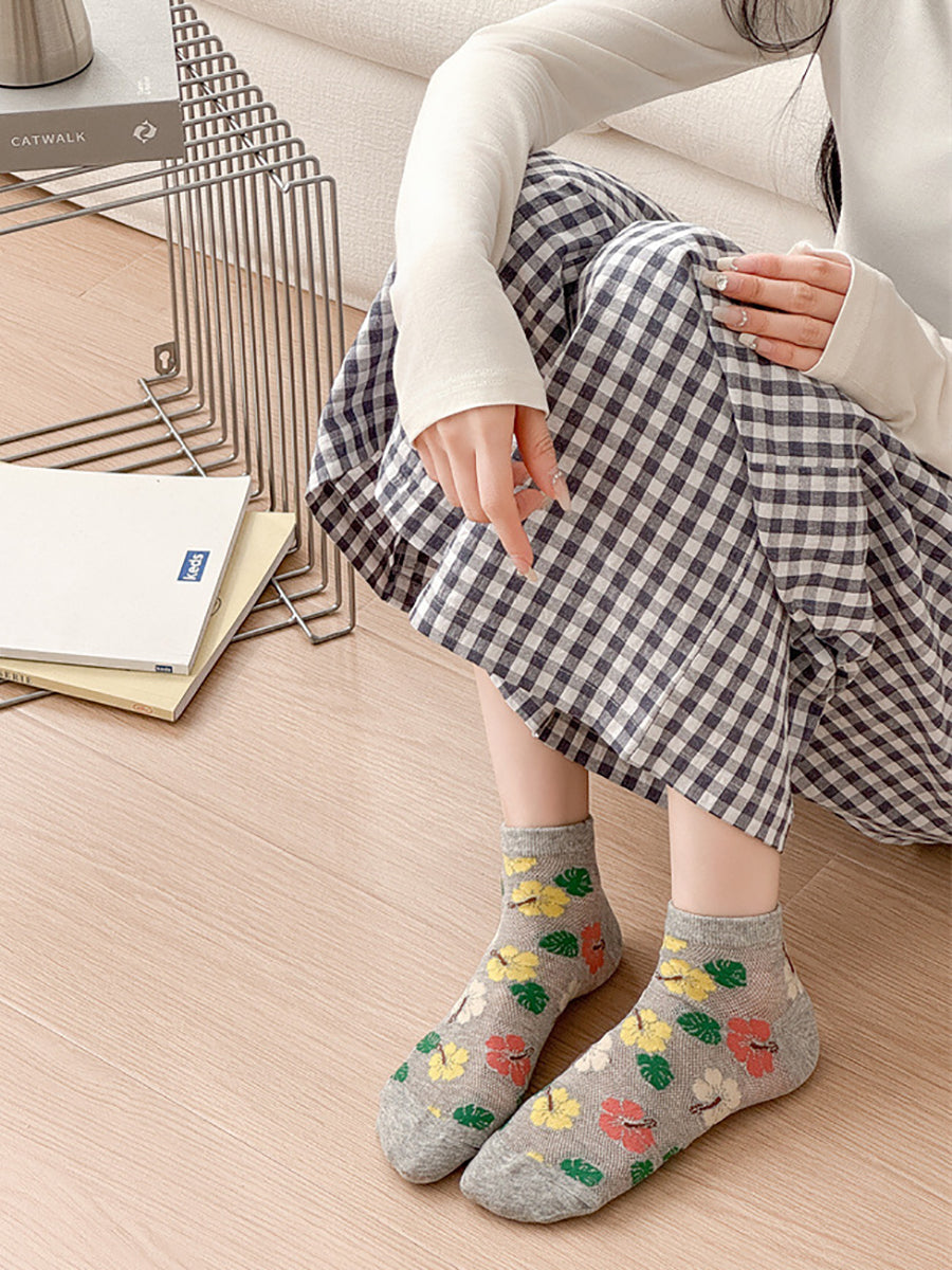 5 pares de calcetines de algodón con flores artísticas para mujer