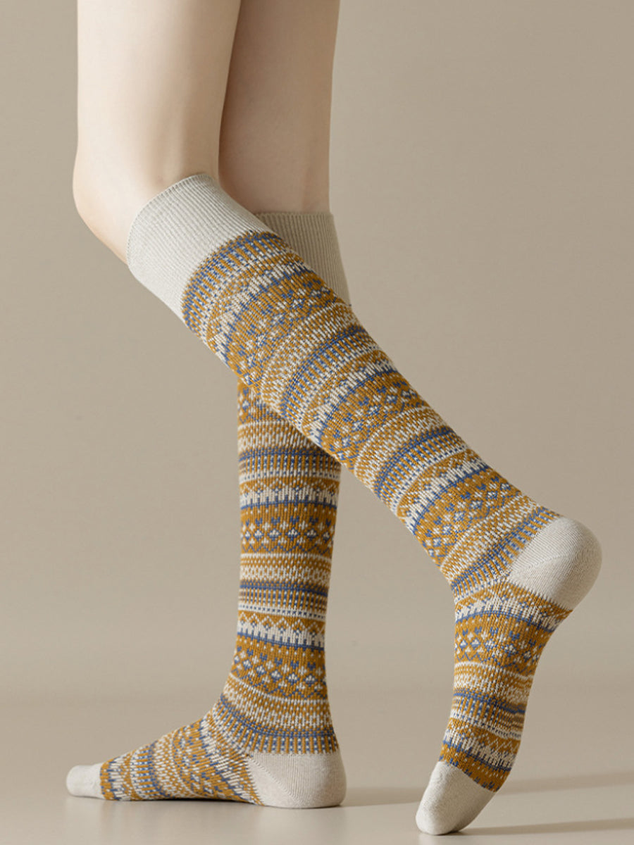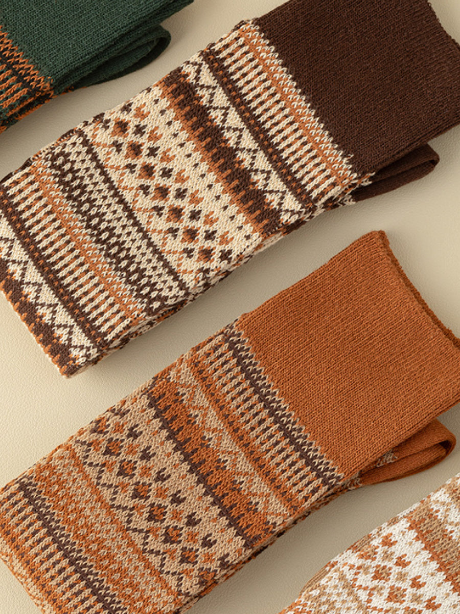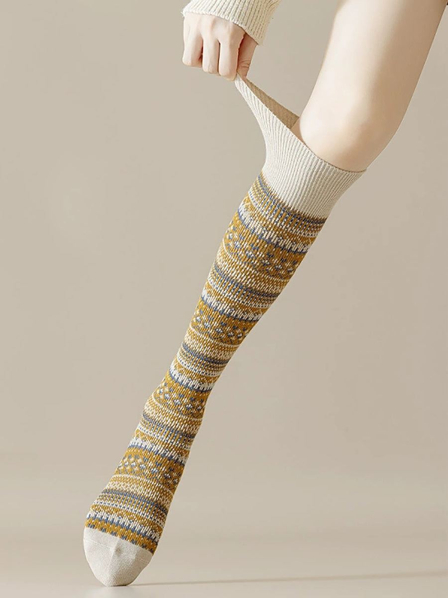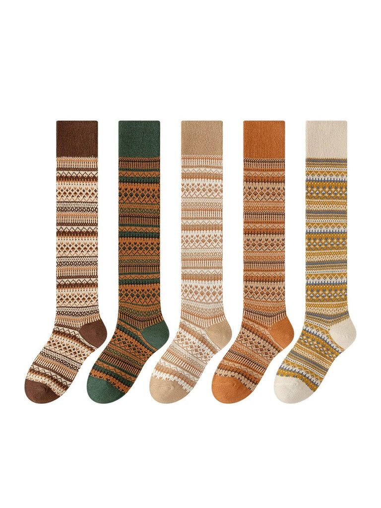 5 pares de calcetines largos de algodón a rayas de invierno para mujer