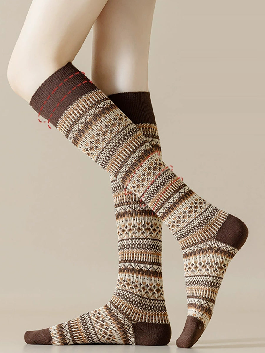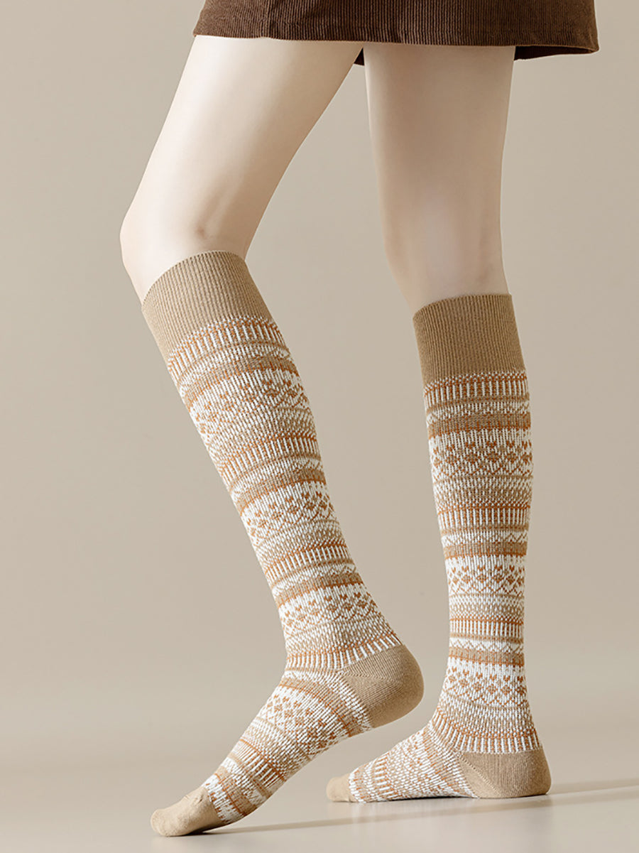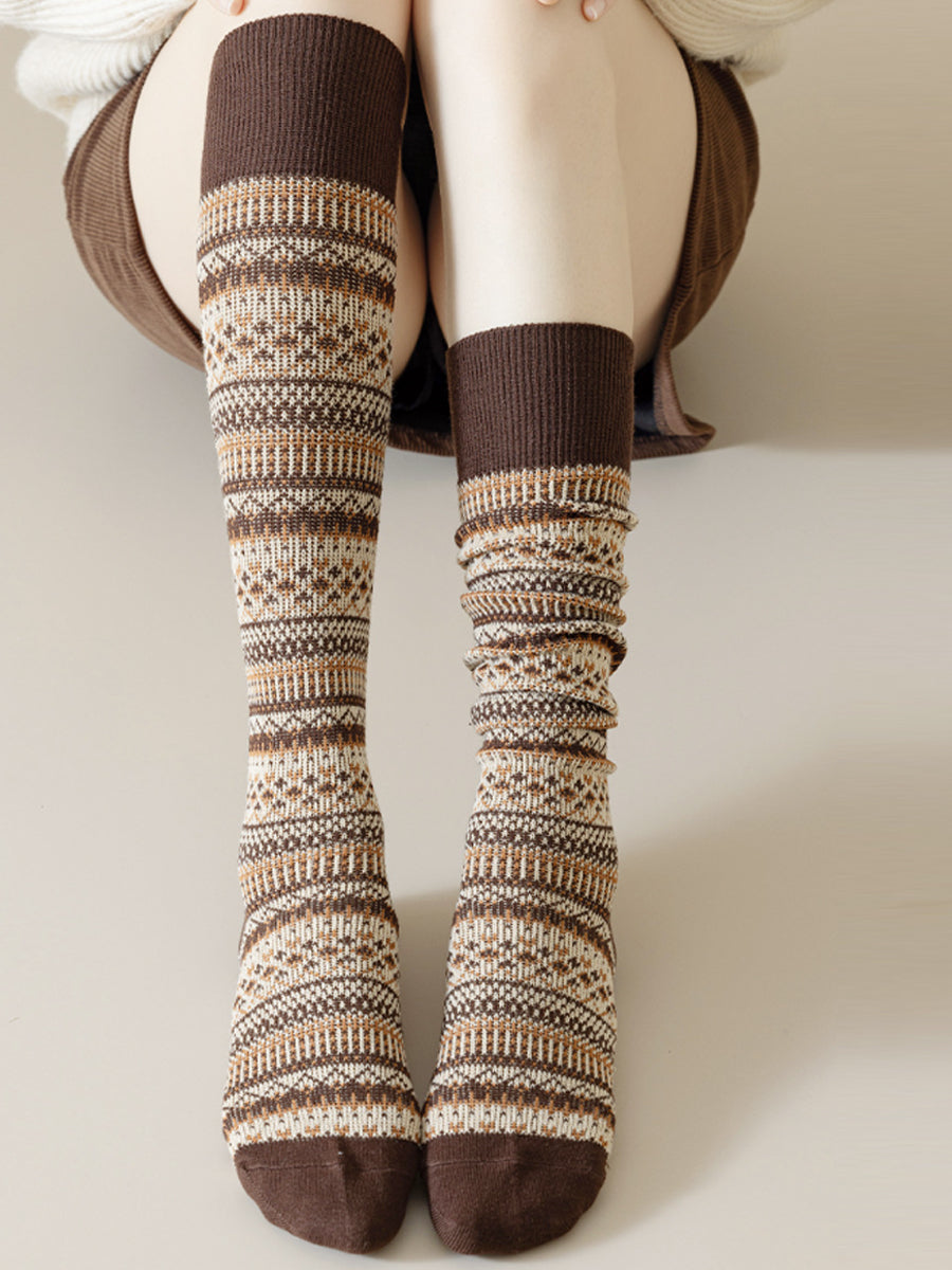 5 pares de calcetines largos de algodón a rayas de invierno para mujer