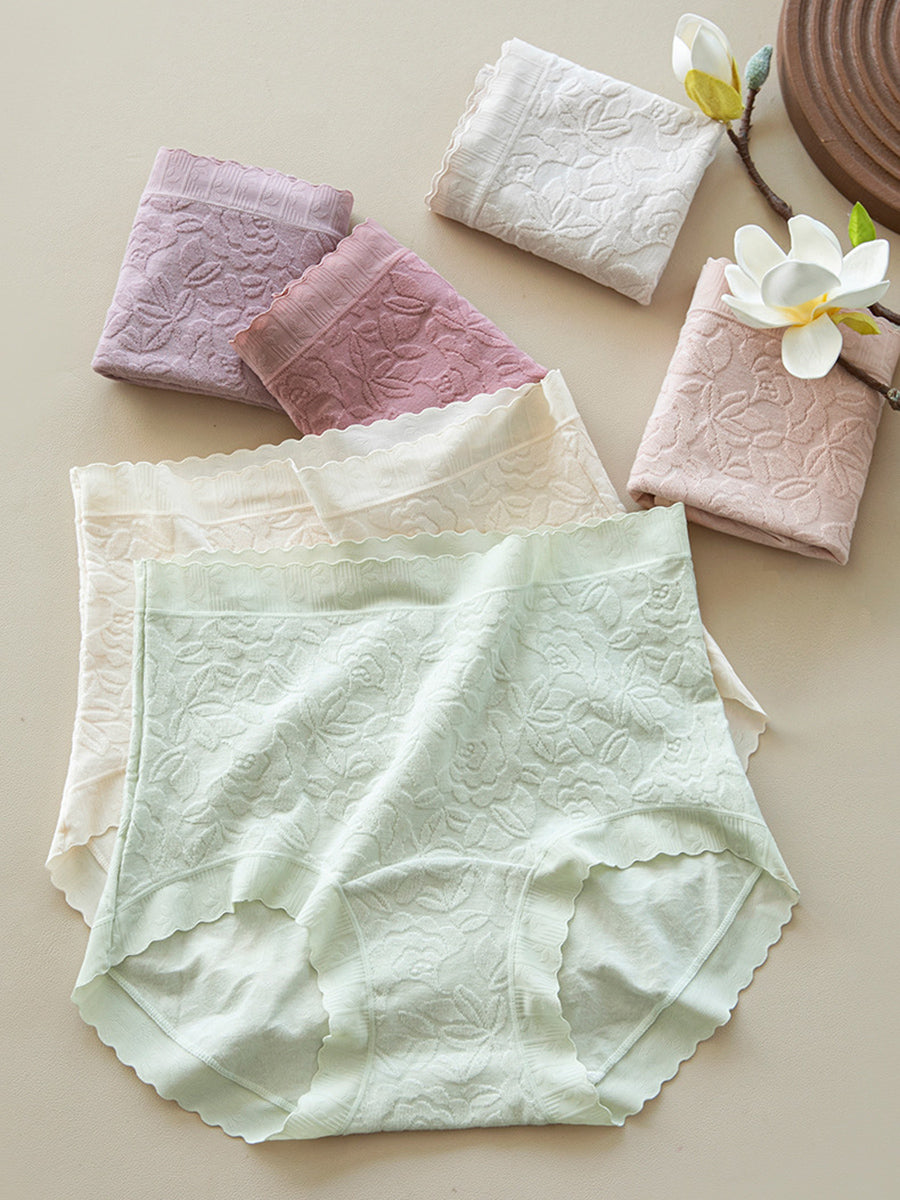 5 piezas de ropa interior de cintura alta con estampado floral artístico para mujer