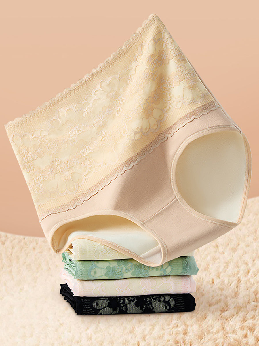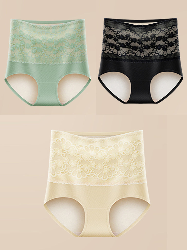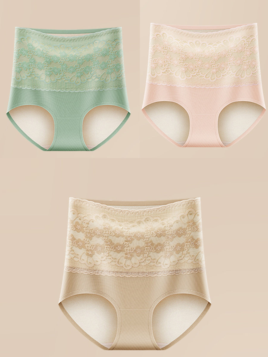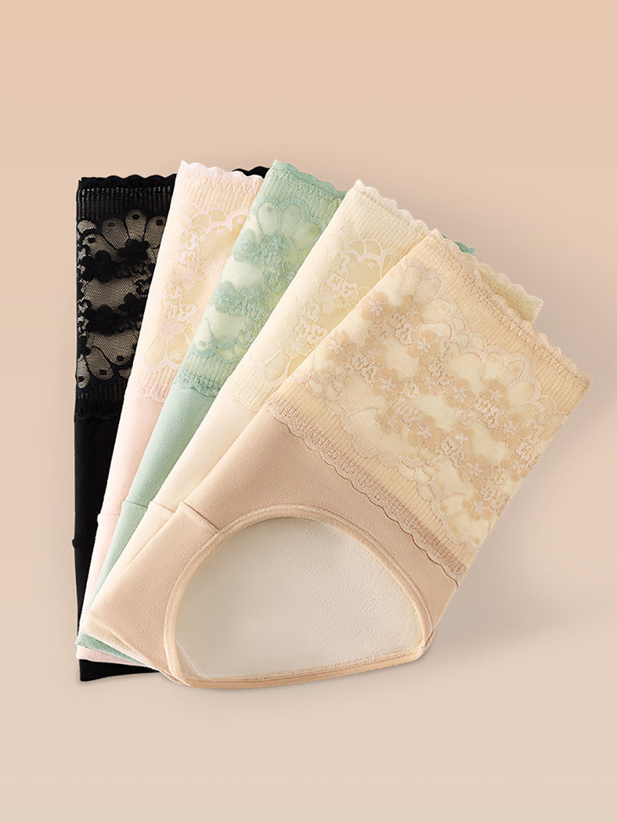 5 piezas de ropa interior de algodón de cintura alta de color puro para mujer