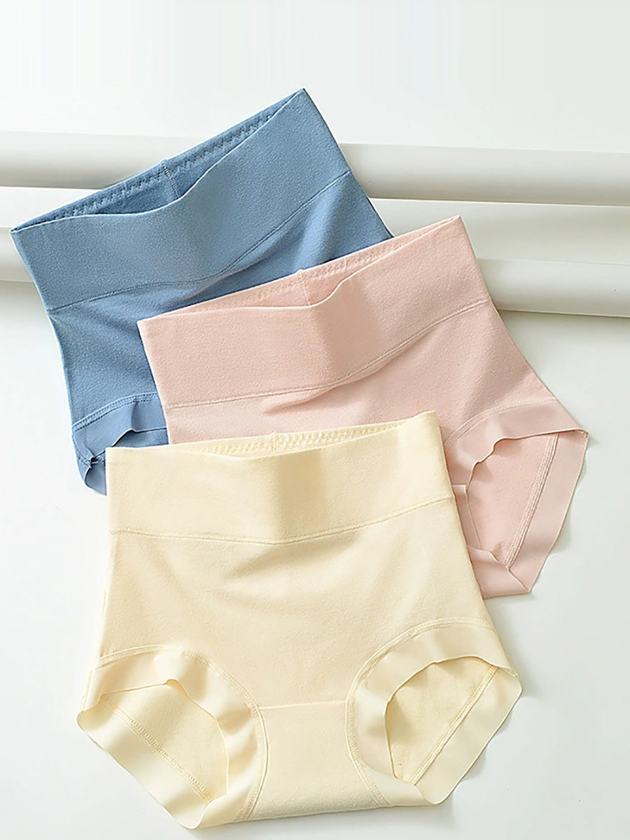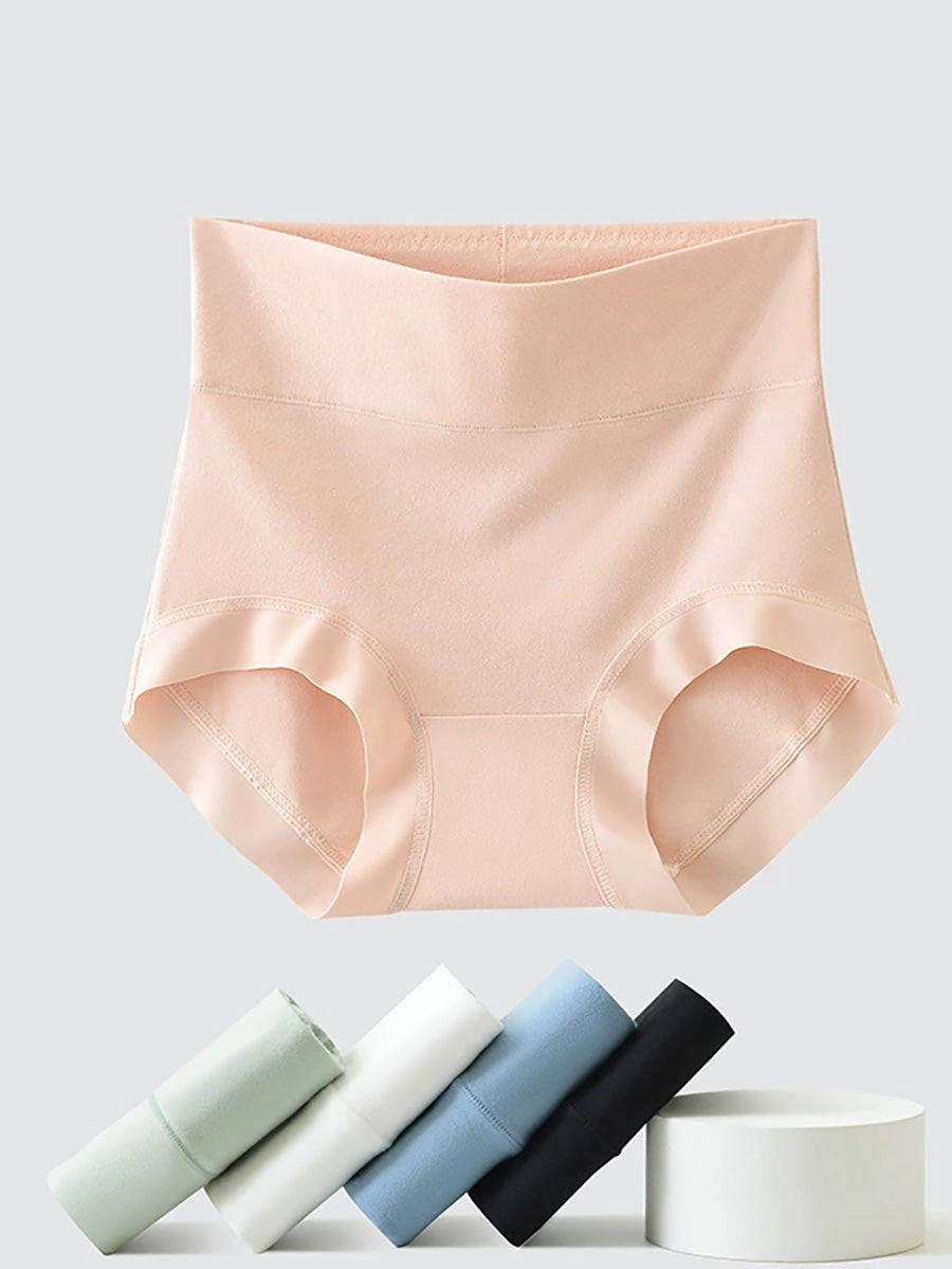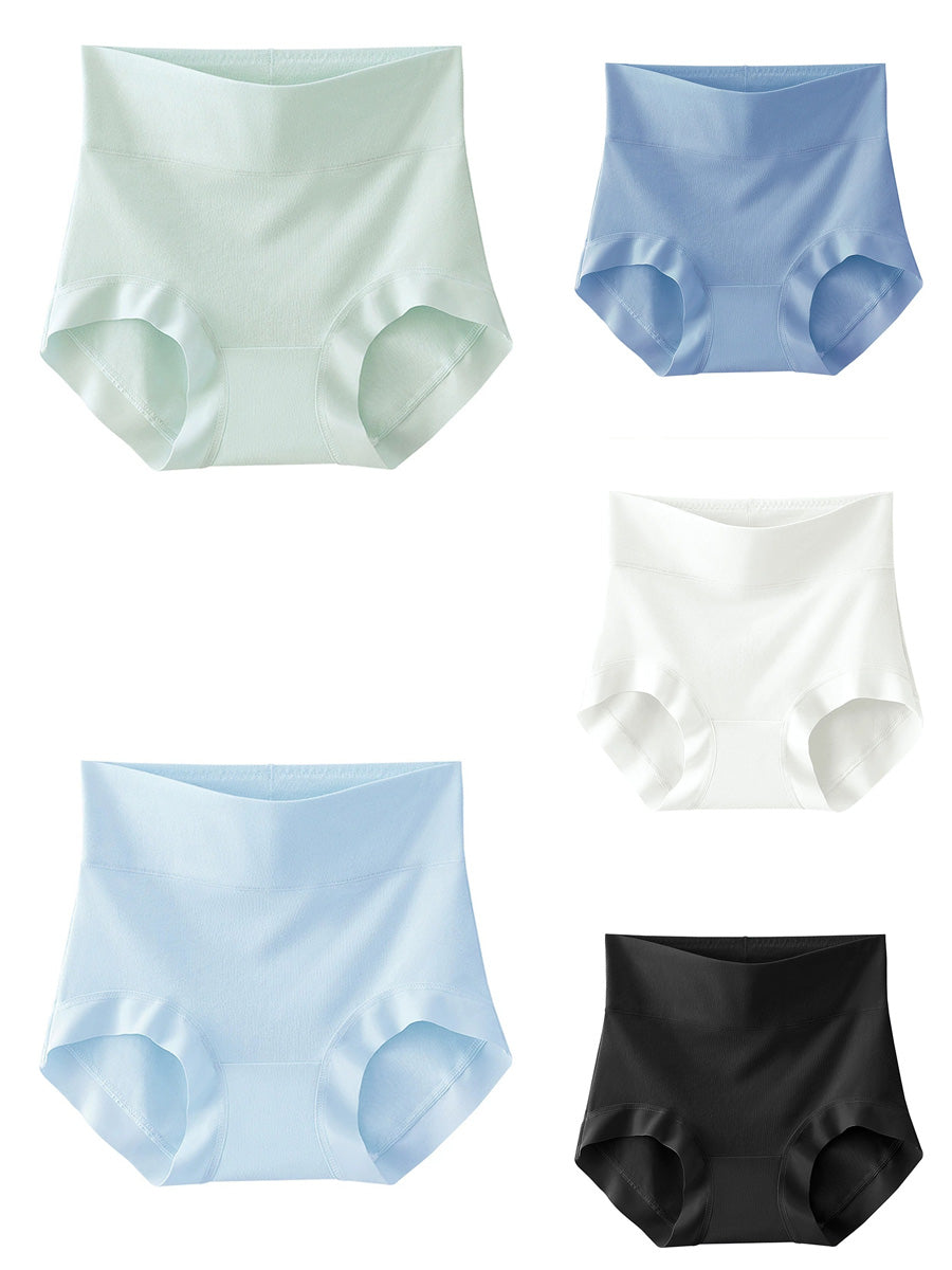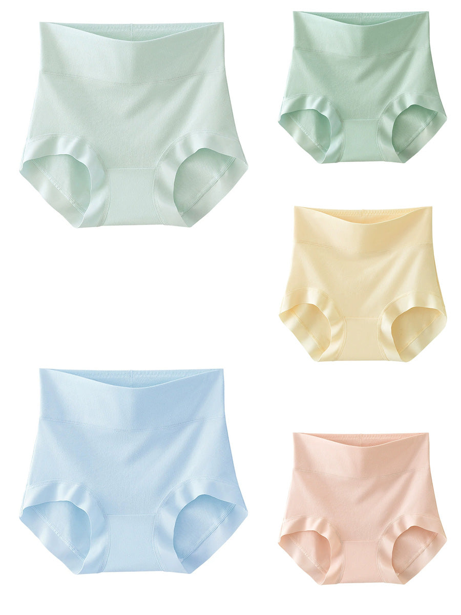 5 piezas de ropa interior de cintura alta de color puro para mujer