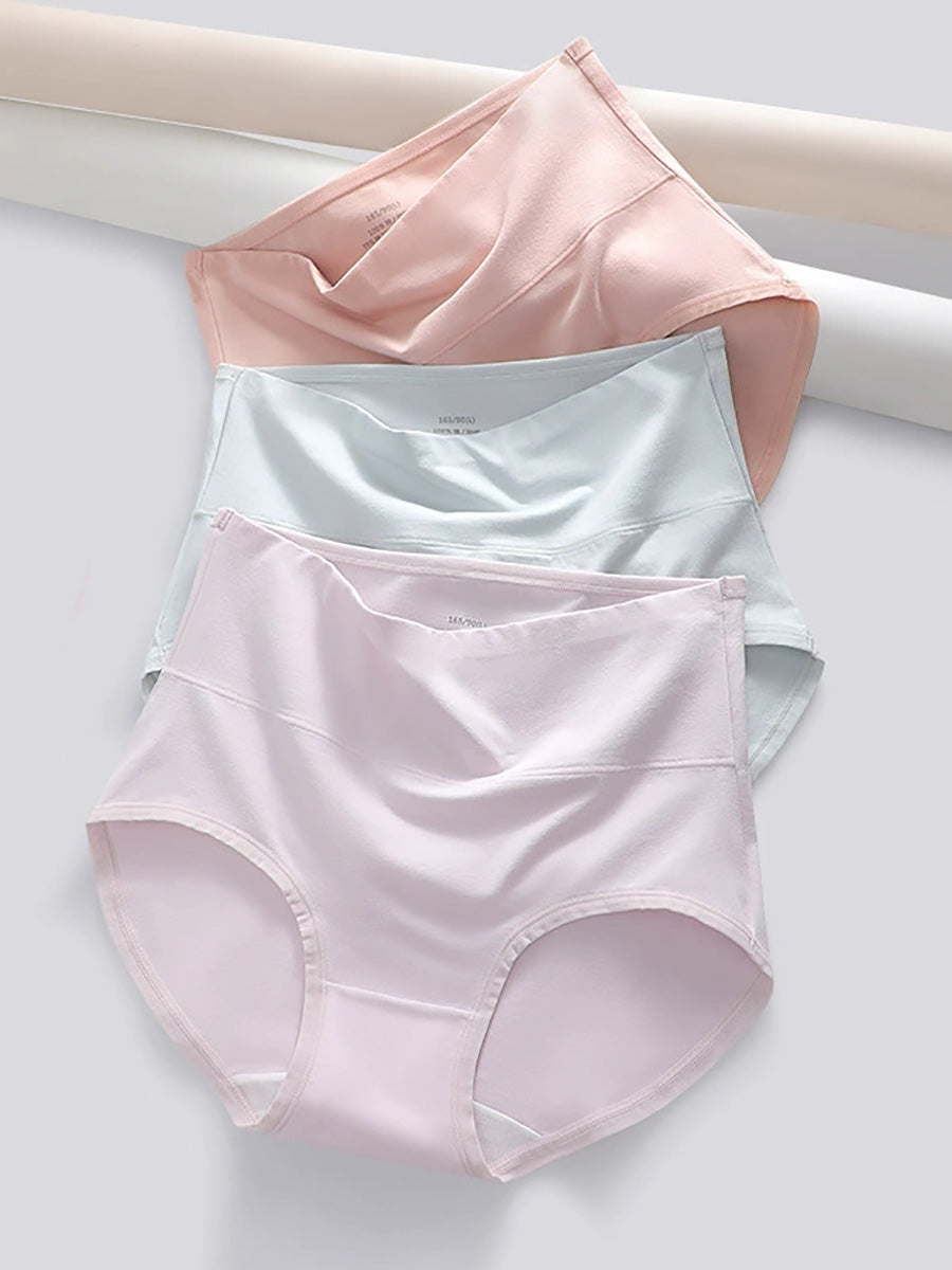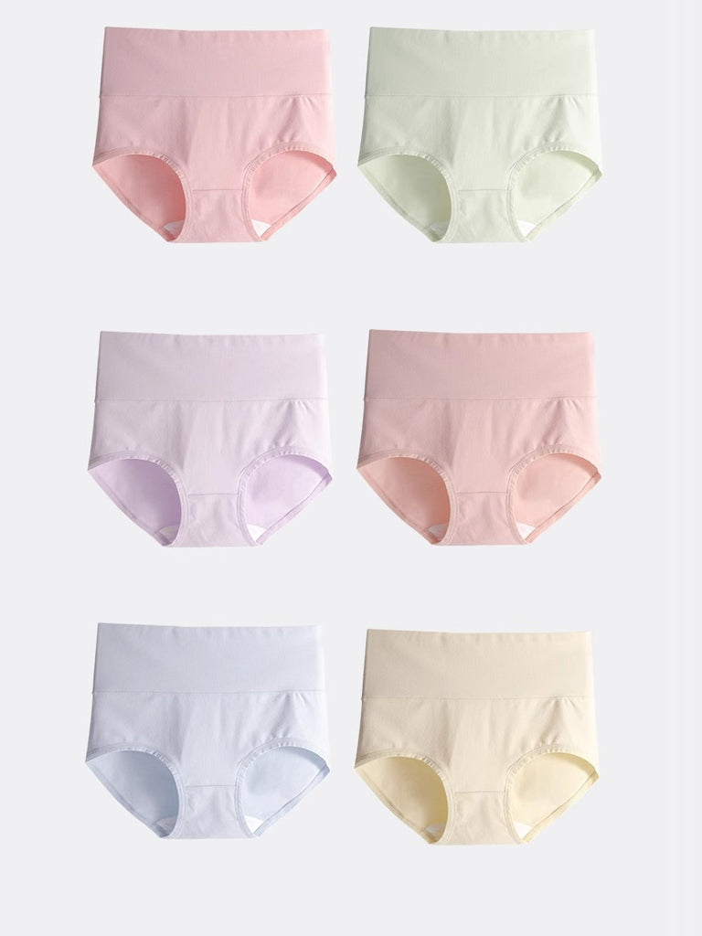 Conjunto de ropa interior femenina casual de cintura alta en color liso (6 piezas)