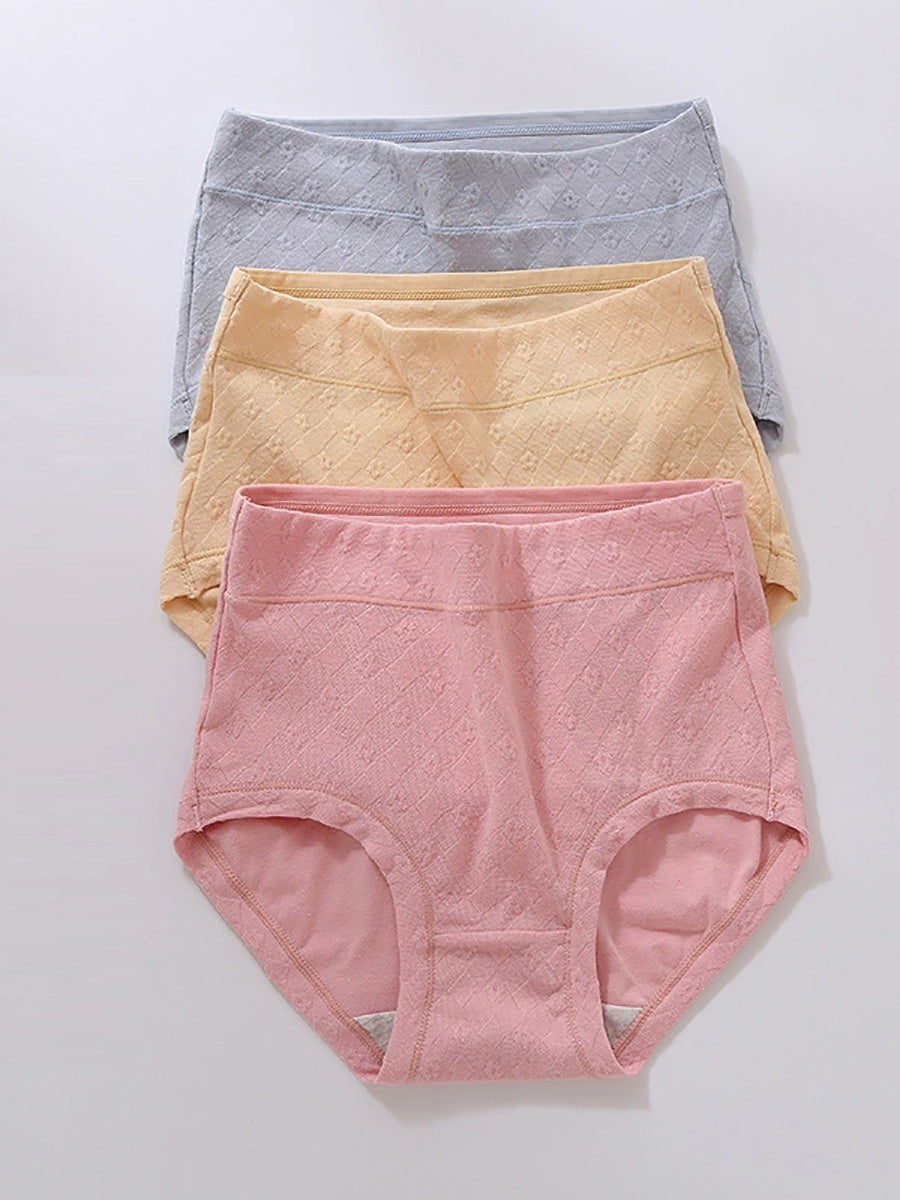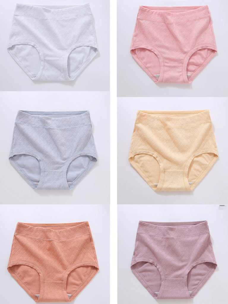 Conjunto de ropa interior femenina casual de cintura alta en color liso (6 piezas)