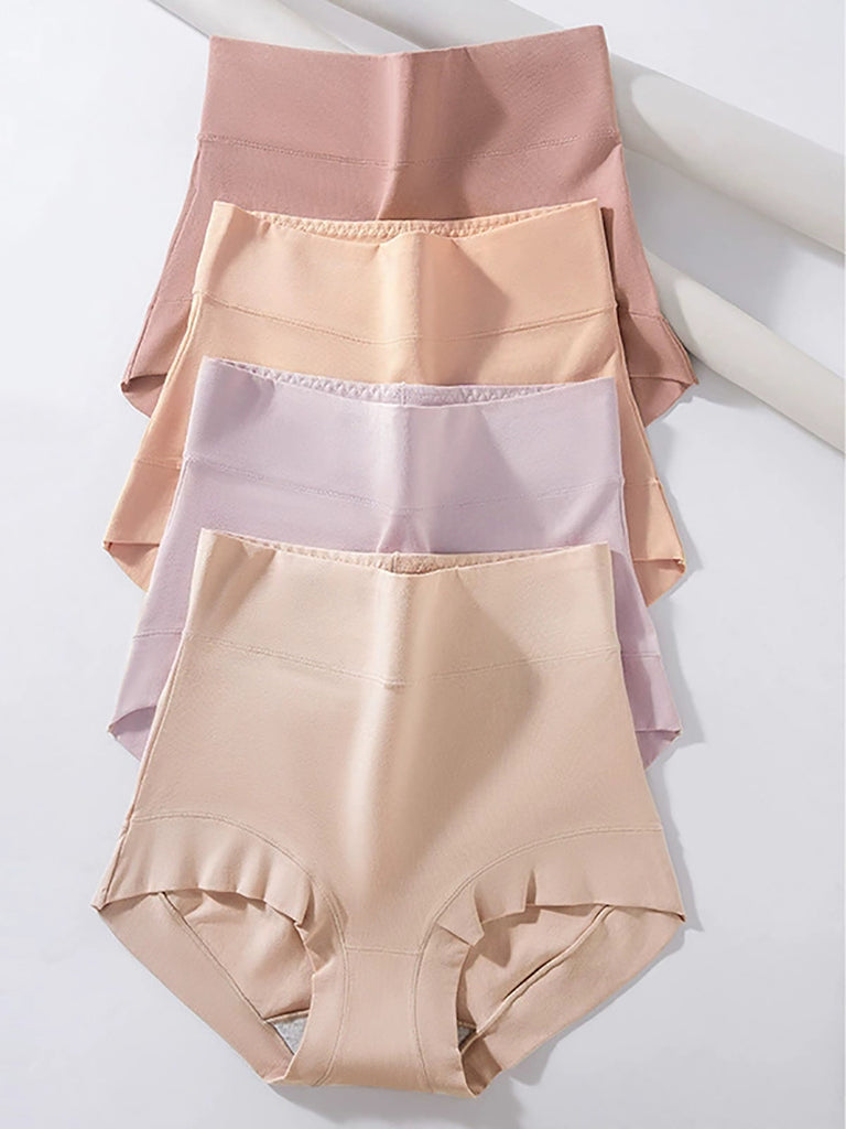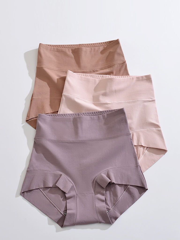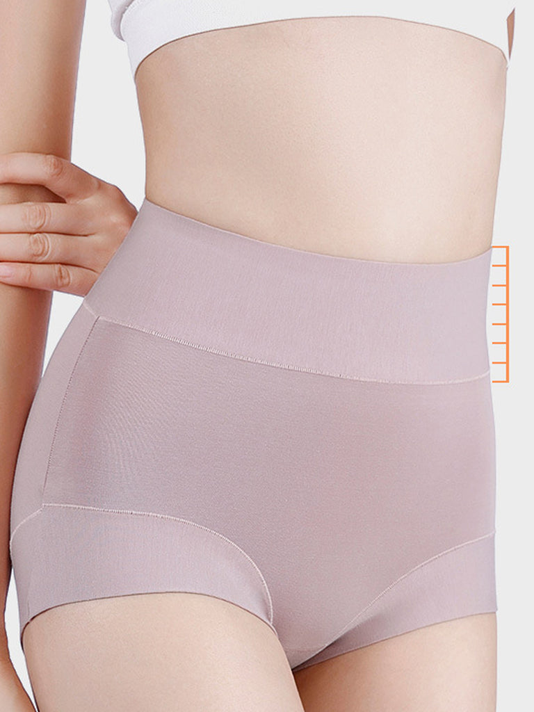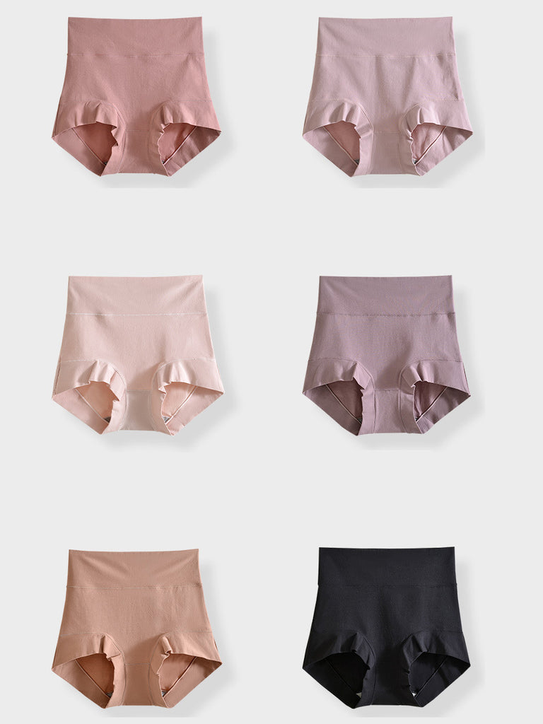 6 piezas de ropa interior de cintura alta de color puro para mujer