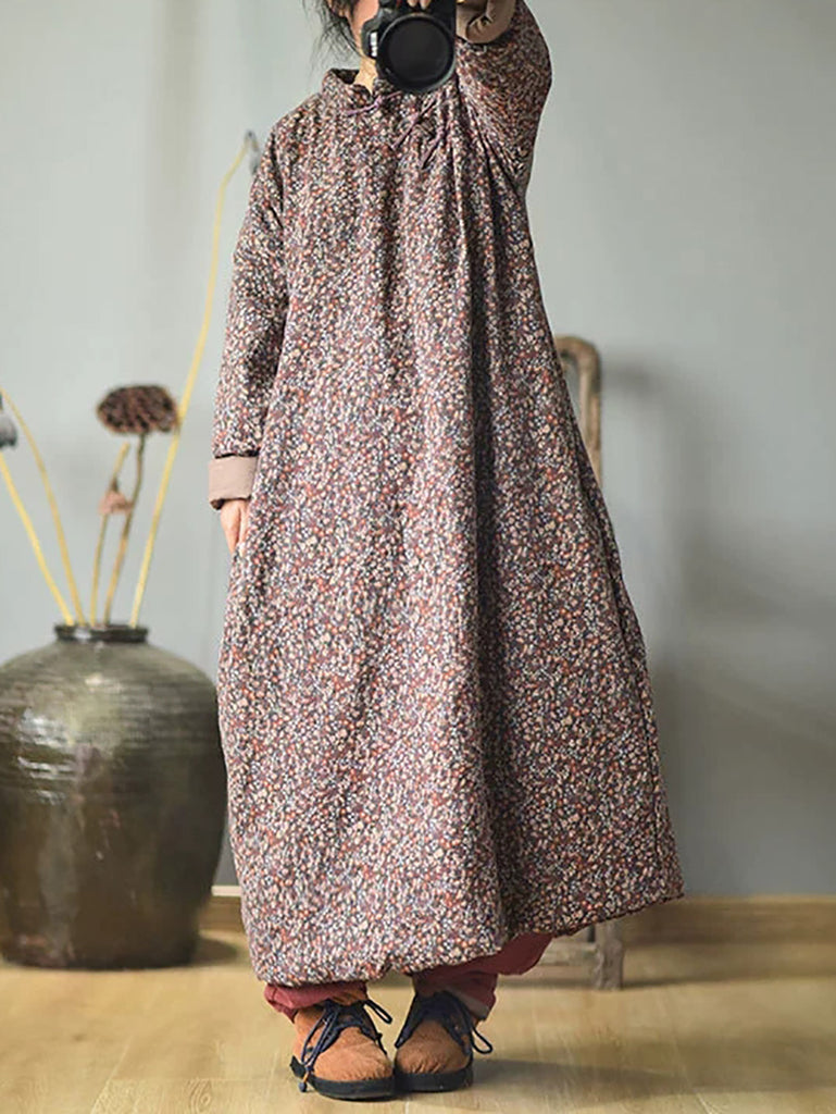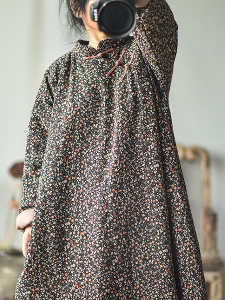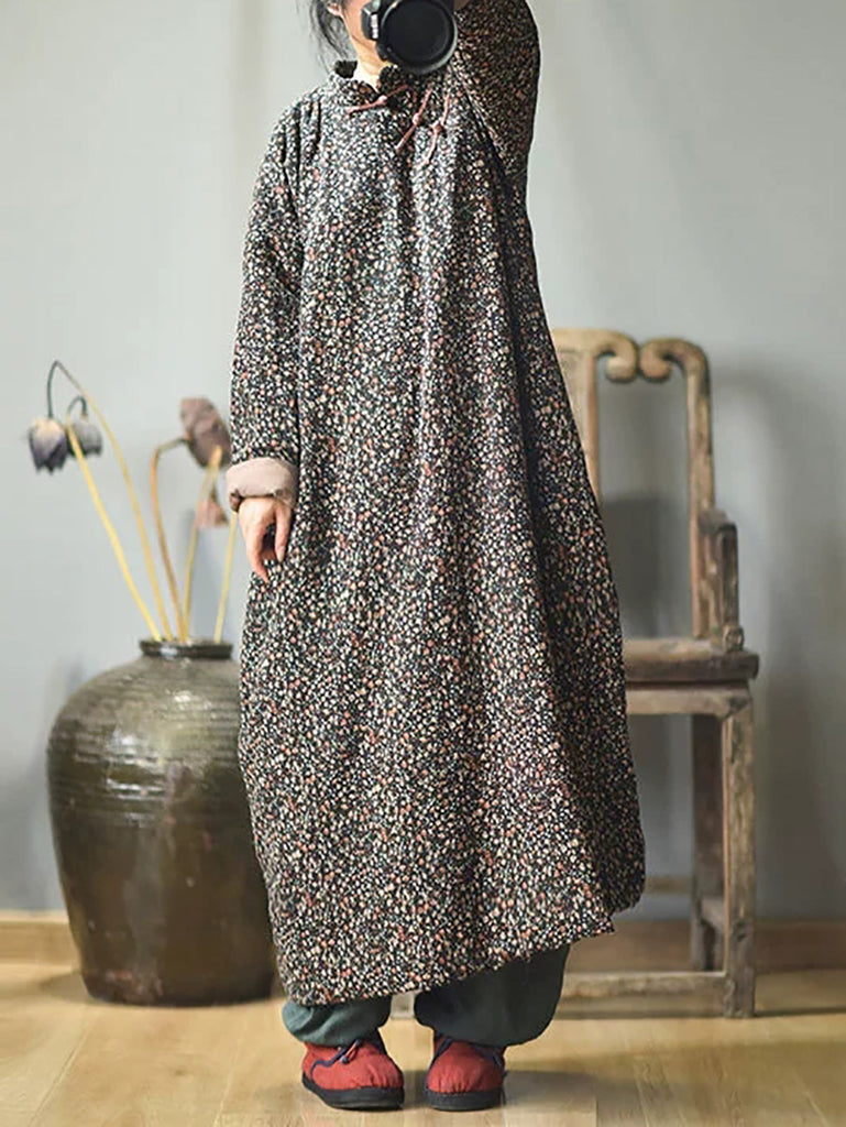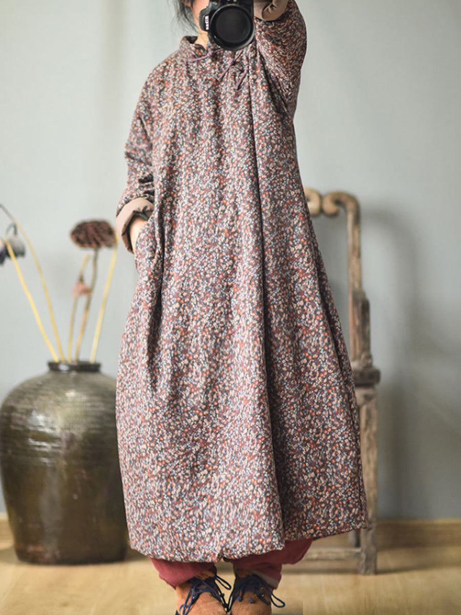 Tallas grandes - Vestido de algodón floral suelto para mujer de otoño