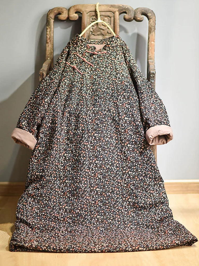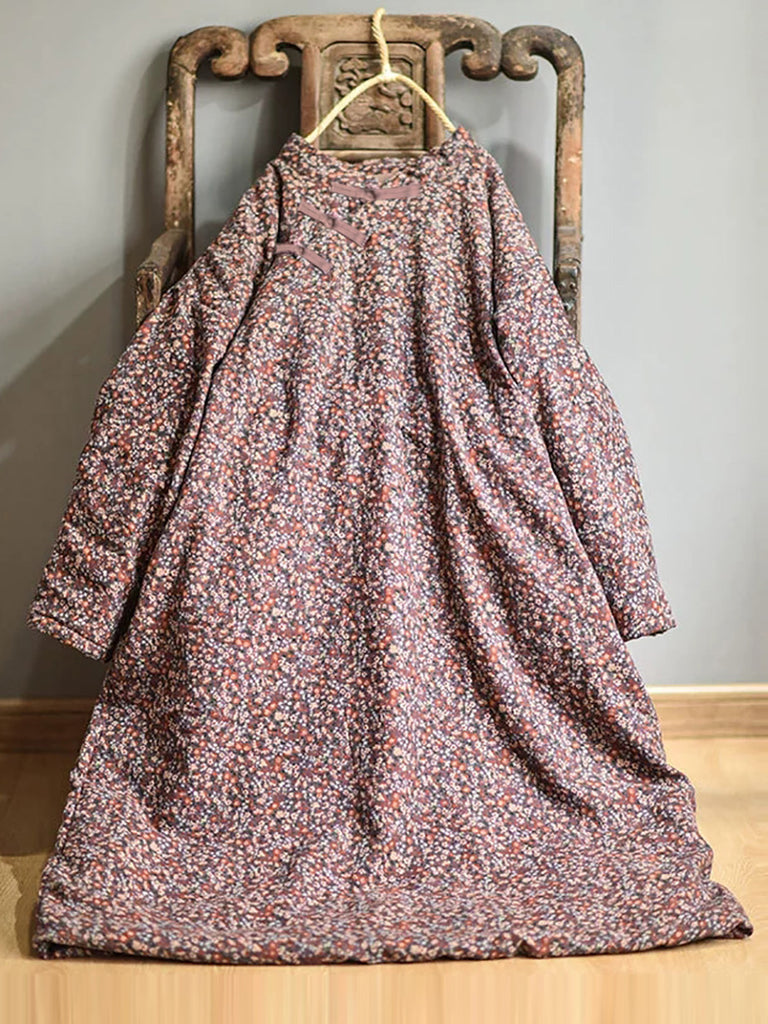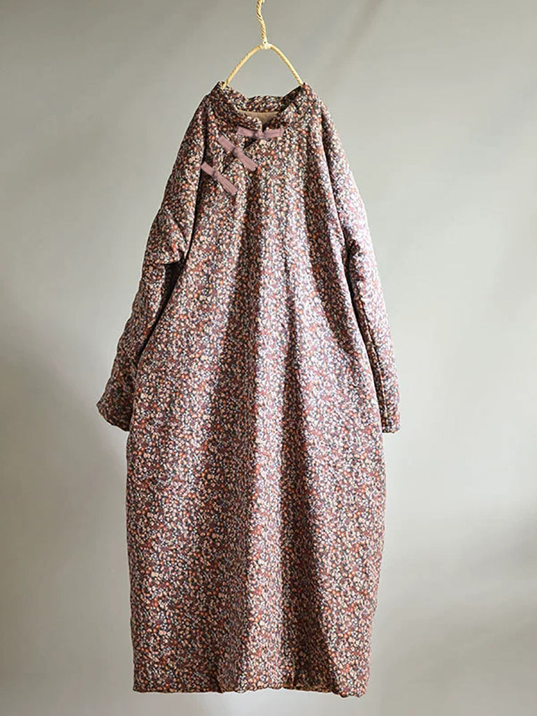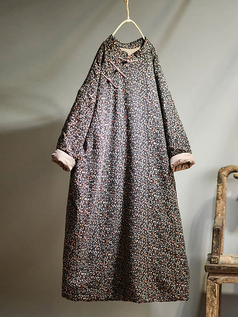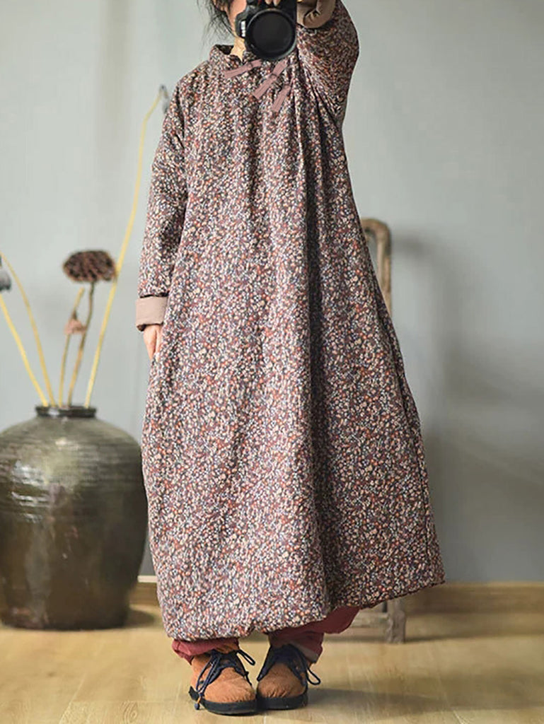 Tallas grandes - Vestido de algodón floral suelto para mujer de otoño
