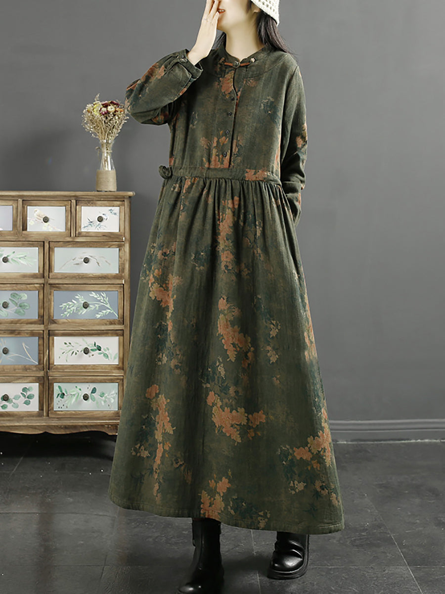 Vestido de algodón con estampado de hojas vintage de otoño para mujer de talla grande