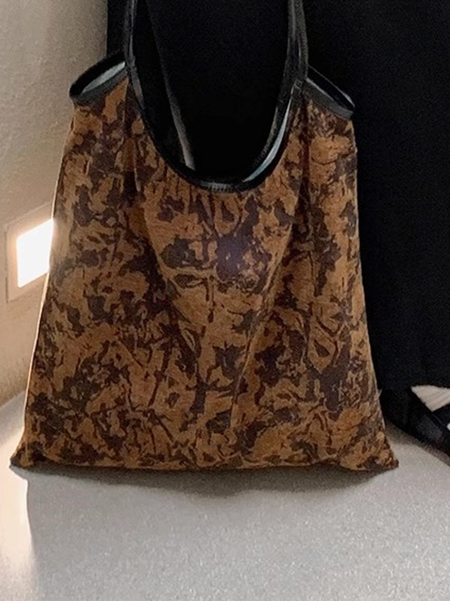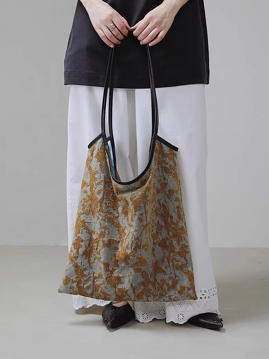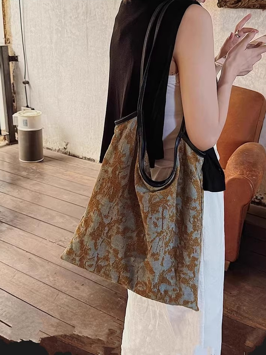 Bolso de hombro de lona con relieve y estampado de pintura al óleo retro