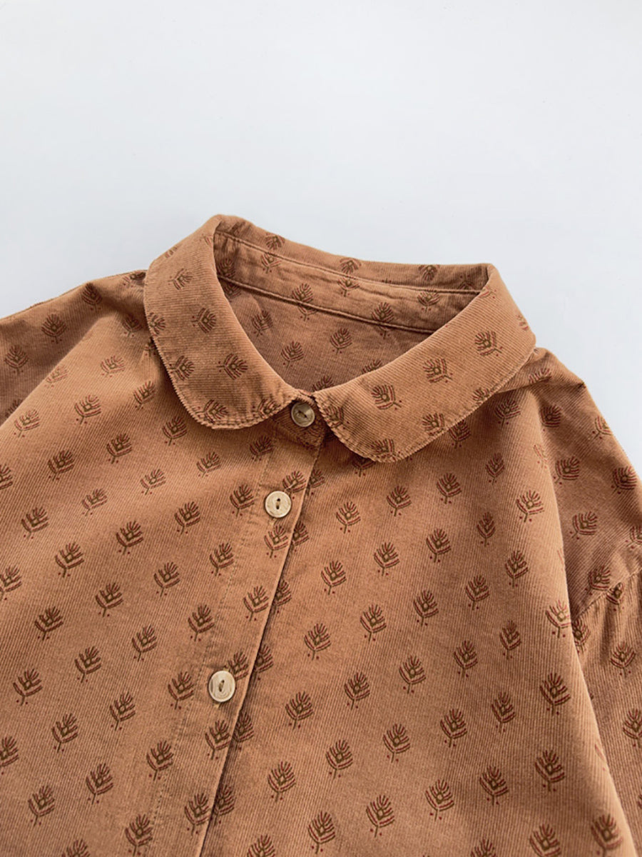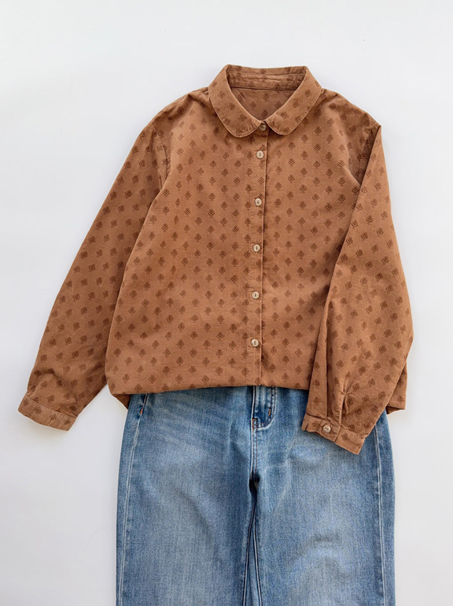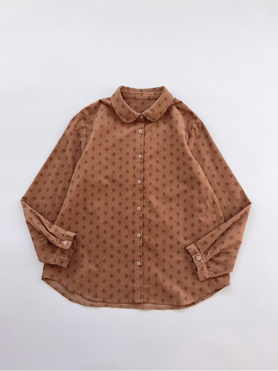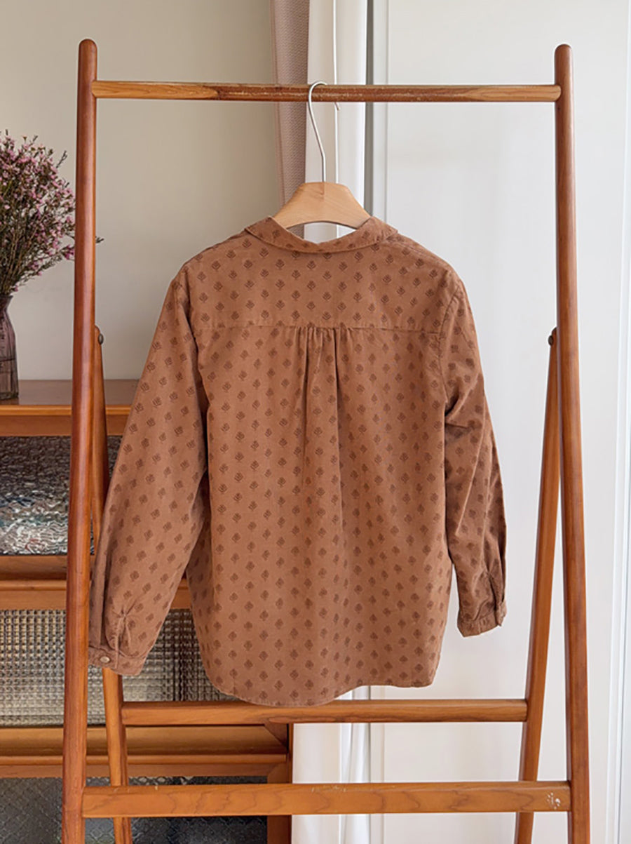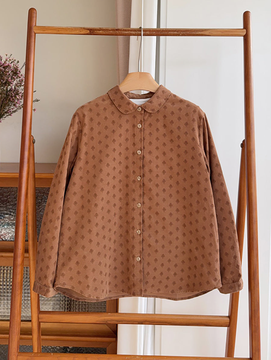 Camisa de pana con cuello vuelto y lunares otoñales para mujer