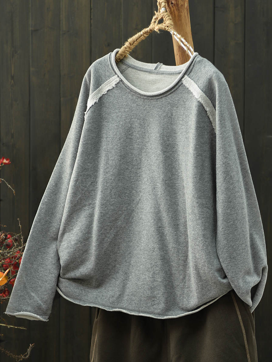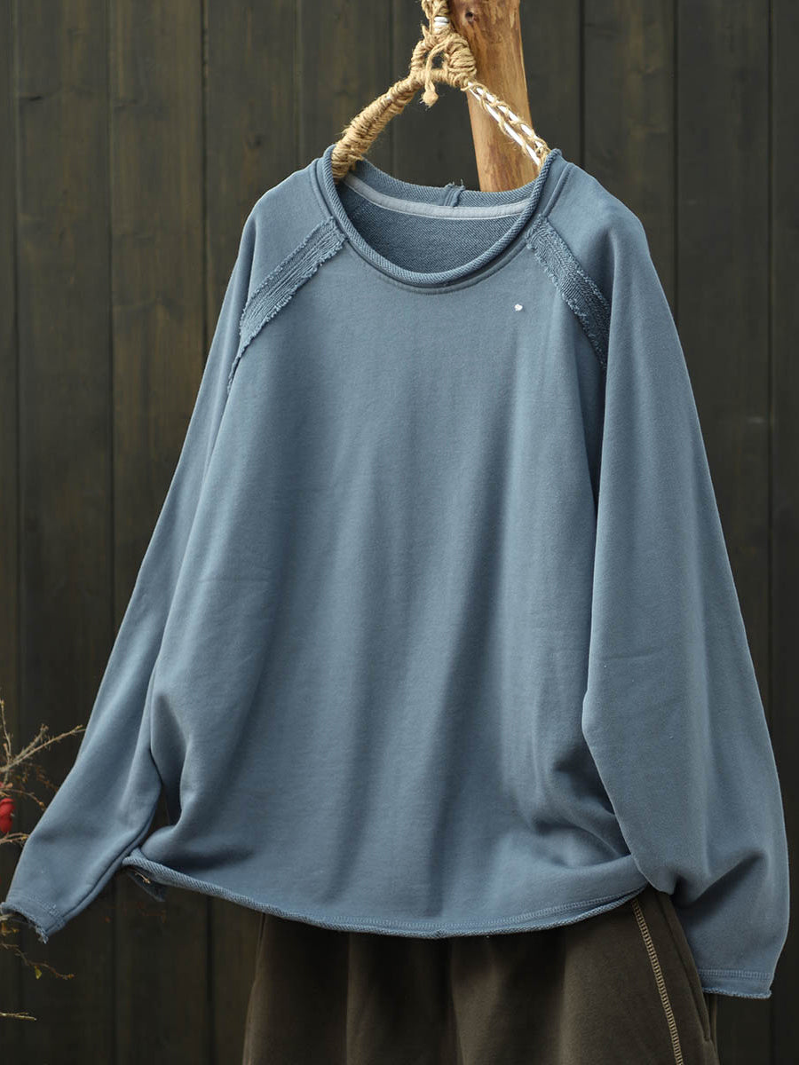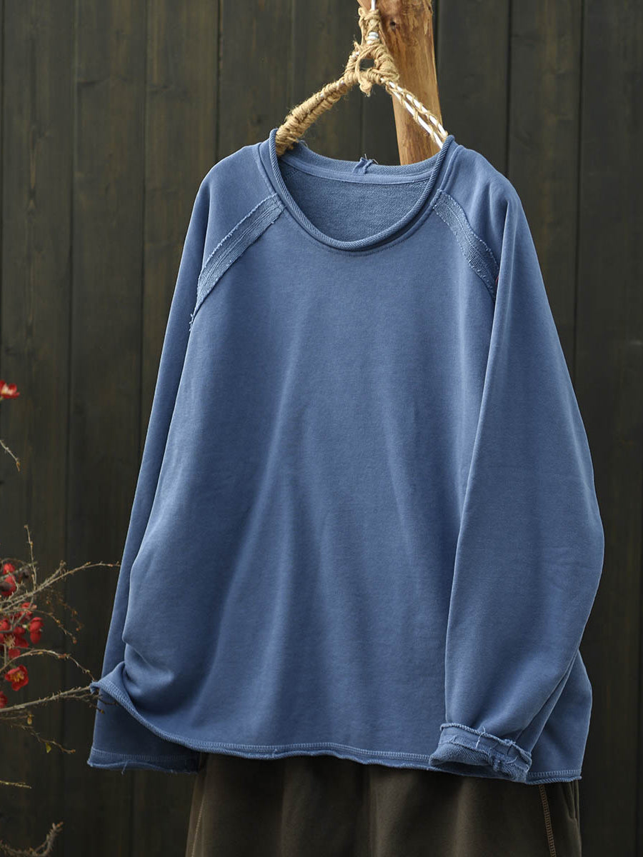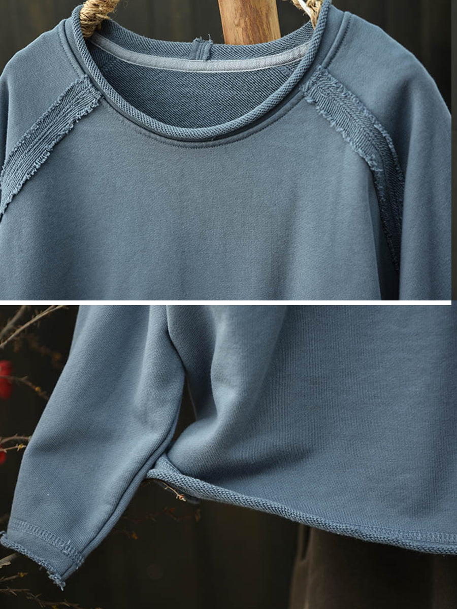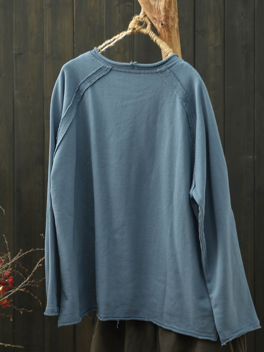 Blusa de algodón con cuello redondo y diseño artístico de otoño para mujer