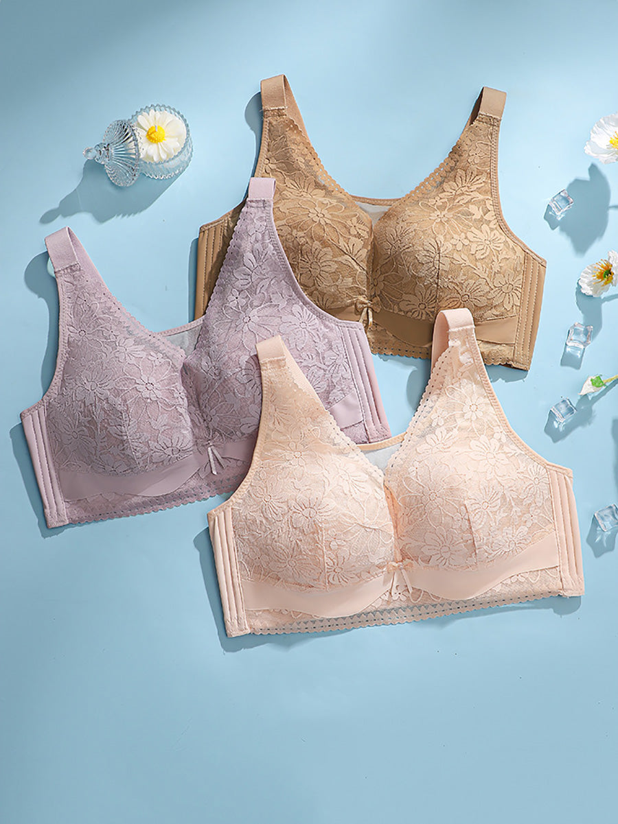Sujetador sin aros de encaje Artsy Pure Color para mujer