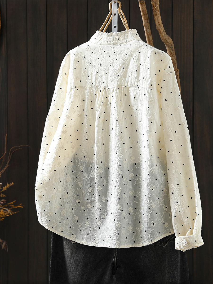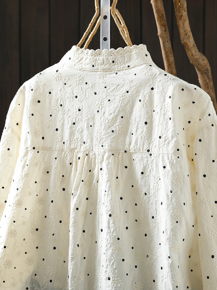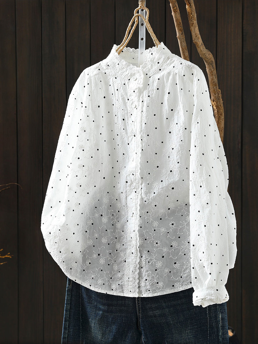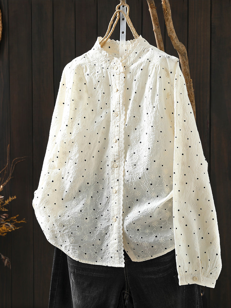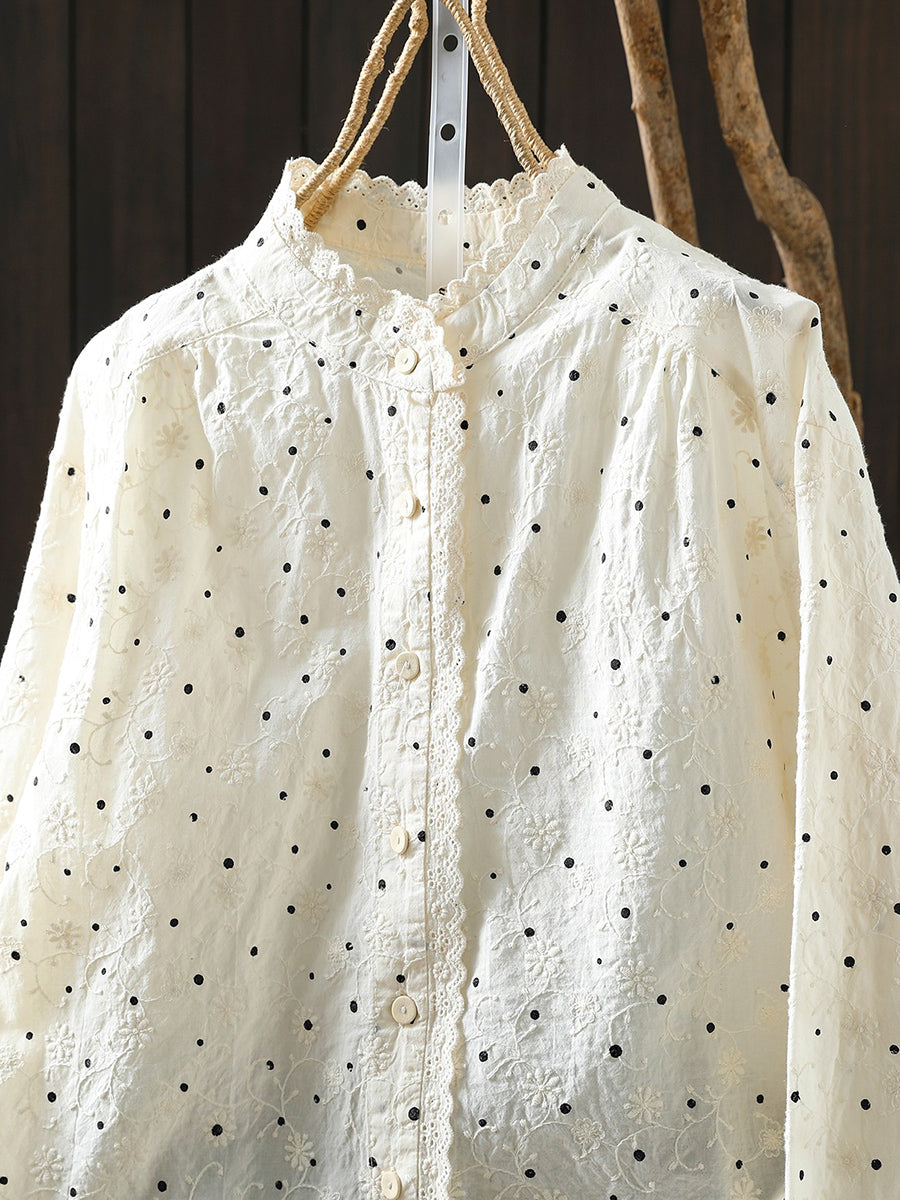 Blusa de cuello alto 100 % algodón con lunares Artsy Spring para mujer