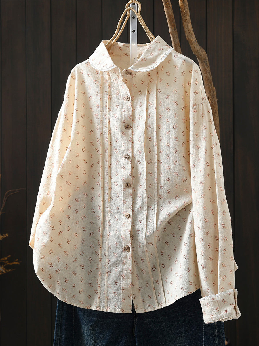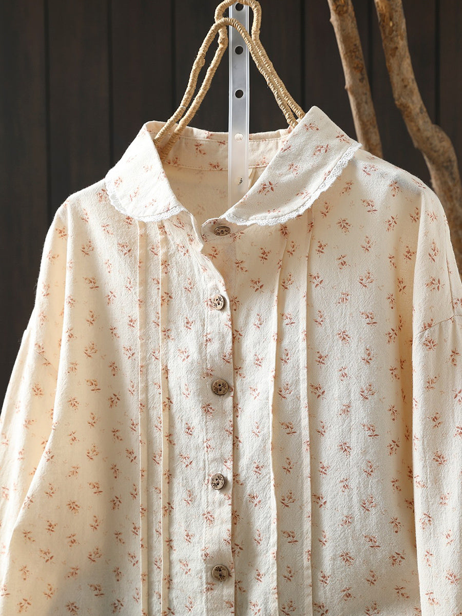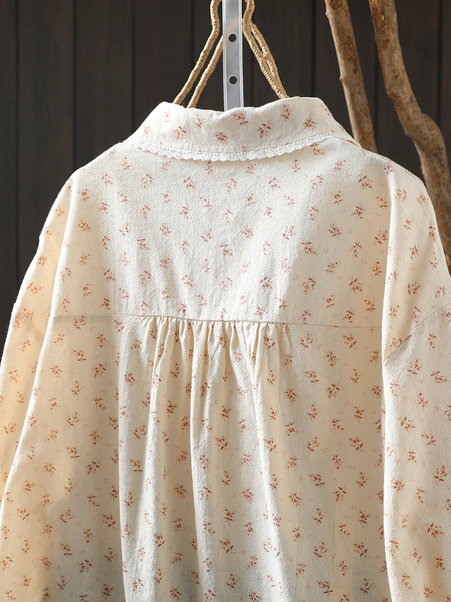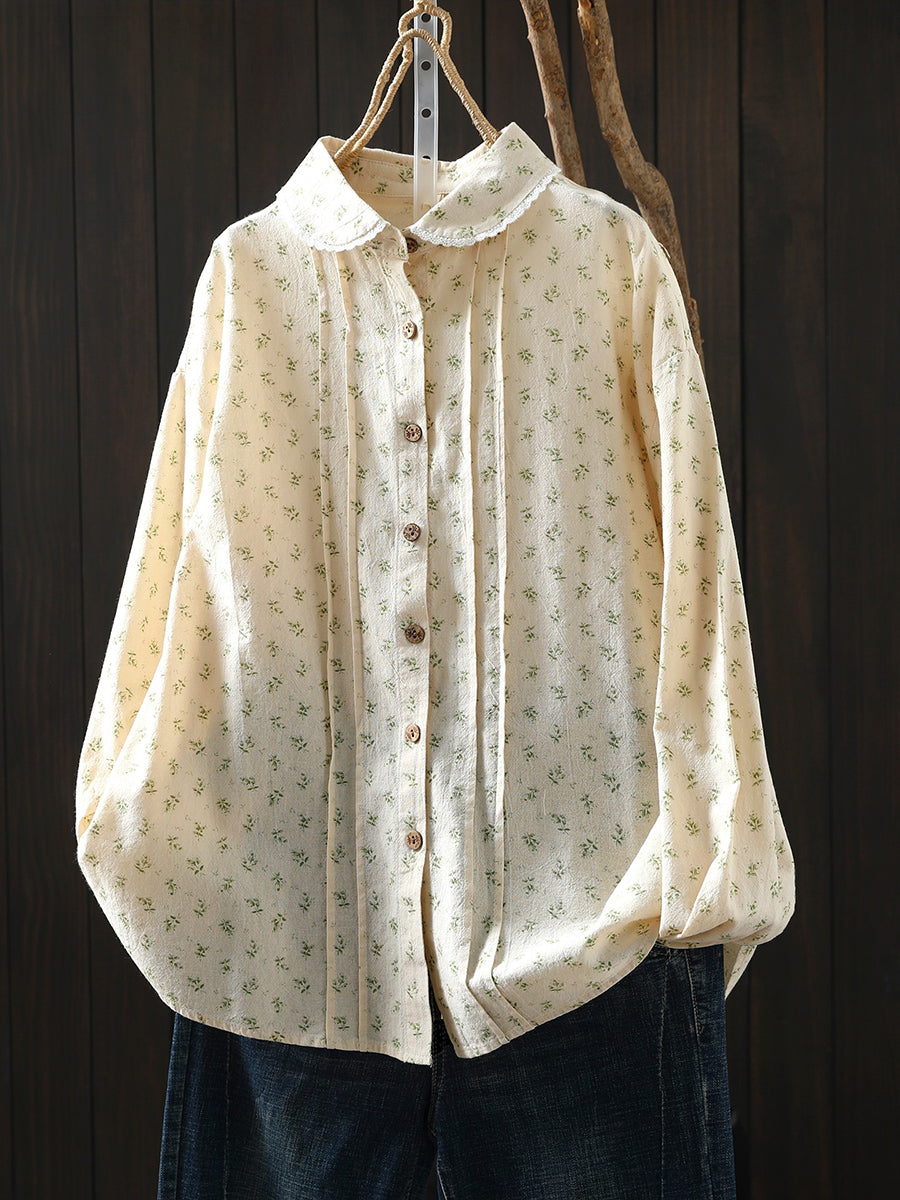 Camisa fruncida 100 % algodón con estampado floral de primavera para mujer