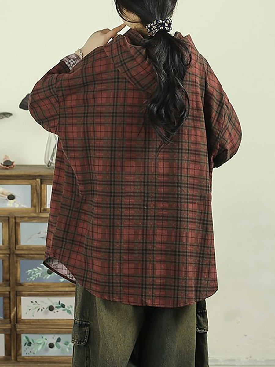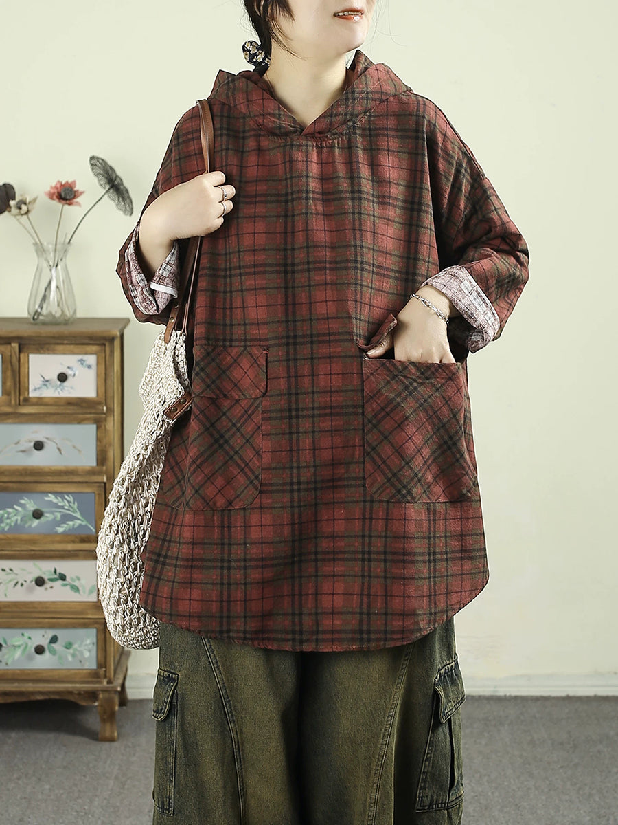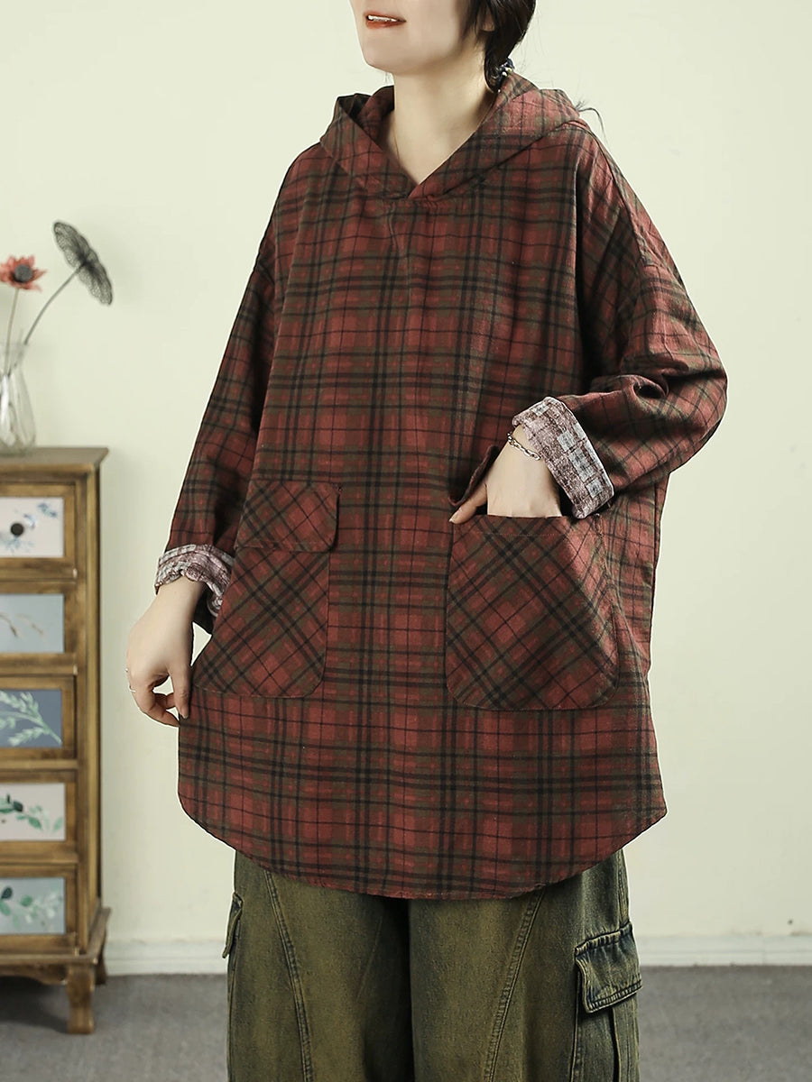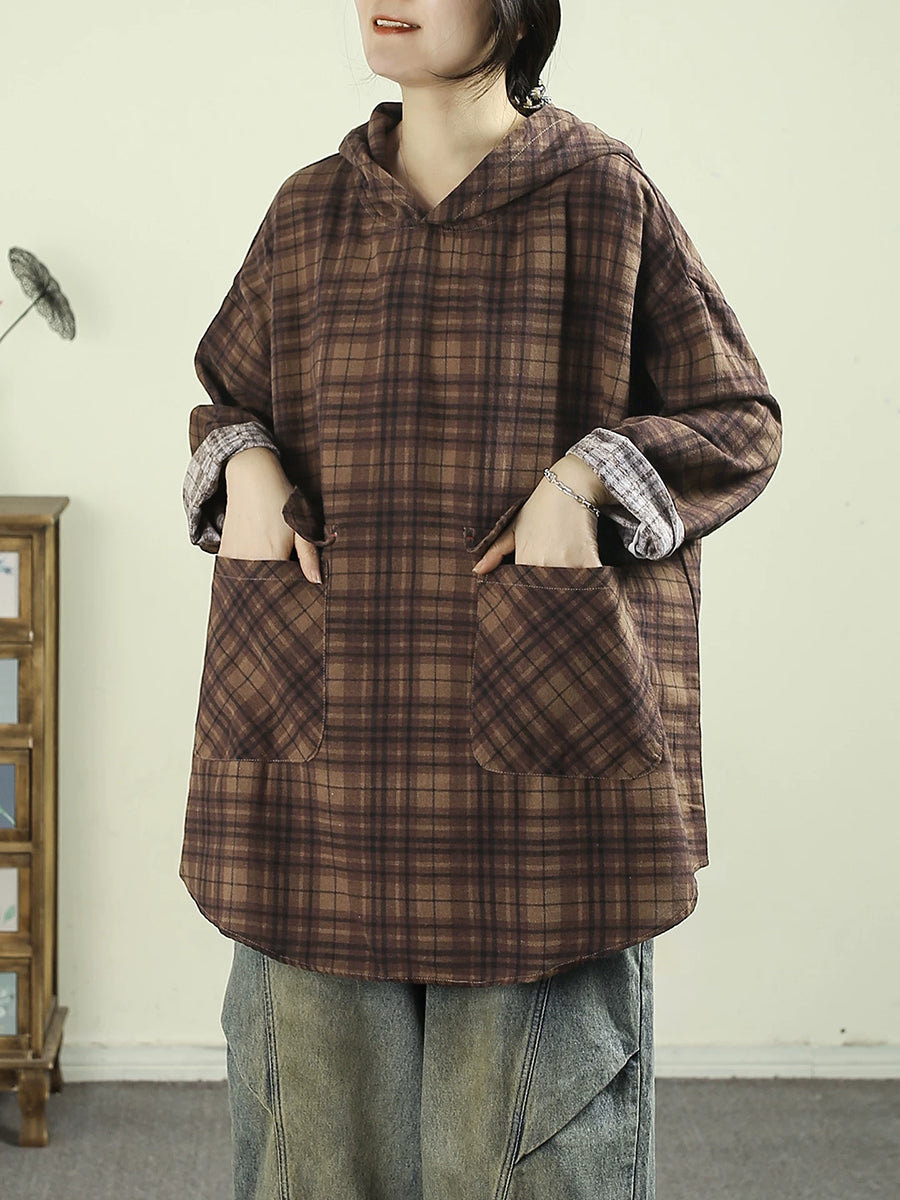 Sudadera con capucha de algodón a cuadros de primavera para mujer