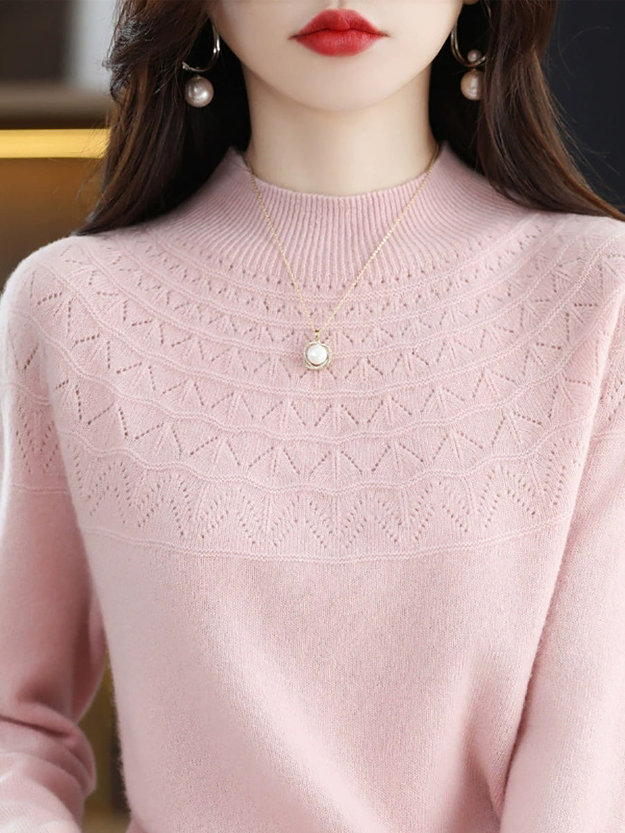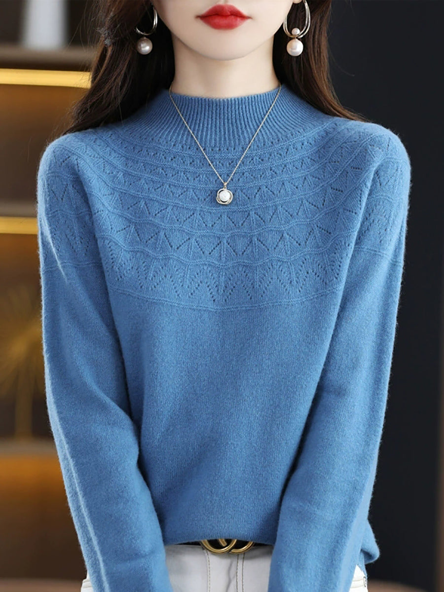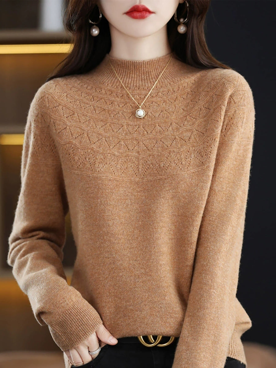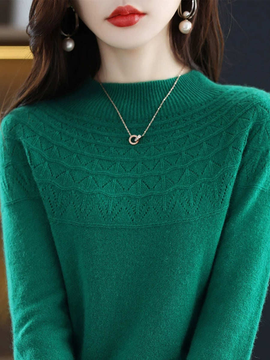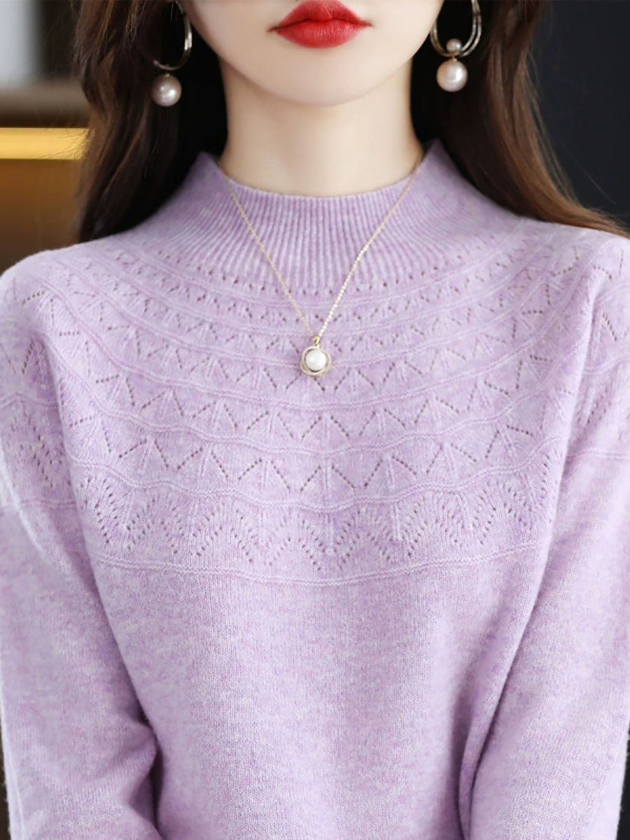 Suéter de cuello alto medio de color puro y estilo artístico para mujer