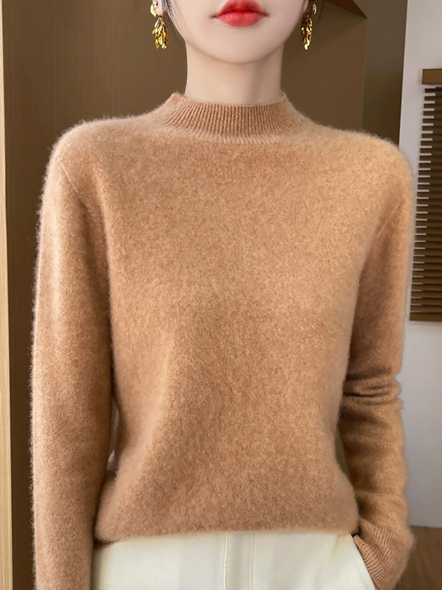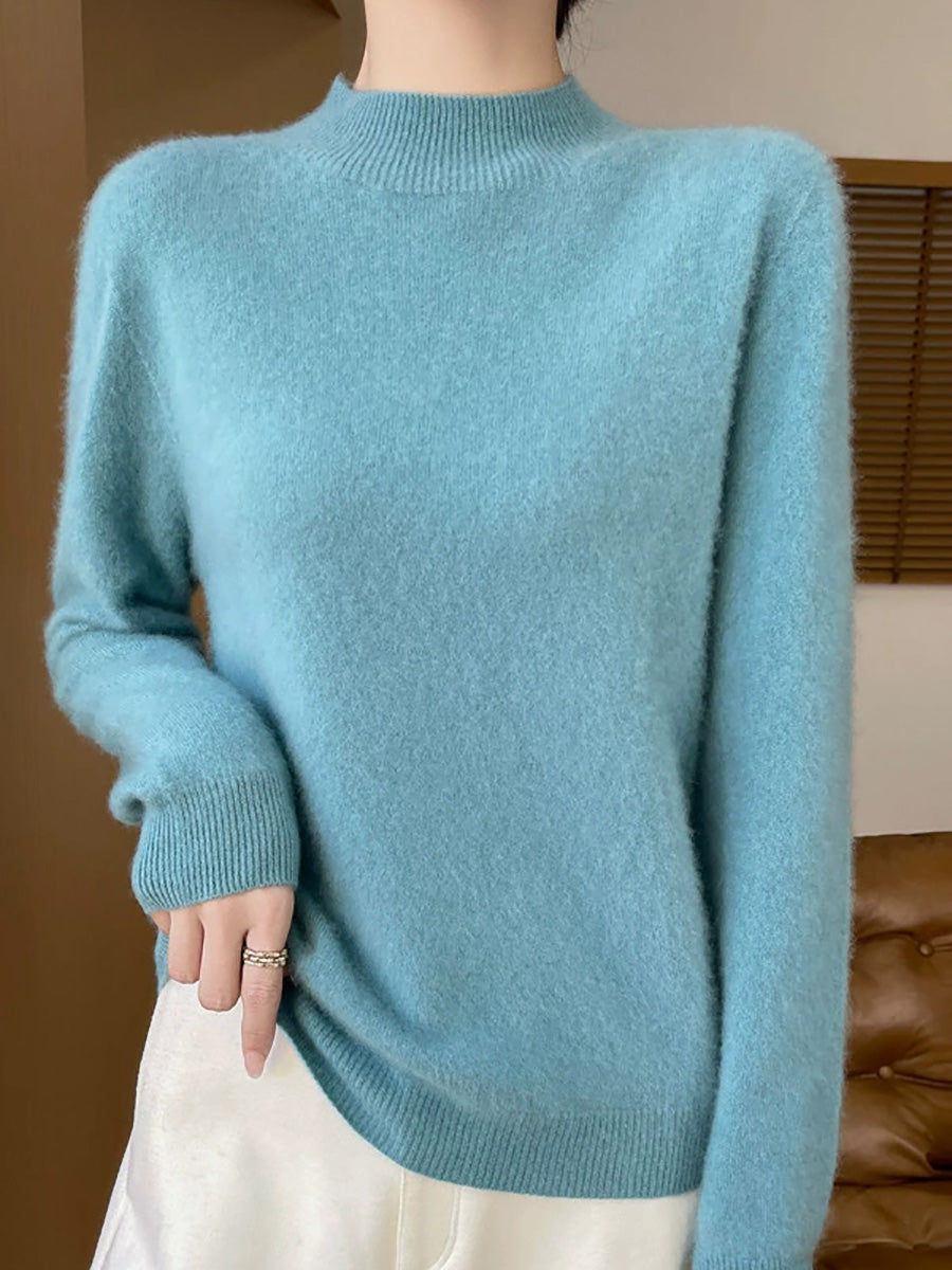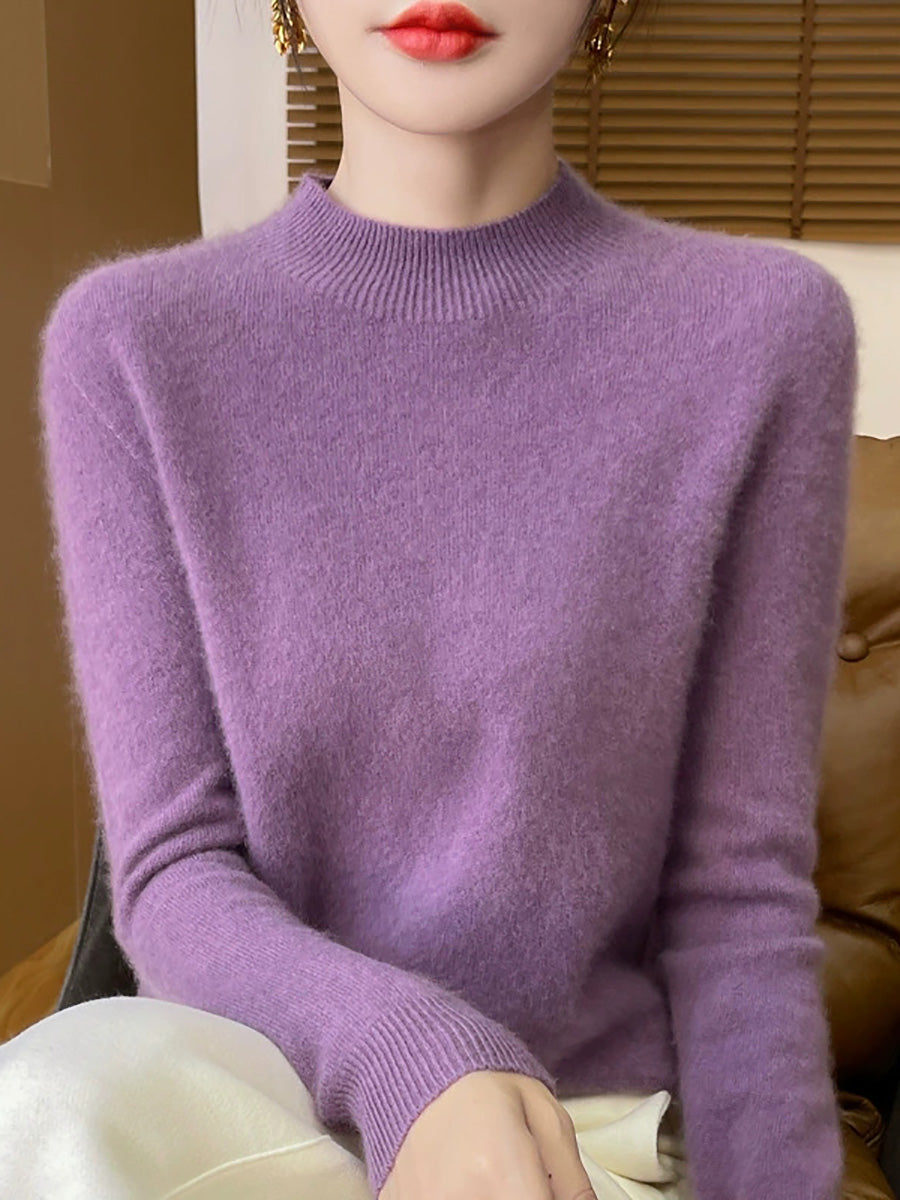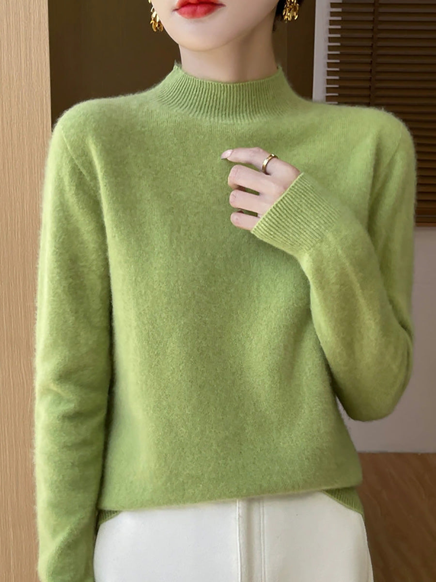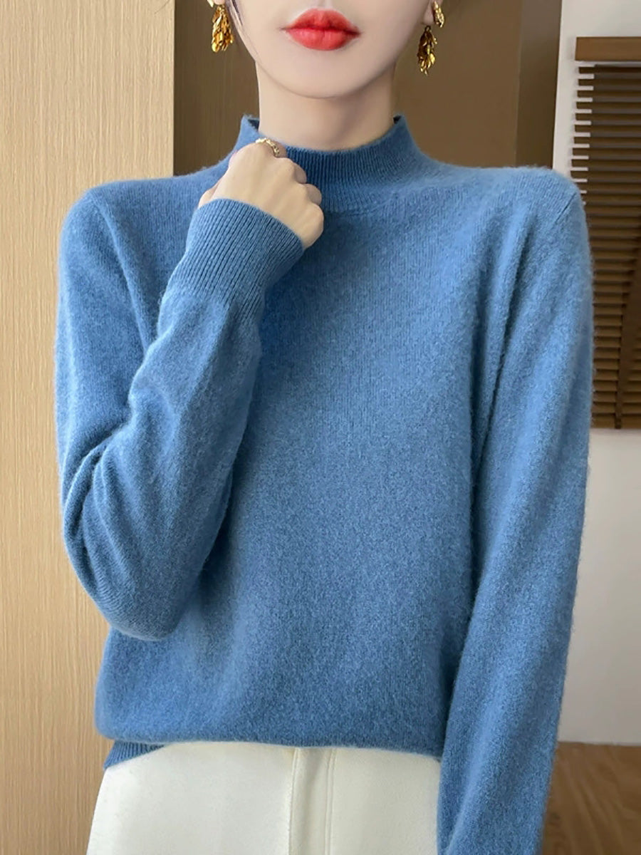Suéter de cuello alto medio de color puro y estilo artístico para mujer
