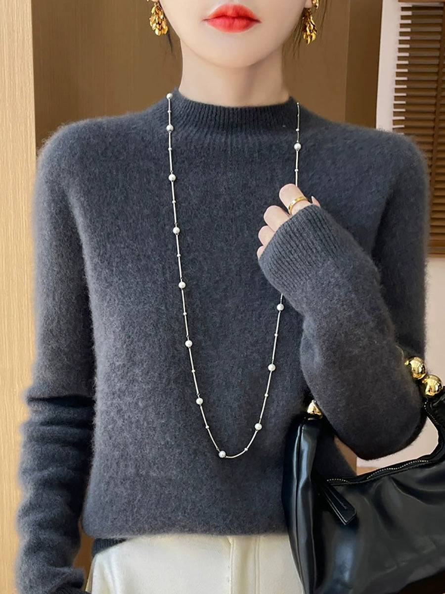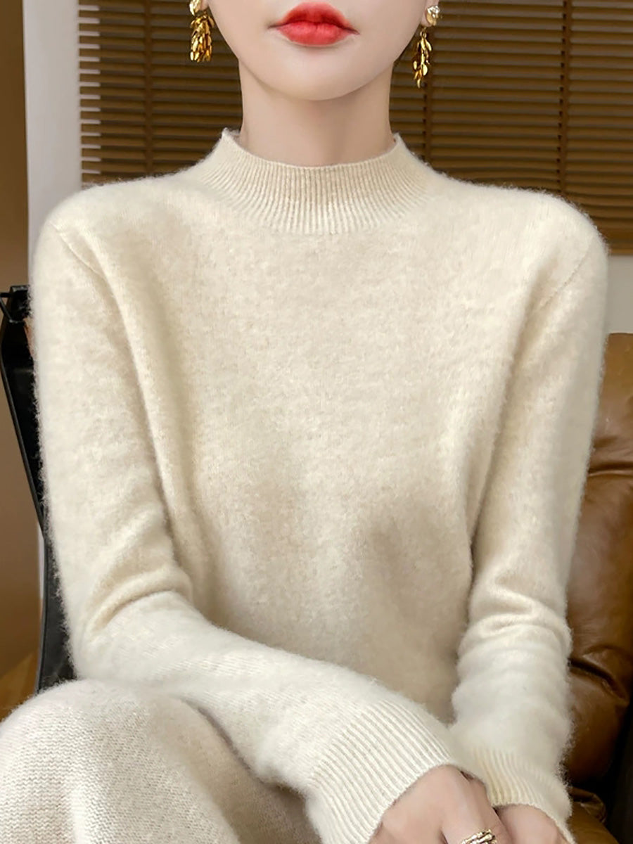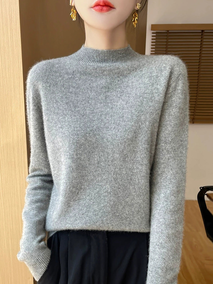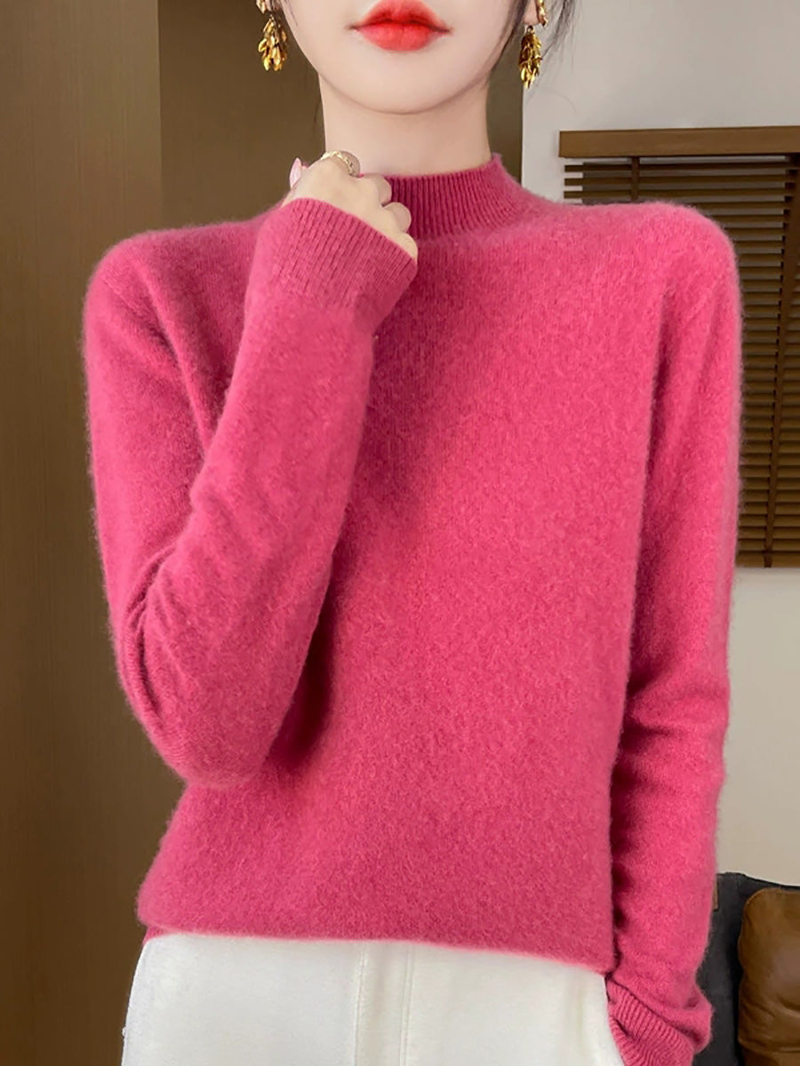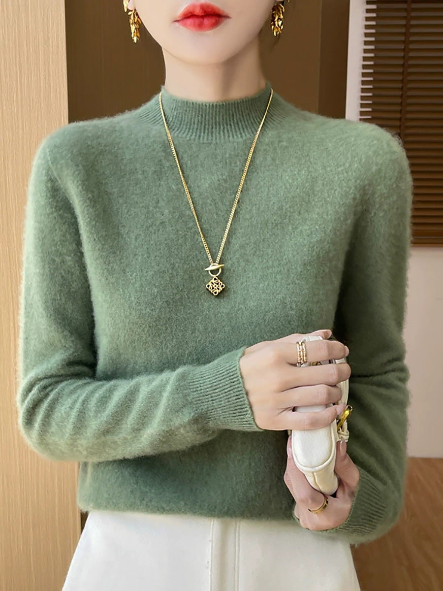 Suéter de cuello alto medio de color puro y estilo artístico para mujer