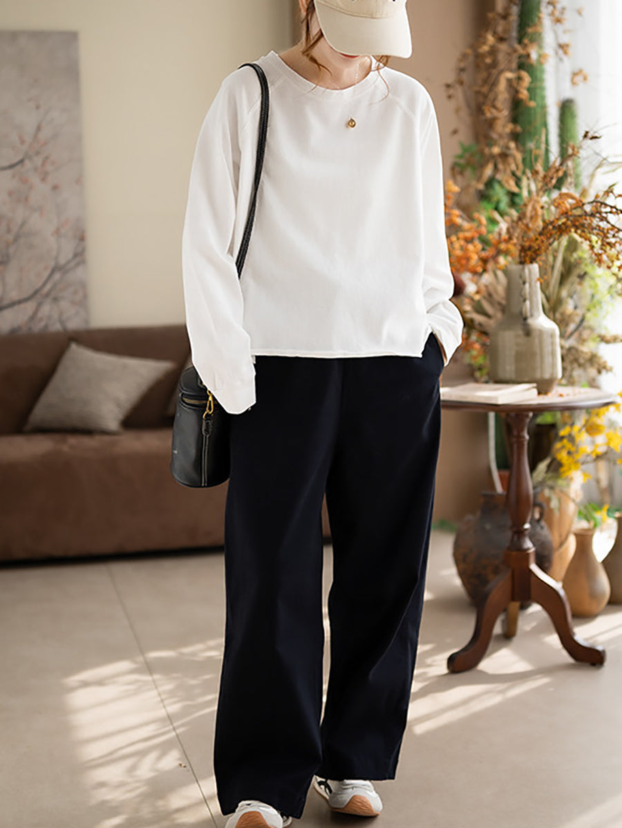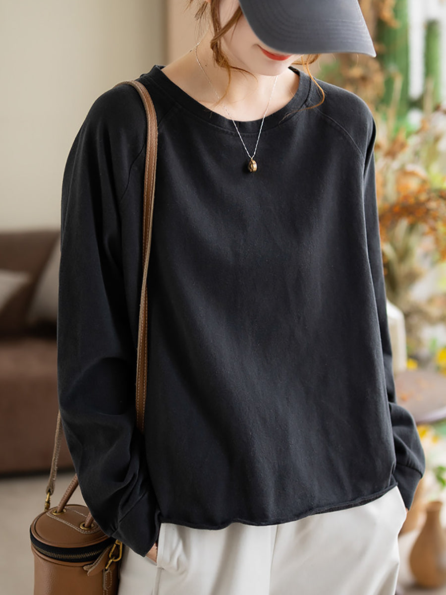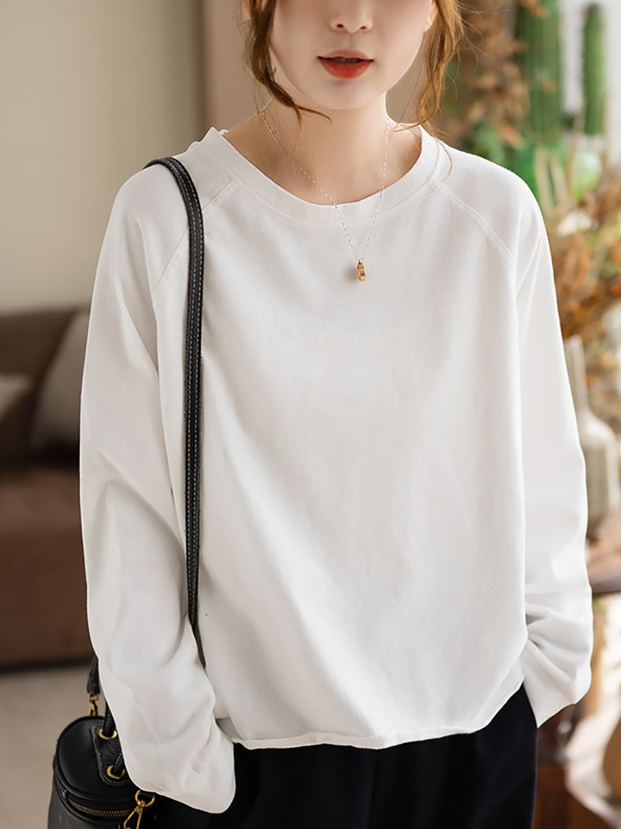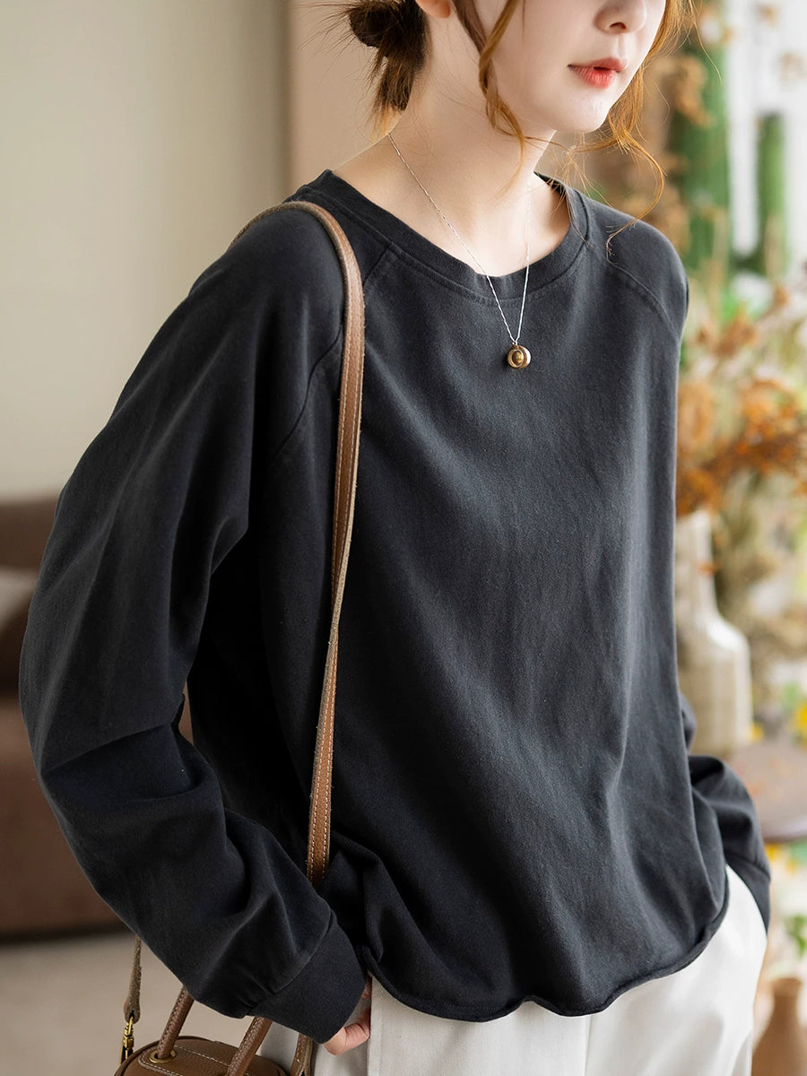 Blusa de algodón con cuello redondo y colores puros de primavera para mujer