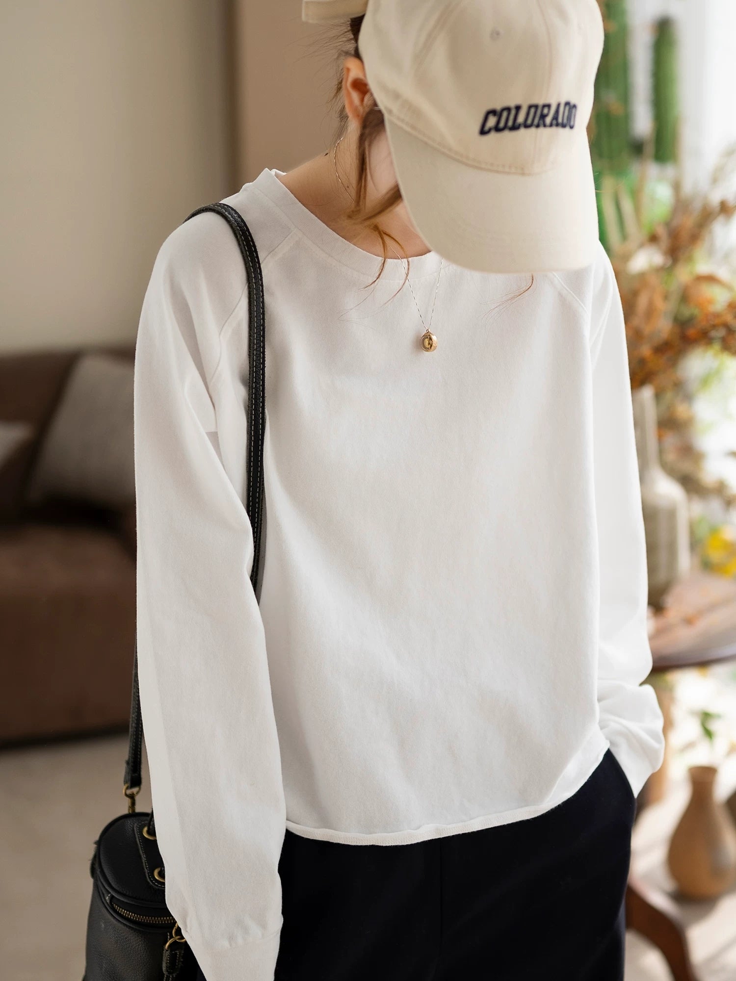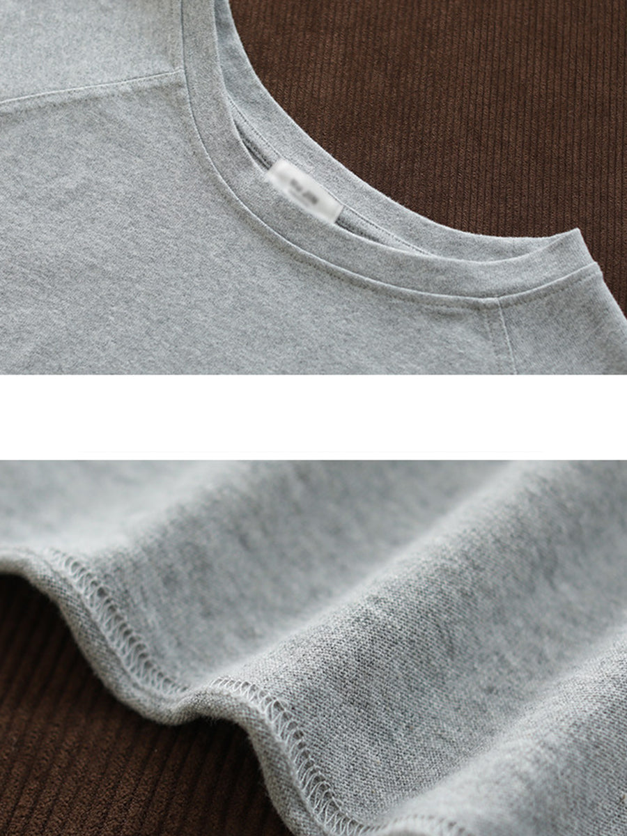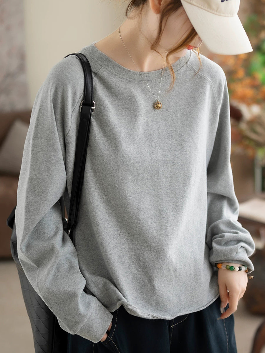 Blusa de algodón con cuello redondo y colores puros de primavera para mujer