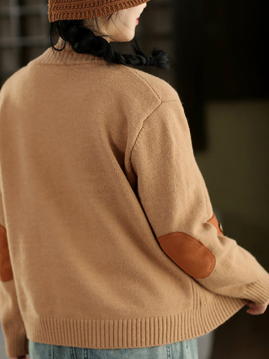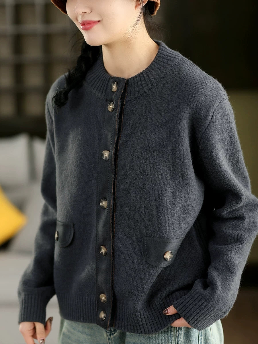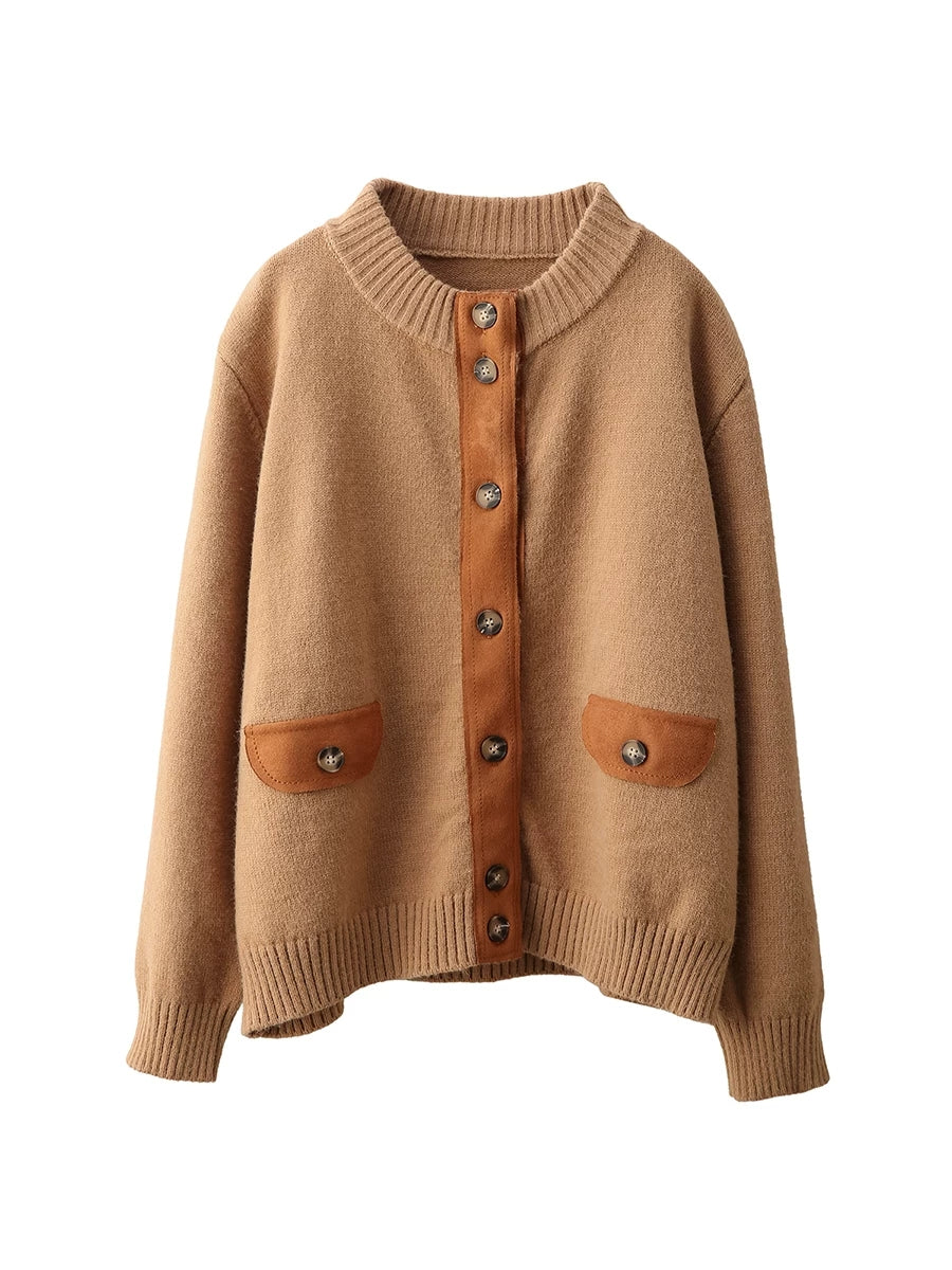 Suéter tipo cárdigan con cuello redondo y empalme de primavera para mujer