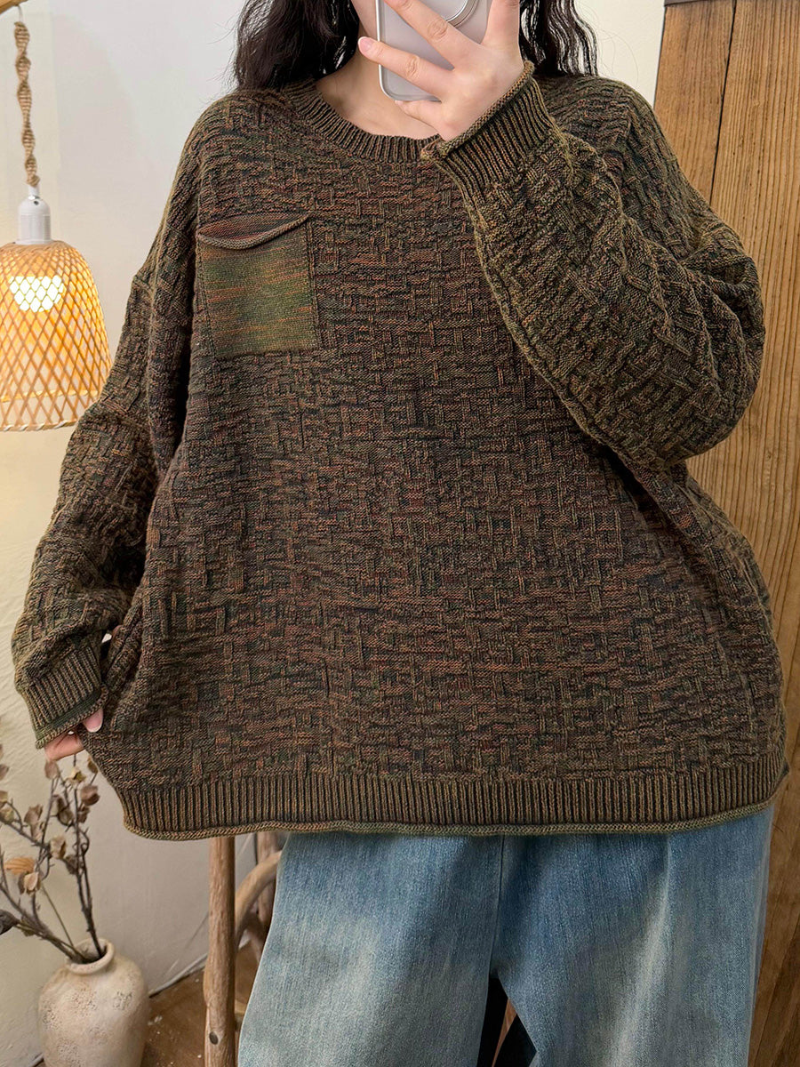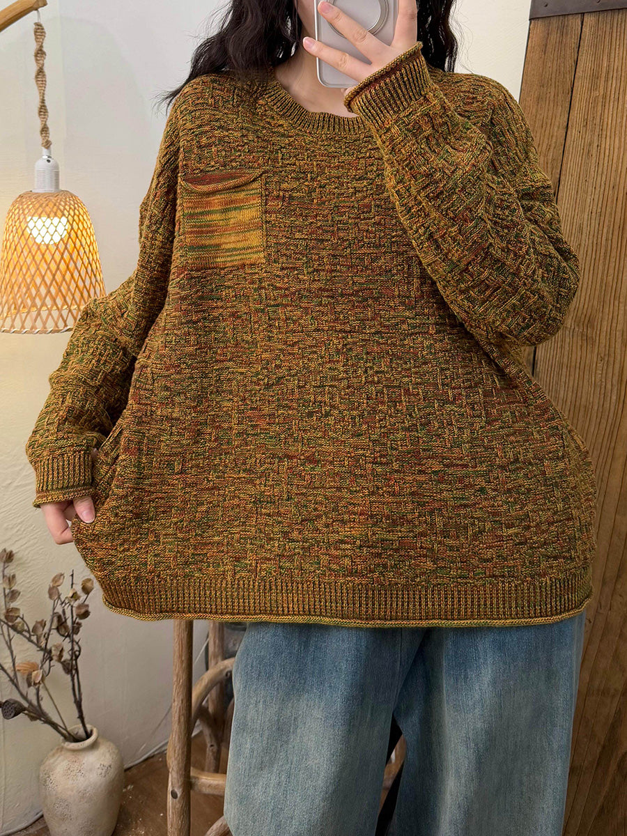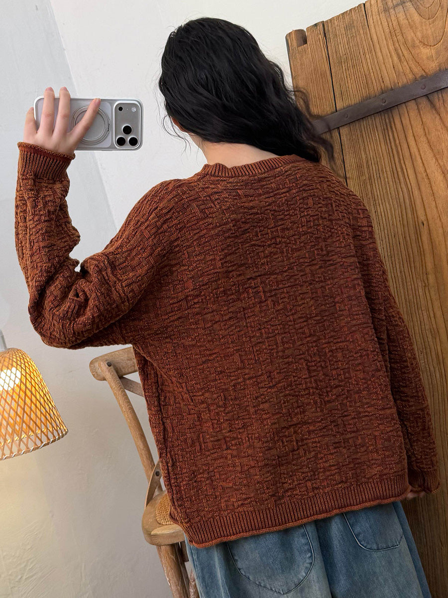 Suéter de punto artístico de otoño para mujer con cuello redondo