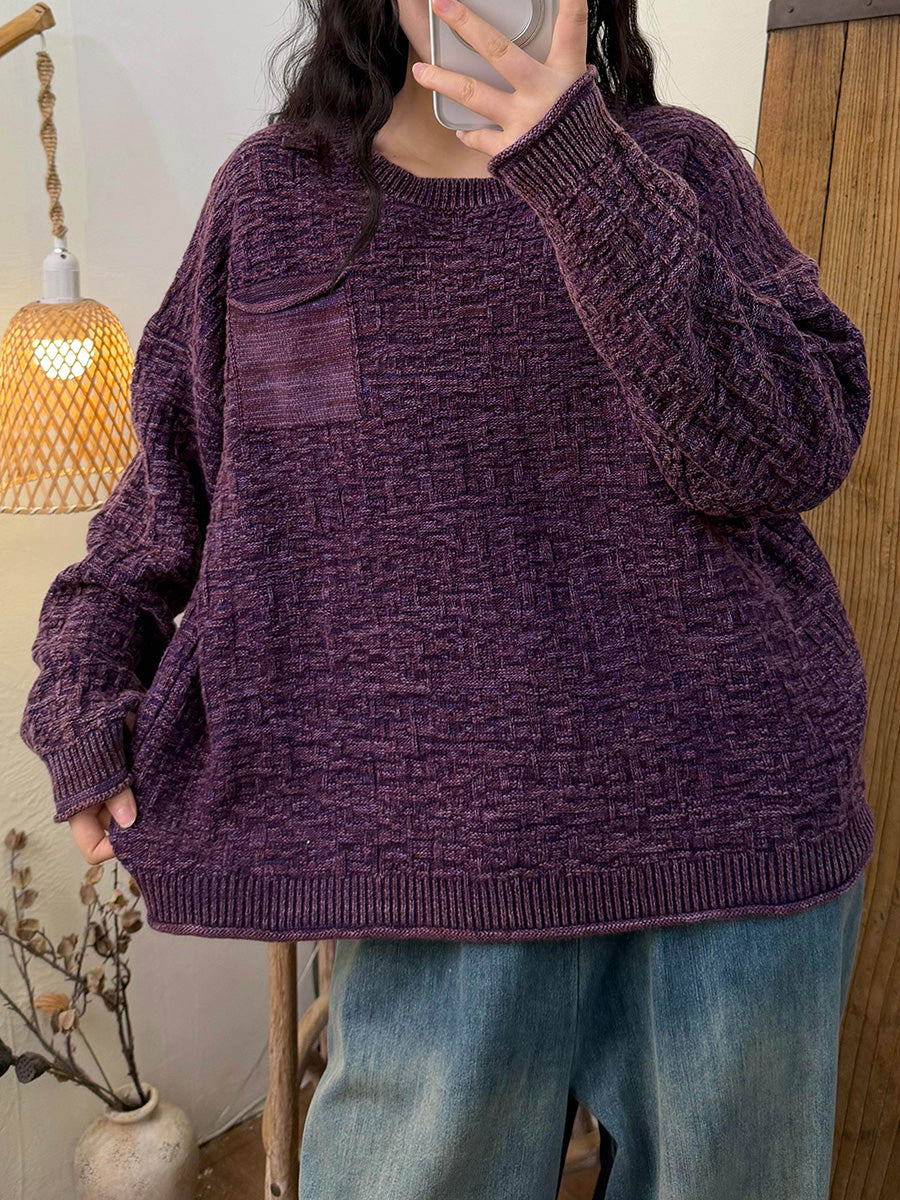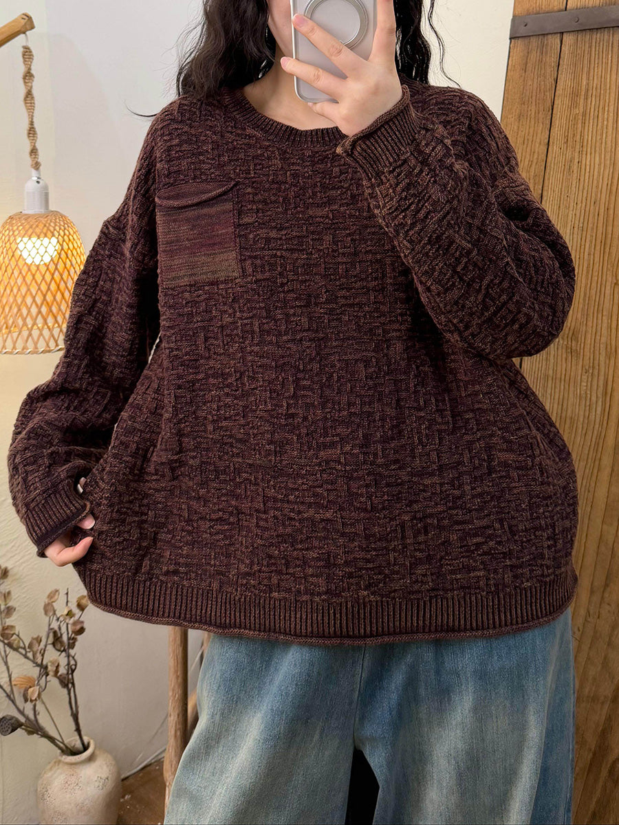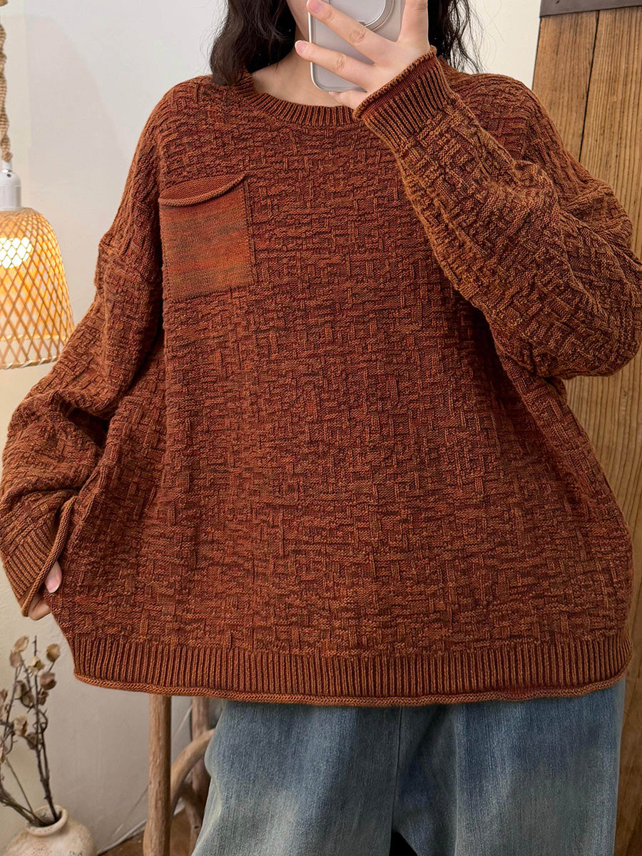 Suéter de punto artístico de otoño para mujer con cuello redondo