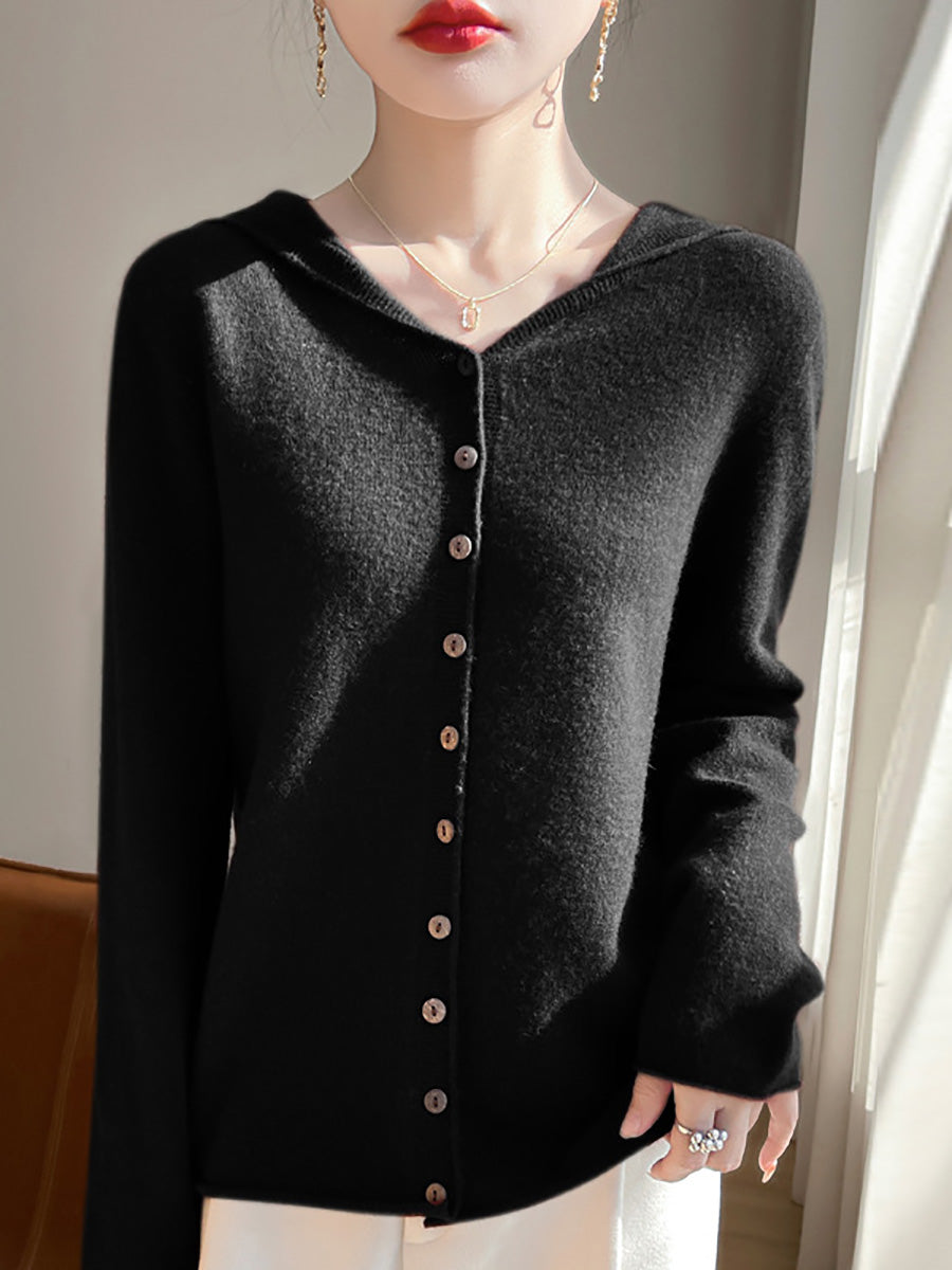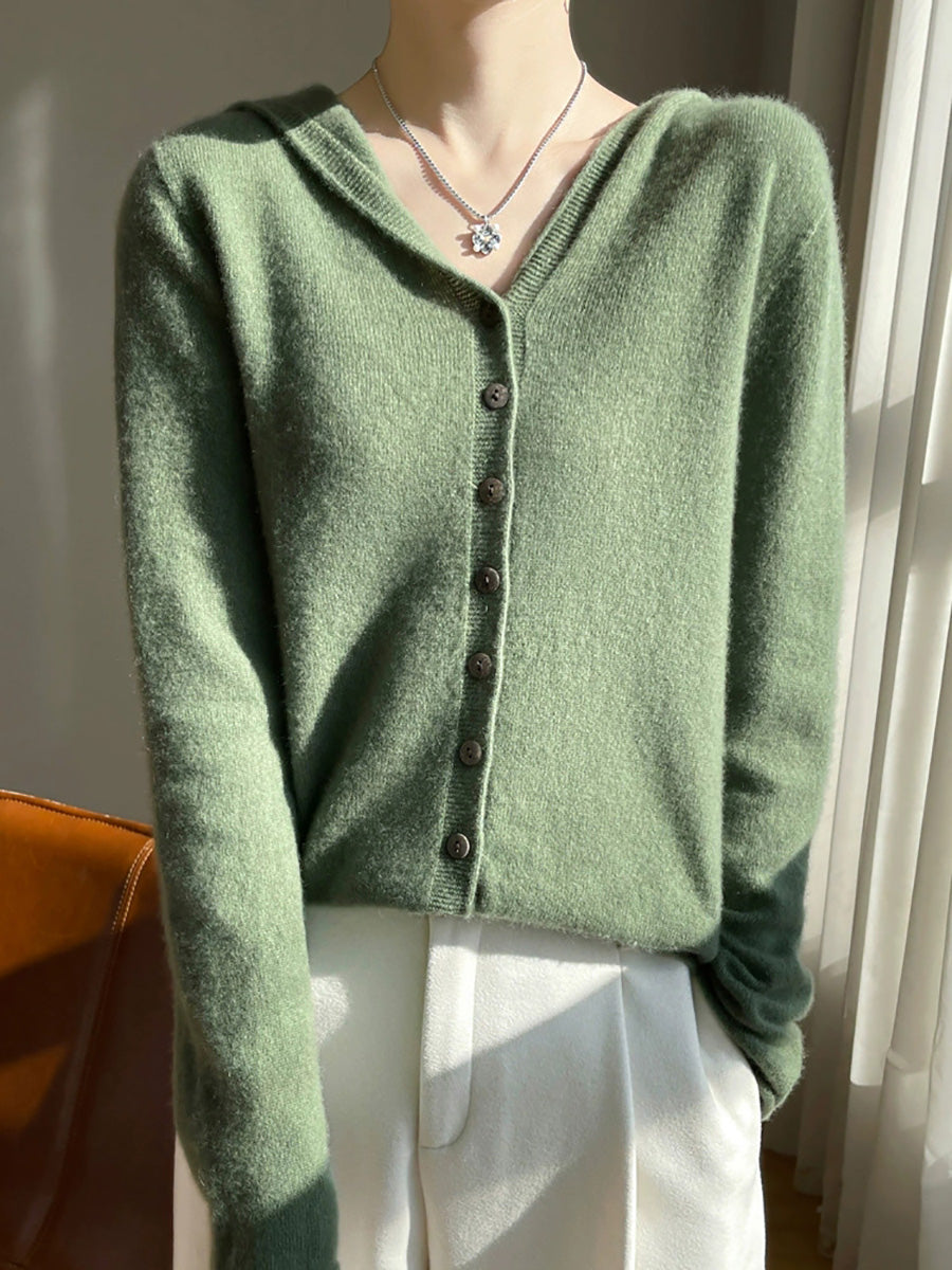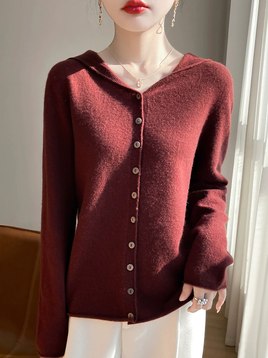 Suéter con capucha de color puro y artístico de otoño para mujer