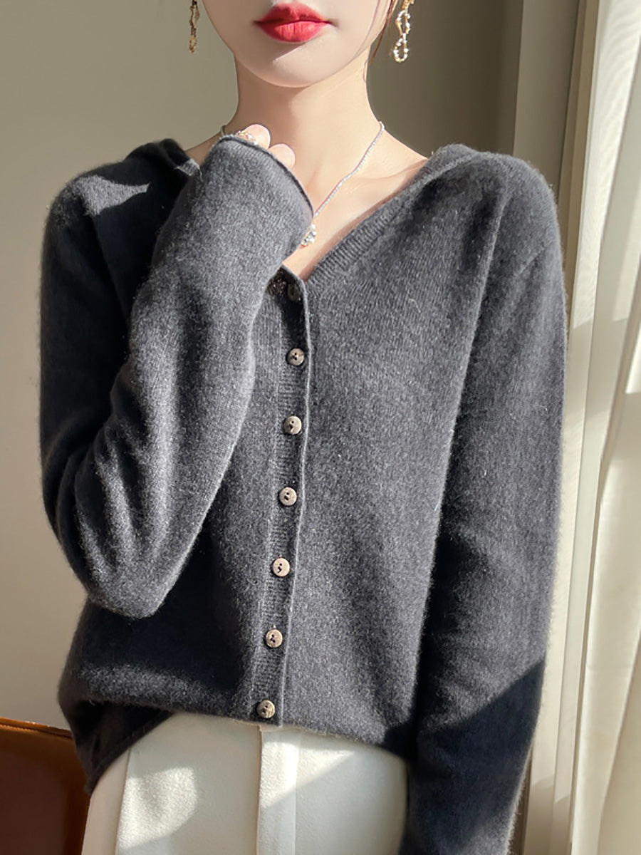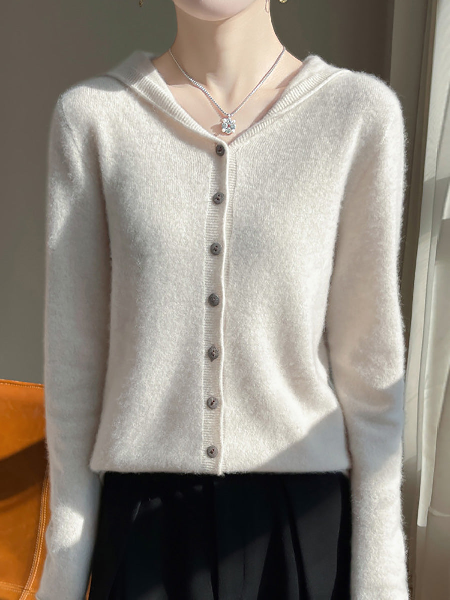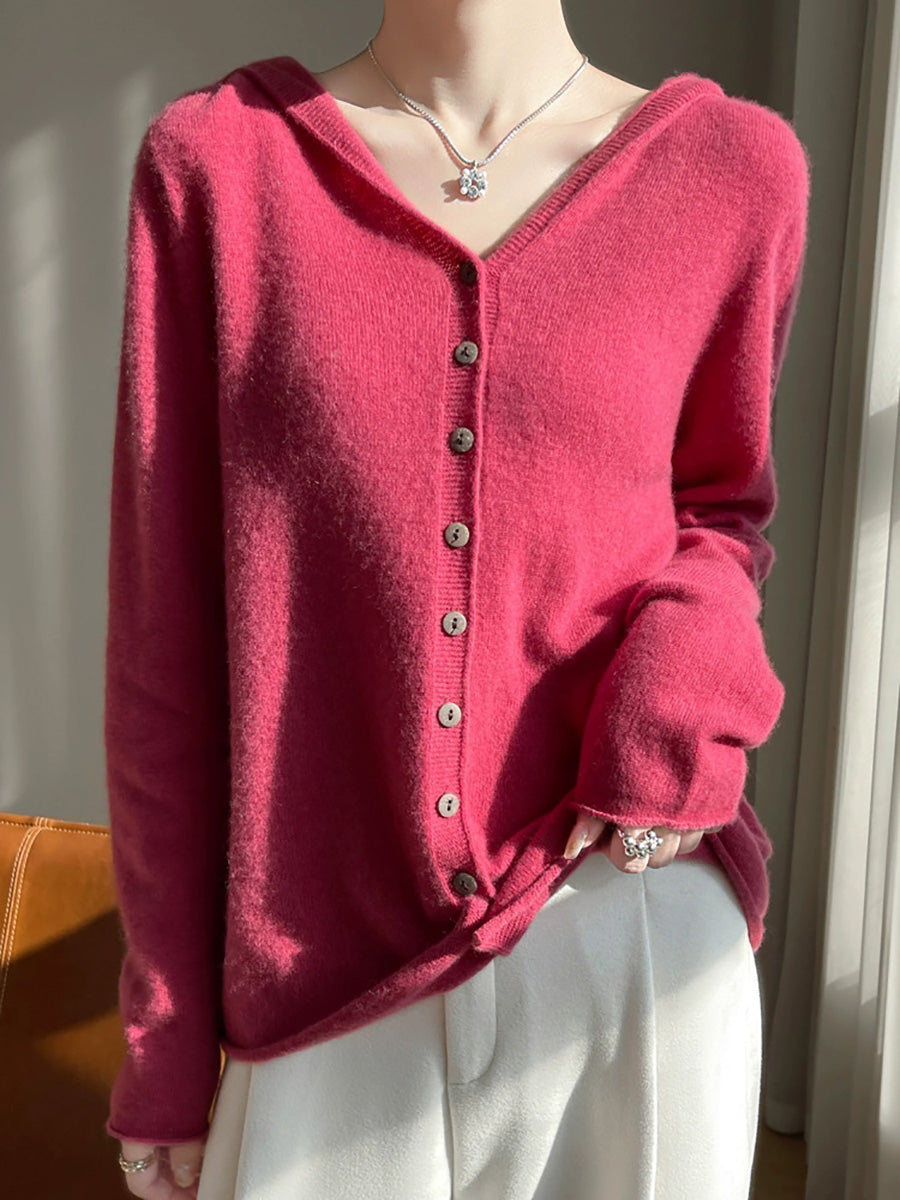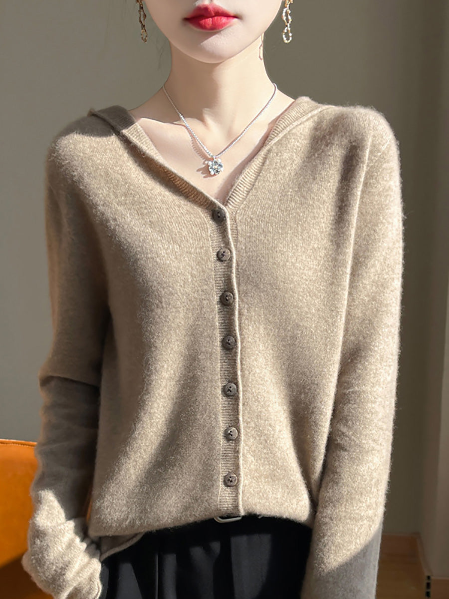 Suéter con capucha de color puro y artístico de otoño para mujer