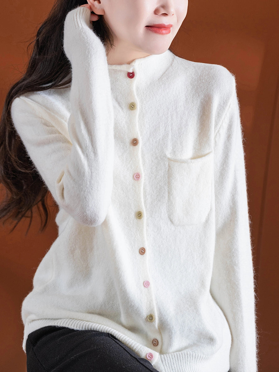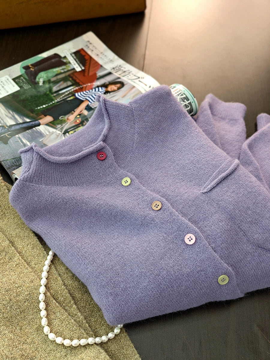 Suéter de cuello alto de color liso estilo artístico para mujer, ideal para otoño