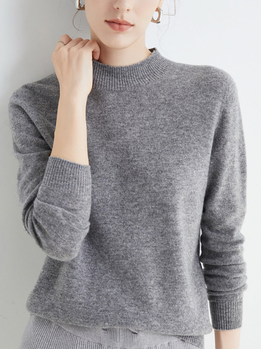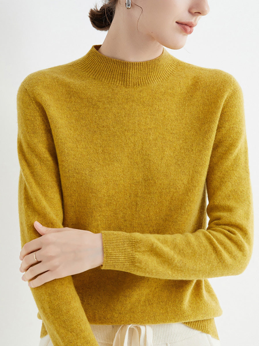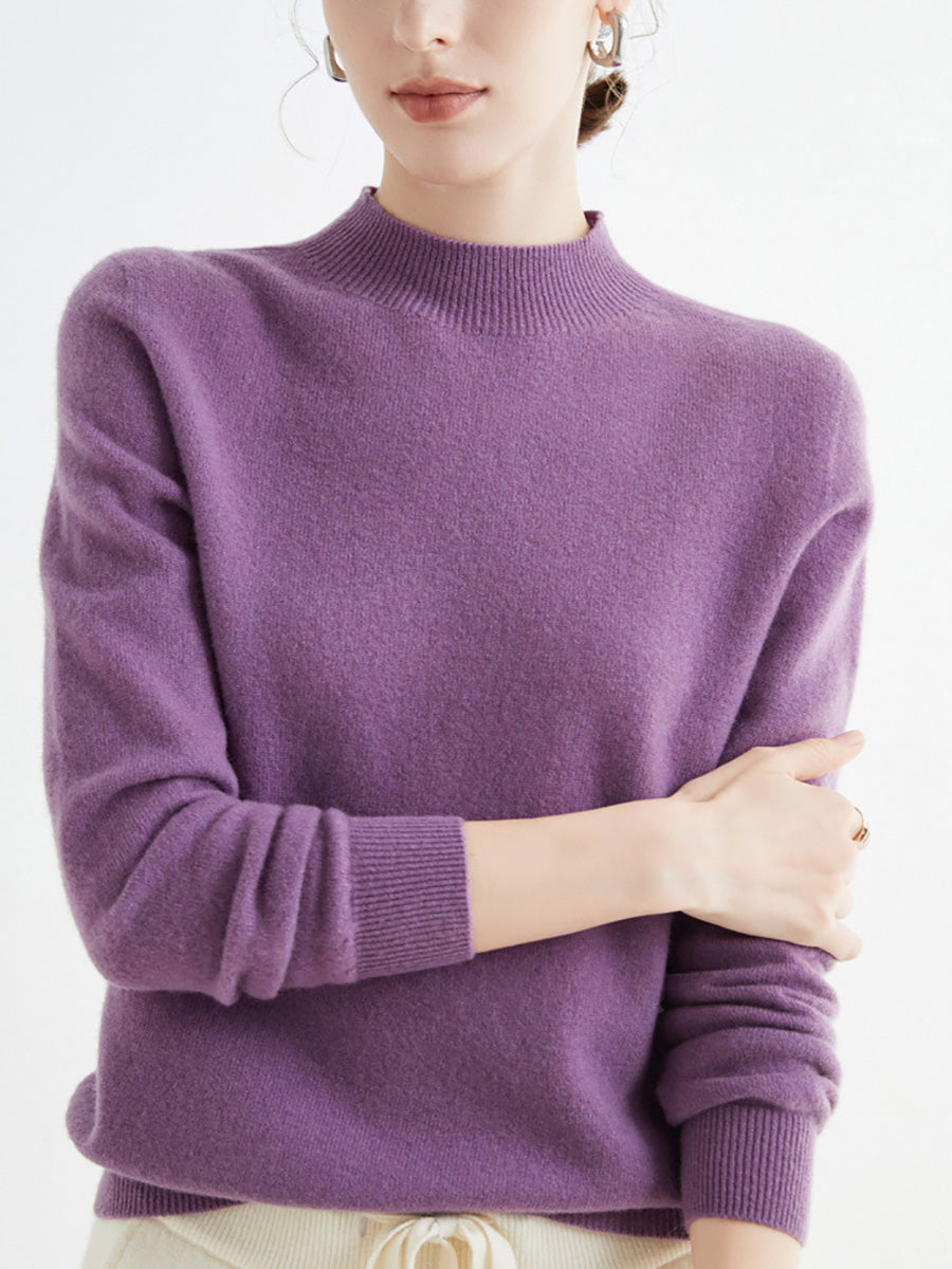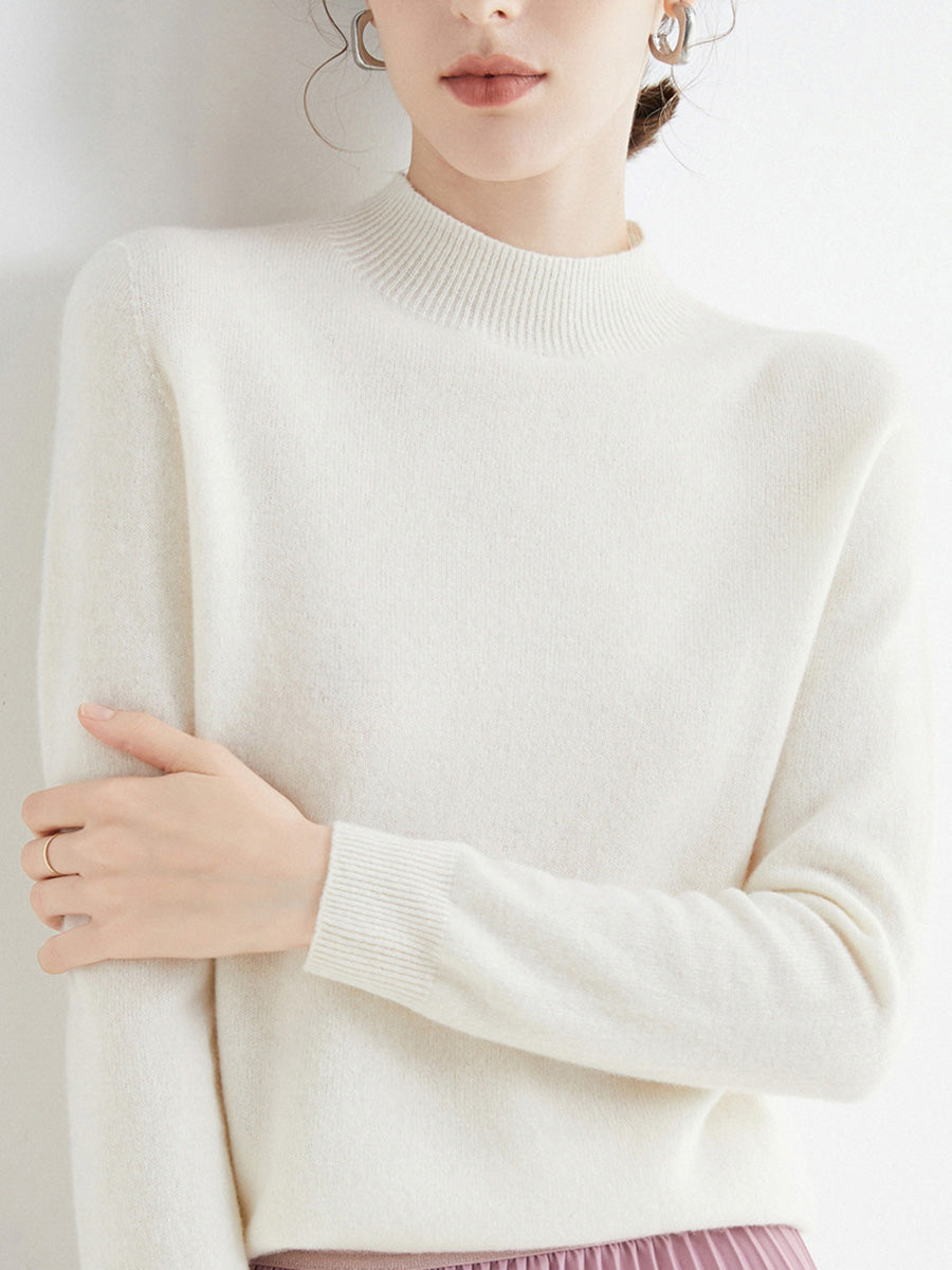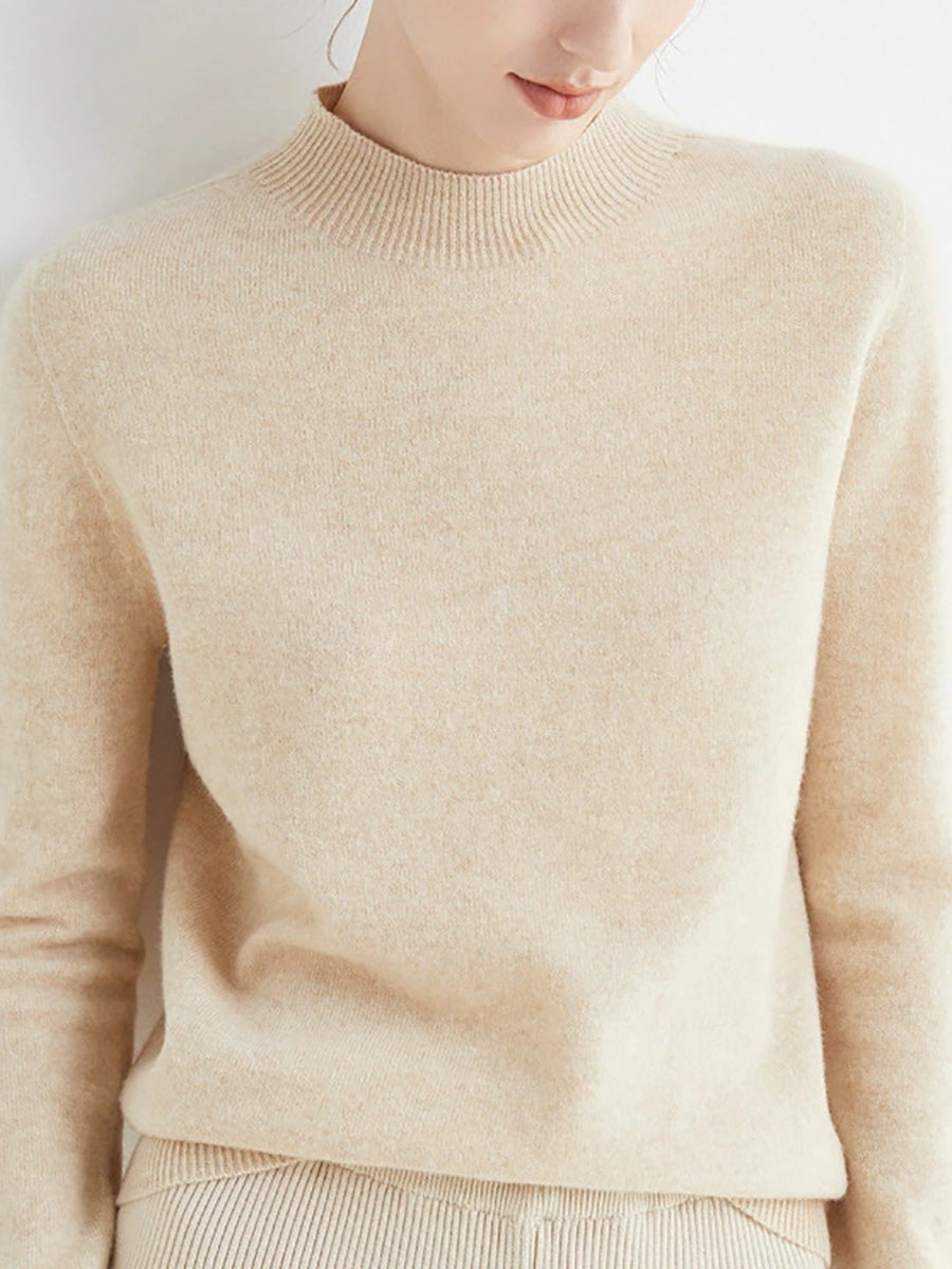 Suéter de cuello alto medio de lana de color puro y estilo artístico de otoño para mujer