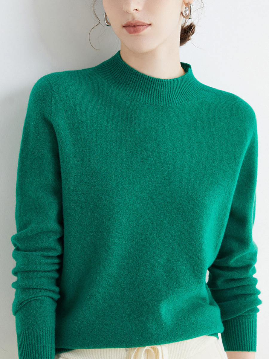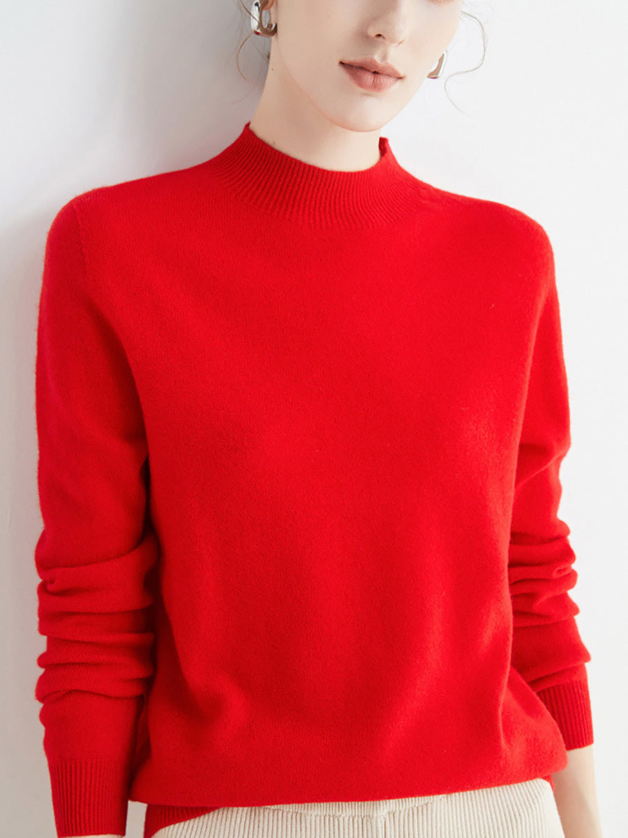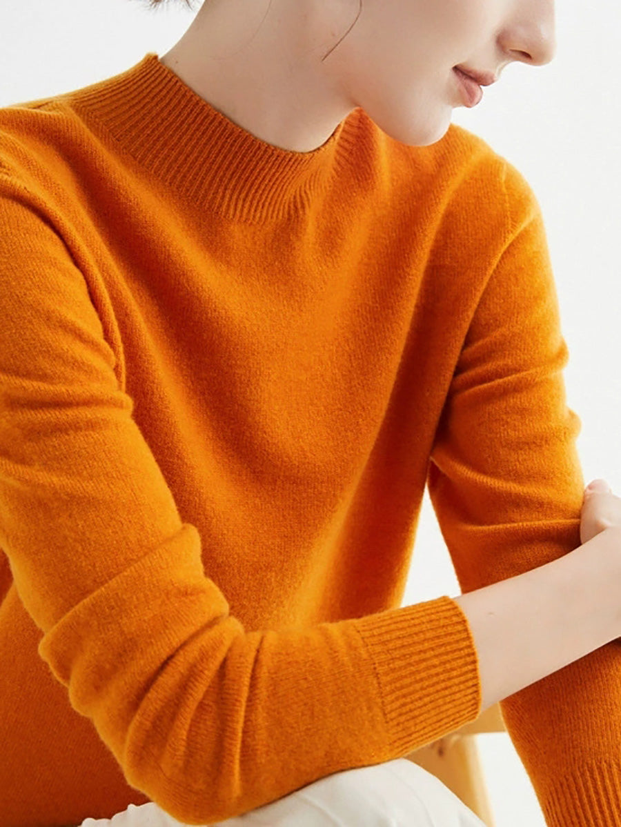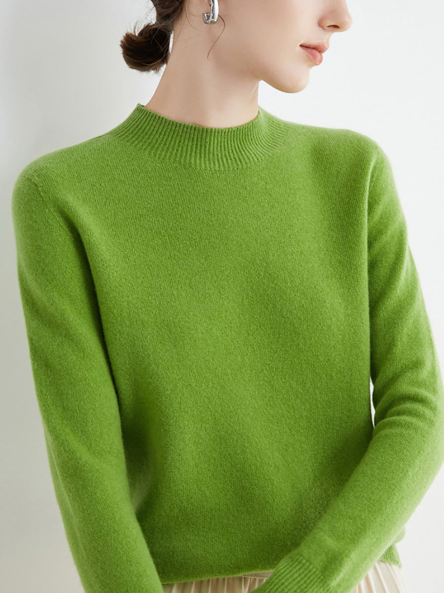 Suéter de cuello alto medio de lana de color puro y estilo artístico de otoño para mujer