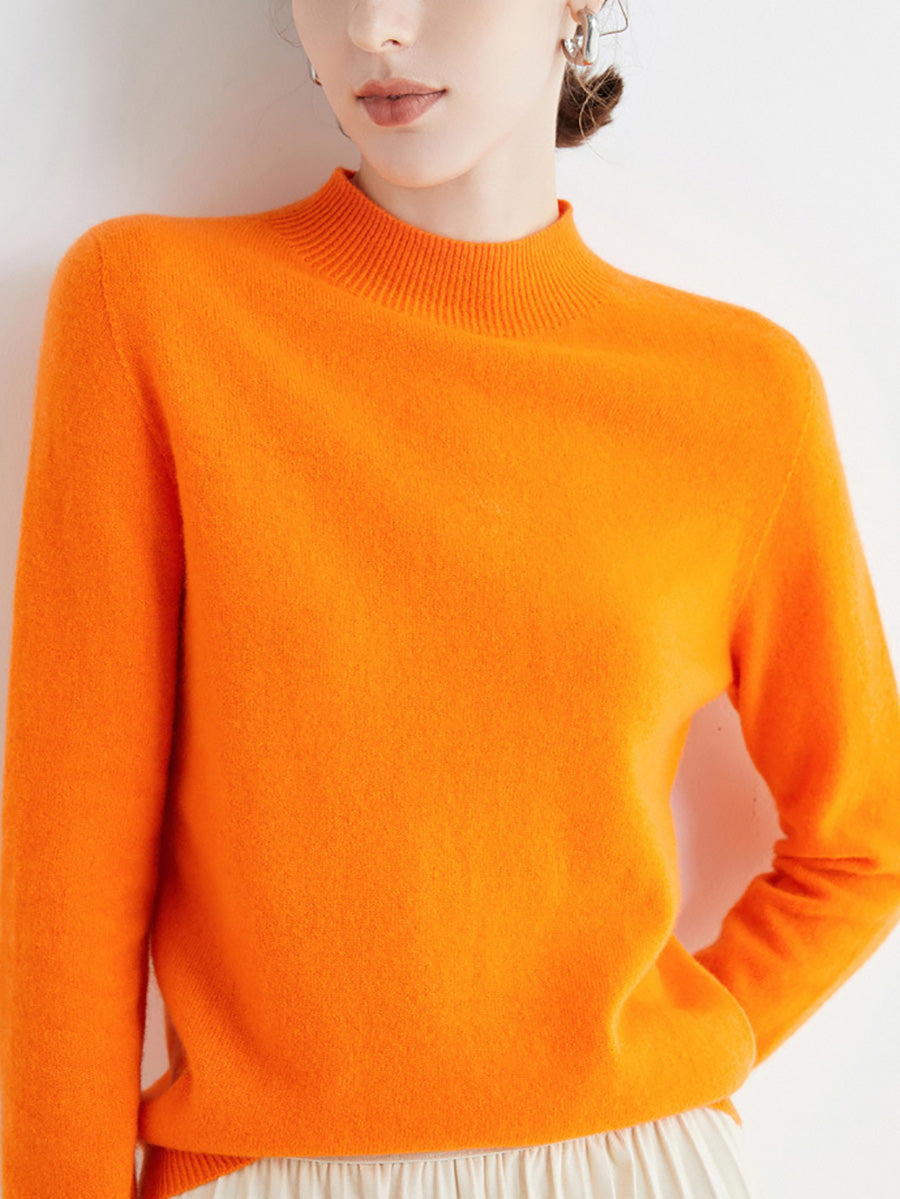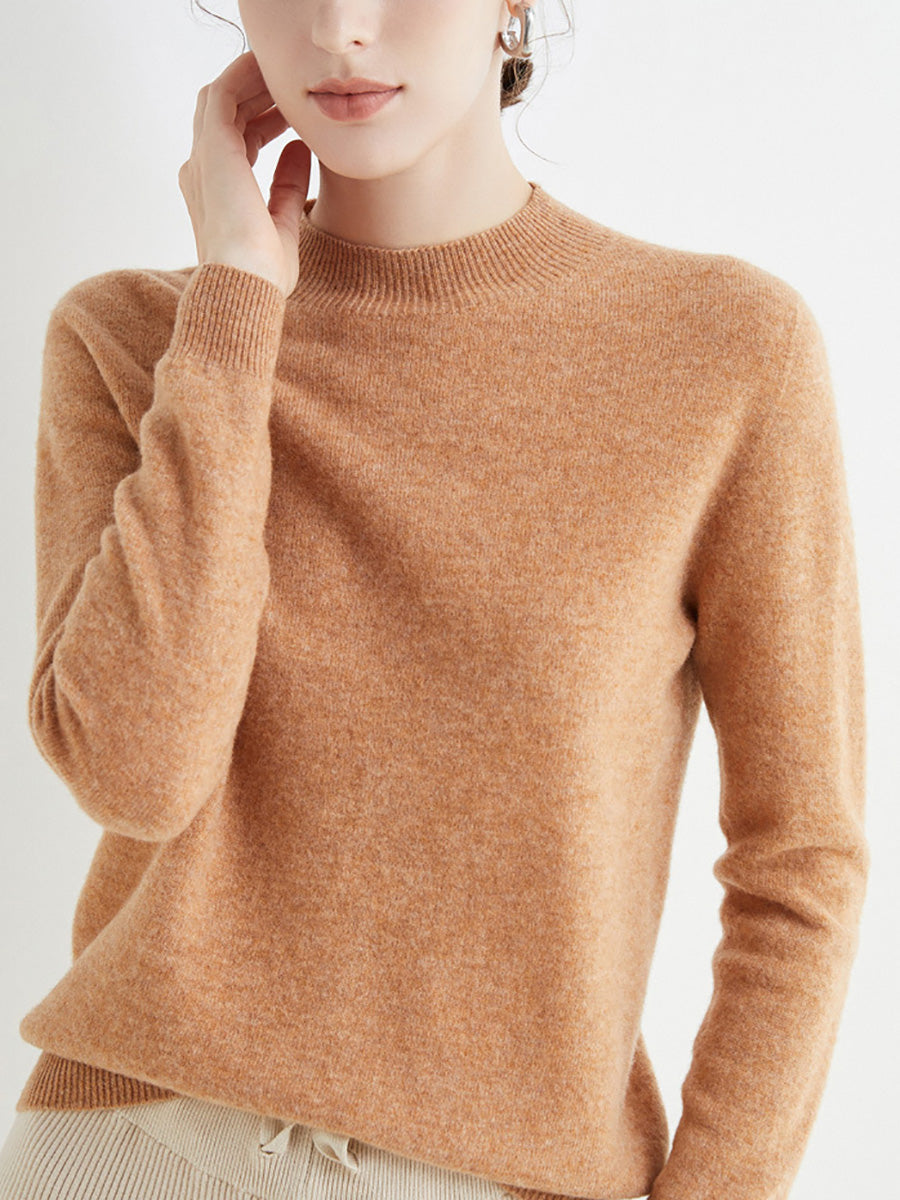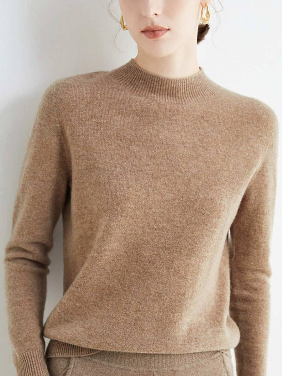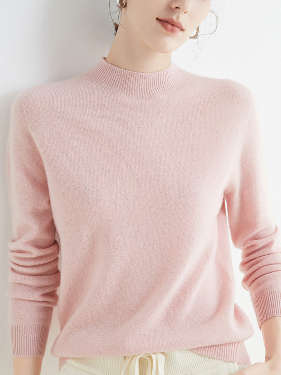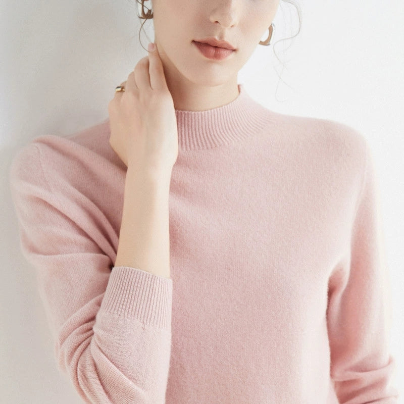 Suéter de cuello alto medio de lana de color puro y estilo artístico de otoño para mujer