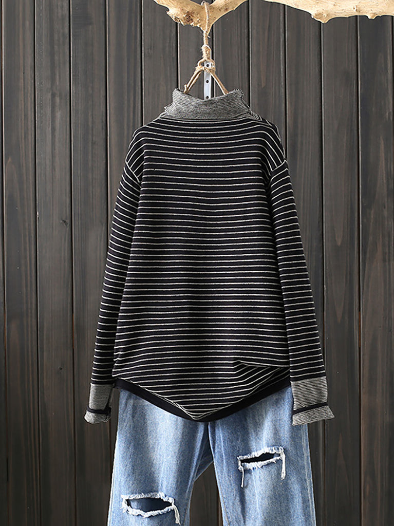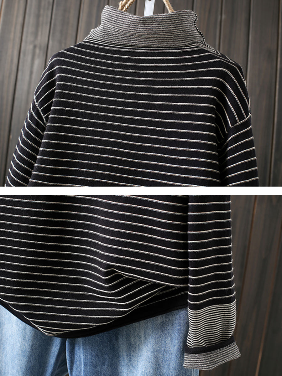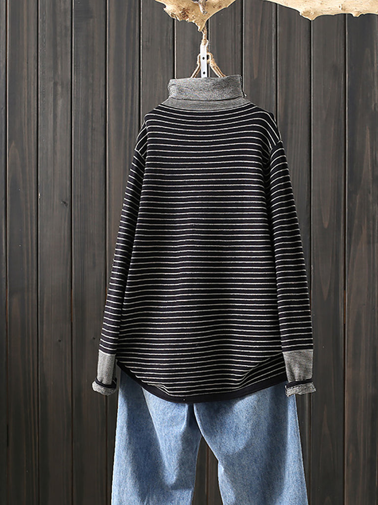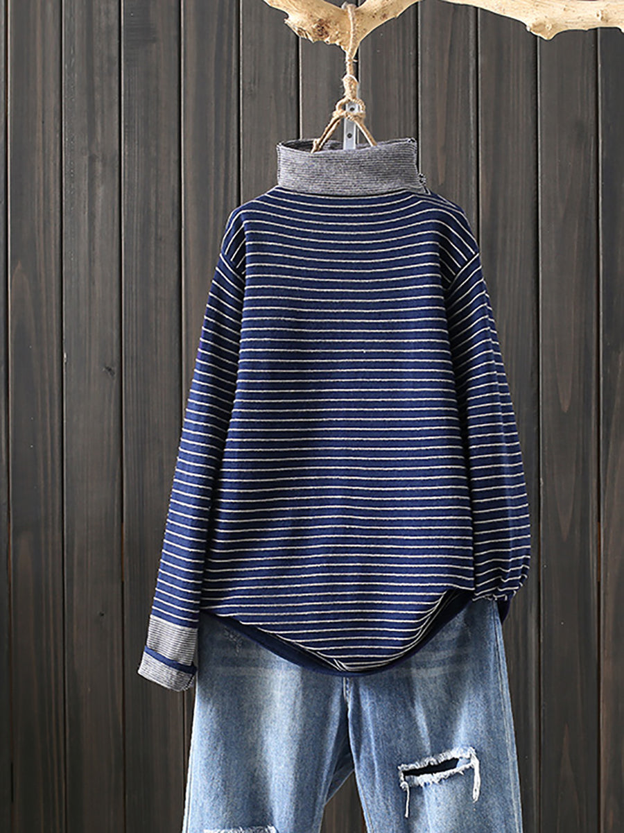 Blusa informal de otoño con cuello alto y rayas en bloques de color para mujer