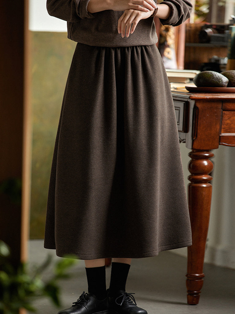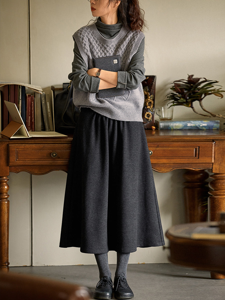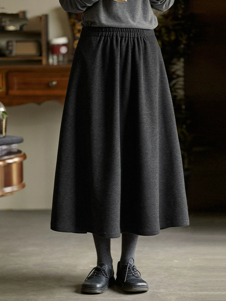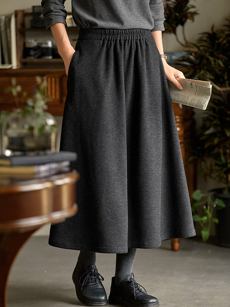 Falda de otoño informal de color liso con corte en A para mujer