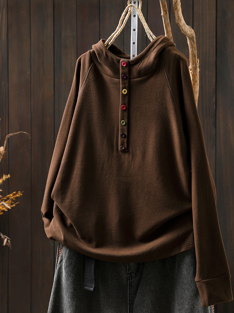 Sudadera con capucha de algodón de color puro informal de otoño para mujer